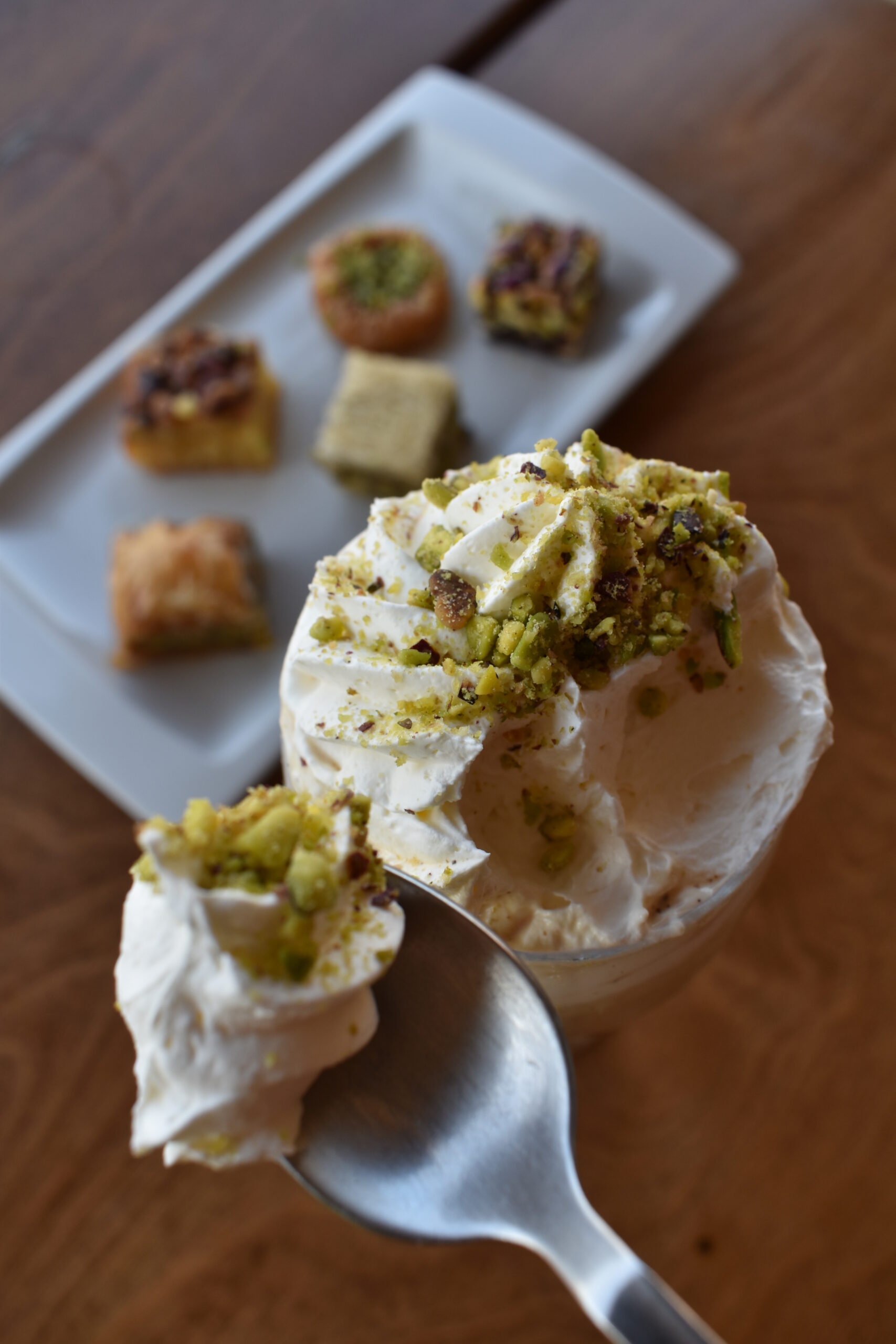 -Για ένα λαχταριστό συνδυασμό καφέ και γλυκού, δοκιμάστε τη νέα πρόταση Pistalicious, espresso μαζί με παγωτό φιστίκι, πλούσια αυθεντική σαντιγί και άφθονο τρίμμα φιστικιού, τονωτικό, δροσιστικό και σίγουρα άκρως απολαυστικό. Ειδάλλως, συνοδεύστε τον καφέ που προτιμάτε με τραγανές φλωρεντίνες και φιστικάτα, ή με μια ποικιλία από μπουκίτσες σιροπιαστών όπως μπακλαβαδάκια, σαραγλάκια και κανταϊφάκια. Μην παραλείψετε την ανατολίτικη «ταμαρία» που μοιάζει με μπάρα, με βάση από χουρμάδες και ολόκληρα φιστίκια. Η ζαχαροπλαστική τέχνη του Αιάκειον και τα θρεπτικά οφέλη του φιστικιού μας δίνουν σίγουρα το άλλοθι για να δοκιμάσουμε περισσότερα από ένα από τα ιδιαίτερα και τόσο νόστιμα αυτά γλυκά.