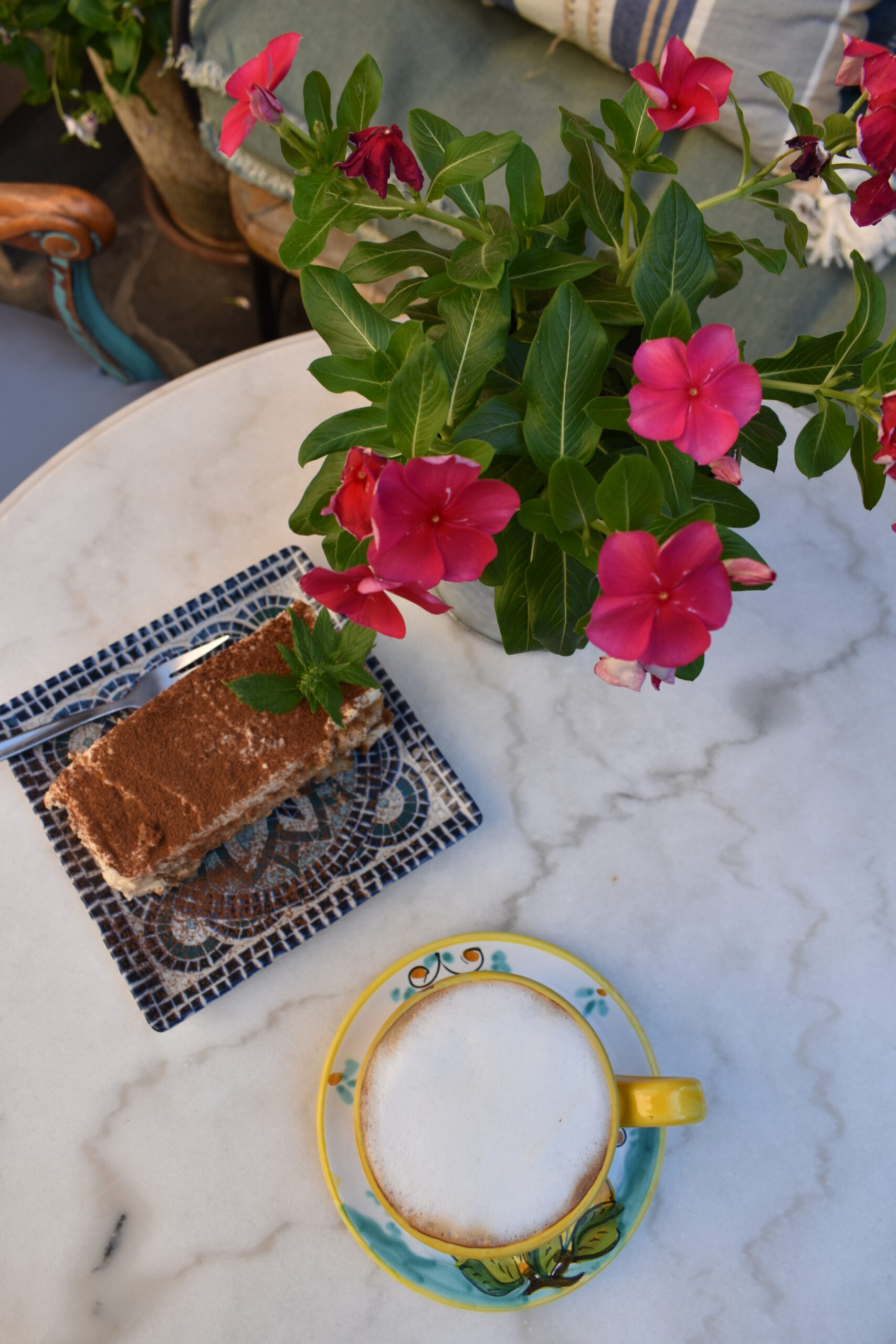 Και καθώς ο καφές στην Ιταλία είναι πάθος και τέχνη και για τους Ναπολιτάνους ο αυθεντικός καφές πρέπει να είναι κρεμώδης, γλυκόπιοτος και αρωματικός, ο Dario διαλέγει για το Tortuga το σπέσιαλ χαρμάνι Toraldo Arabica. Η ποιότητα των κόκκων του συγκεκριμένου καφέ και μαζί η χαρακτηριστική ναπολιτάνικη μηχανή μοχλού με τον ιδανικό συνδυασμό πίεσης και θερμοκρασίας, δίνουν έναν εξαιρετικό καφέ, που θα έρθει στο τραπέζι σας σε πανέμορφα ζωγραφιστά στο χέρι φλυτζάνια. Τα έχει φέρει ο ιδιοκτήτης από την Καμπανία, όπως και τη συνταγή του υπέροχου τιραμισού, που κάθε αφράτη μπουκιά του θα σας μεταφέρει νοερά στη γείτονα χώρα. Και με ένα στέκι τόσο αυθεντικό όσο το Tortuga, το ταξίδι στην Ιταλία μπορεί να περιμένει – στην αγαπημένη Αίγινα, όχι.