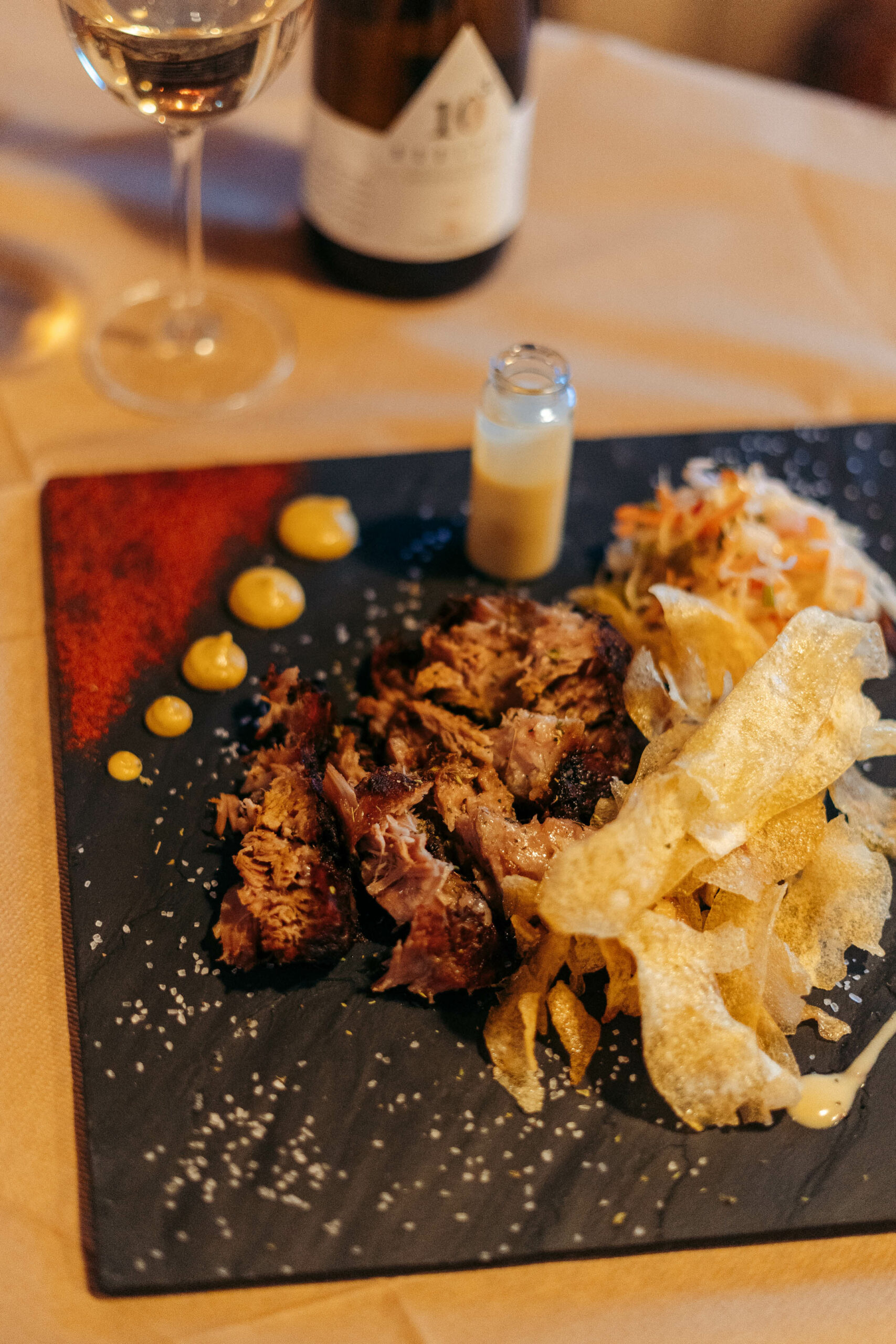 Και πράγματι, θα δεις να χρησιμοποιούν μανιτάρια, ζυμαρικά από την περιοχή, λαχανικά από τον κήπο τους, ελαιόλαδο, όσπρια και ό,τι ακόμα παράγει ανά εποχή αυτός ο τόπος. Κυρίαρχο ρόλο στον πανέμορφο, ζεστό και φιλόξενο χώρο τους κατέχει το κρασί, με την κάβα να δίνει μεν έμφαση στα ντόπια οινοποιεία, μα να διαθέτει και επιλεγμένα κρασιά από άλλα μέρη.