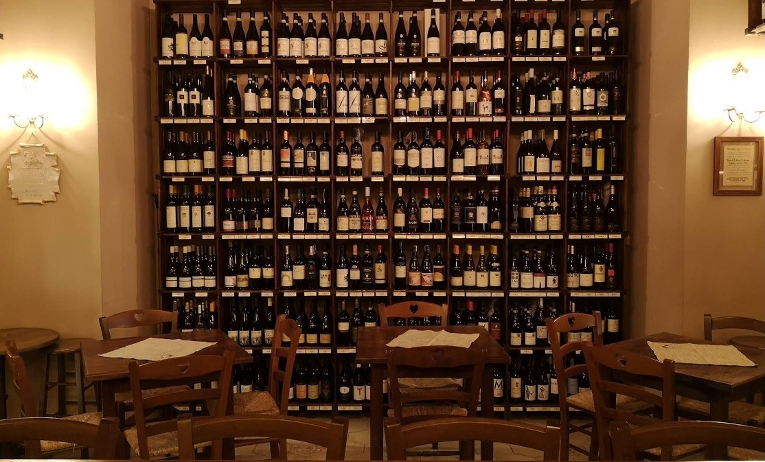Το κτίριο στο οποίο στεγάζεται είναι έργο του 1527 του Antonio Sangallo, που έμεινε ανολοκλήρωτο λόγω της πολιορκίας της Ρώμης την ίδια χρονιά, κι έτσι τα έπιπλα- αντίκες συμπληρώνουν ιδανικά το ιστορικό σκηνικό. Τις εντυπώσεις κερδίζουν ωστόσο τα μπουκάλια που καλύπτουν τους τοίχους και που σίγουρα δεν είναι μόνο για διακόσμηση. Και είναι ακριβώς αυτές οι πάνω από 850 ετικέτες κυρίως ιταλικών και δευτερευόντως γαλλικών κρασιών, μαζί με τη φιλική διάθεση και τις γνώσεις του καλά καταρτισμένου προσωπικού, που κάνουν τους φίλους αυτού του περιποιημένου wine bar, να επιστρέφουν ξανά και ξανά.