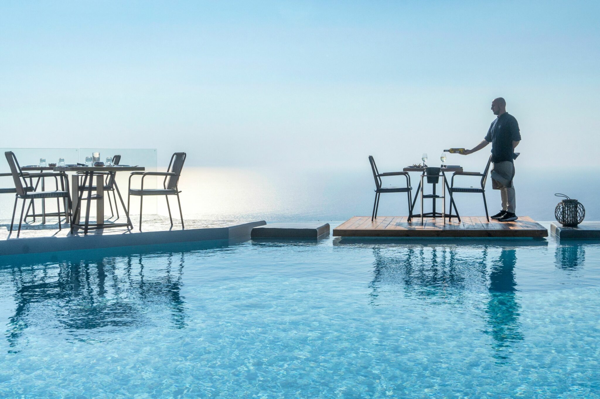 Οι εκλεκτοί και αυστηρά επιλεγμένοι οίνοι, από όλη την Ελλάδα αλλά και το εξωτερικό- περισσότερες από 50 οι ετικέτες- και διεθνώς αναγνωρισμένοι αλλά και ανερχόμενοι, αποτελούν μια τέλεια συνοδεία για το φαγητό σας. Ξεχωριστή νότα, αν είστε τυχεροί και προκύψει κάποιο event, συνήθως κοντά στο ηλιοβασιλεμα, να απολαύσετε το δείπνο σας συνοδεία βιολιών ή σαξόφωνου και να ζήσετε μια μαγική στιγμή με μελωδίες, με απίστευτες γεύσεις και με την απεραντοσύνη του ορίζοντα στο πιάτο σας.