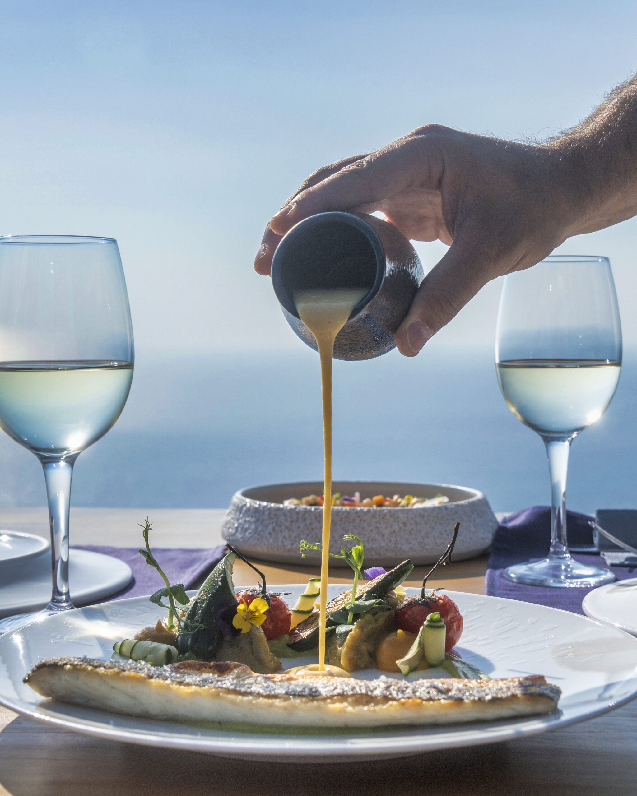 Στην, σαν να αιωρείται στο κενό, βεράντα του, οι γεύσεις του chef Νίκου Προκόπη απλά θα σας συναρπάσουν. Έχοντας θητεύσει με επιτυχία στο εξωτερικό επέστρεψε στα πάτρια εδάφη και με καμβά τη μεσογειακή κουζίνα αλλά σε μια πιο λεπτεπίλεπτη, προσεγμένη και ενίοτε «πειραγμένη» προοπτική προσφέρει άρτια και ποιοτικά πιάτα. Με το διεθνές να παντρεύεται με το τοπικό και με μικρό σχετικά μενού για καλύτερη λειτουργικότητα. Το καλαμάρι σχάρας, τόσο μαλακό που μπορείς να το κόψεις με το κουτάλι συνδυασμένο με μια απίθανη τυροκαυτερή, το χταπόδι όνειρο με μαύρο χούμους τόσο γευστικό και ευφάνταστο και το υπέροχο -έχει τη μορφή κερασιού- γλυκό, που αποκαλύπτει μια κρέμα από κεράσια αμαρένα και μους πικραμύγδαλου είναι μερικές μόνο στάσεις στον κόσμο της απόλαυσης.