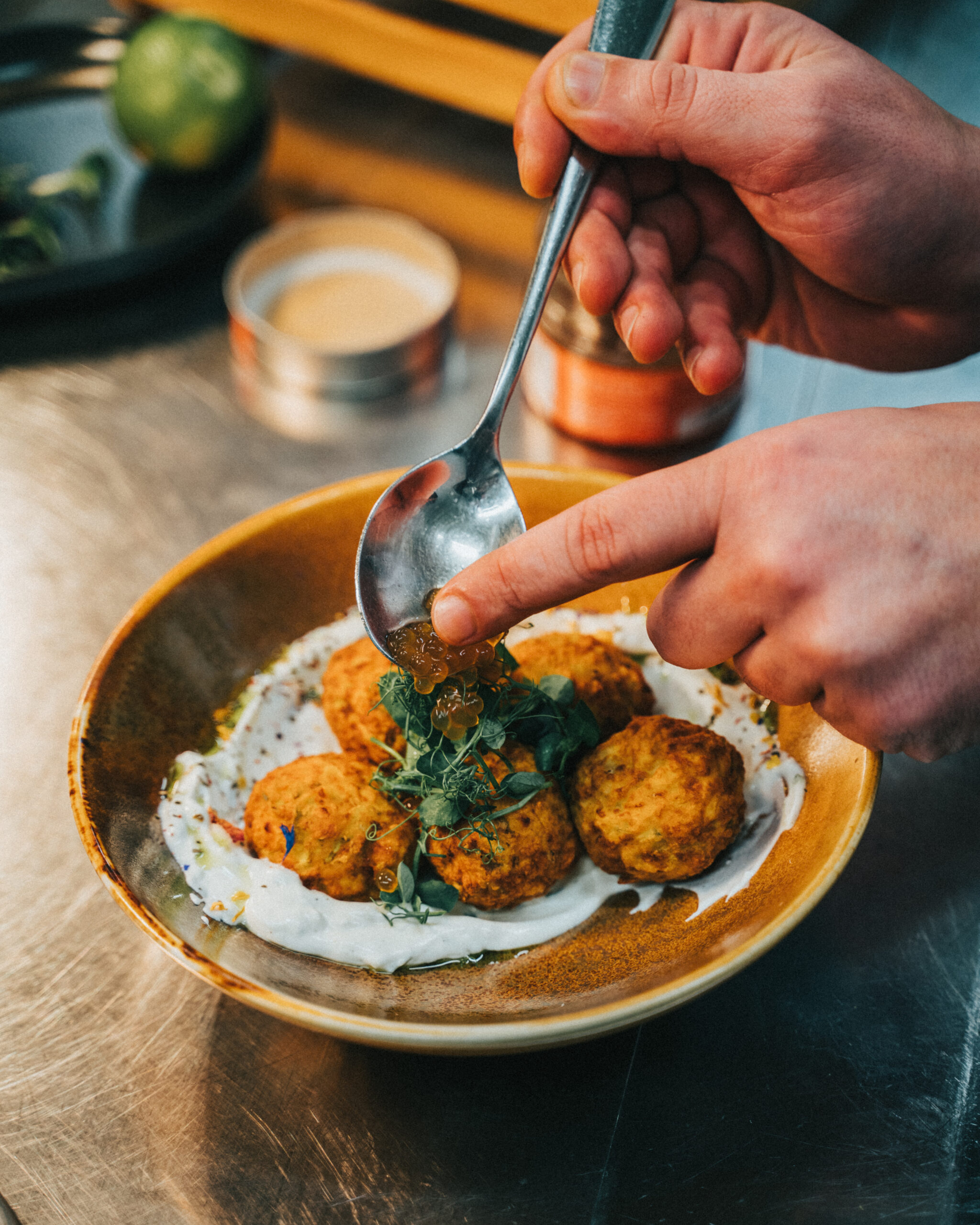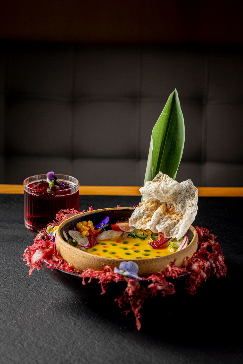 Το menu, το οποίο επιμελείται ως executive chef ο Άρης Ρούσος και υλοποιεί με την άριστη συνεργασία του Γρηγόρη Μπονιάκου, έχει ως βάση του την μεσογειακή κουζίνα, στην οποία εντοπίζονται ασιατικές επιρροές, ενώ τα φαγητά πλαισιώνονται από κρασιά επιλεγμένων Ελλήνων παραγωγών, αλλά και ευφάνταστα handmade cocktails και ποτά. Φρέσκα ψάρια, κρέατα ιδιαίτερης κοπής, pasta και risotti, χειροποίητα ψωμιά και dips, φτιαγμένα με γνώση αλλά και πολλή αγάπη και μεράκι. Τα πιάτα ημέρας είναι μέσα στο πρόγραμμα, με ό,τι πιο εκλεκτό βρίσκεται καθημερινά, ενώ η κάρτα ανανεώνεται συχνά. Τα γλυκά τα υπογράφει ο πολυπράγμων pastry chef Μπάμπης Ζιντίλης.