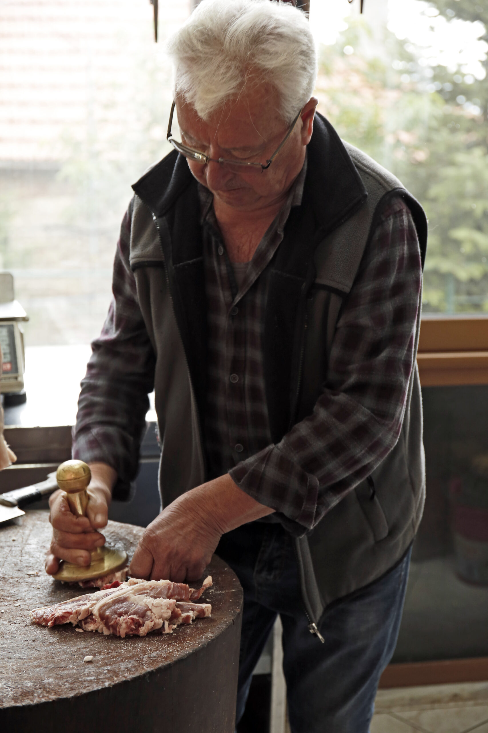 Η γιαγιά με τον παππού είχαν το χασάπικο του χωριού, εδώ, στα Άνω Τρίκαλα, ήδη το 1938. Μια εποχή με πολλή φτώχεια, χωρίς ηλεκτρικό ρεύμα ή ψυγεία. Με αγάπη και επιμονή, ανέπτυξαν την επιχείρηση μετατρέποντάς την σε ένα μικρό ταβερνάκι προσανατολισμένο στο κρέας και τα ψητά.