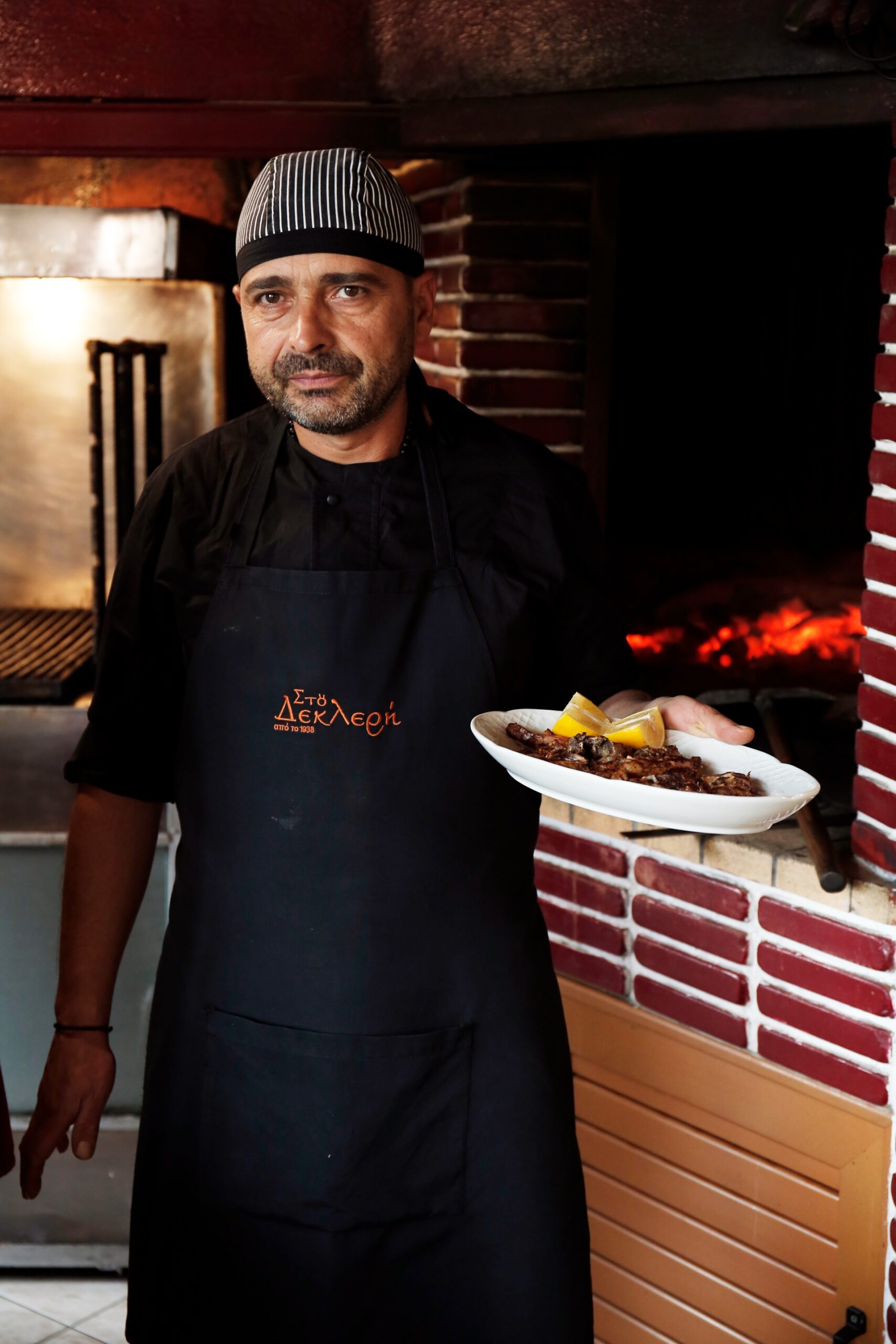 Δοκιμάζοντας το ζουμερό και καθαρά κρεάτινο λουκάνικο αγριόχοιρου, ο Δημήτρης Δεκλερής με κοιτά ανυπόμονα για να ακούσει την «ετυμηγορία» μου, αλλά η έκφρασή μου φανερώνει πολλά περισσότερα από τα λόγια. Παλιά άνοιγαν μόνο το καλοκαίρι και η πελατεία ήταν σχεδόν αποκλειστικά Κορίνθιοι.