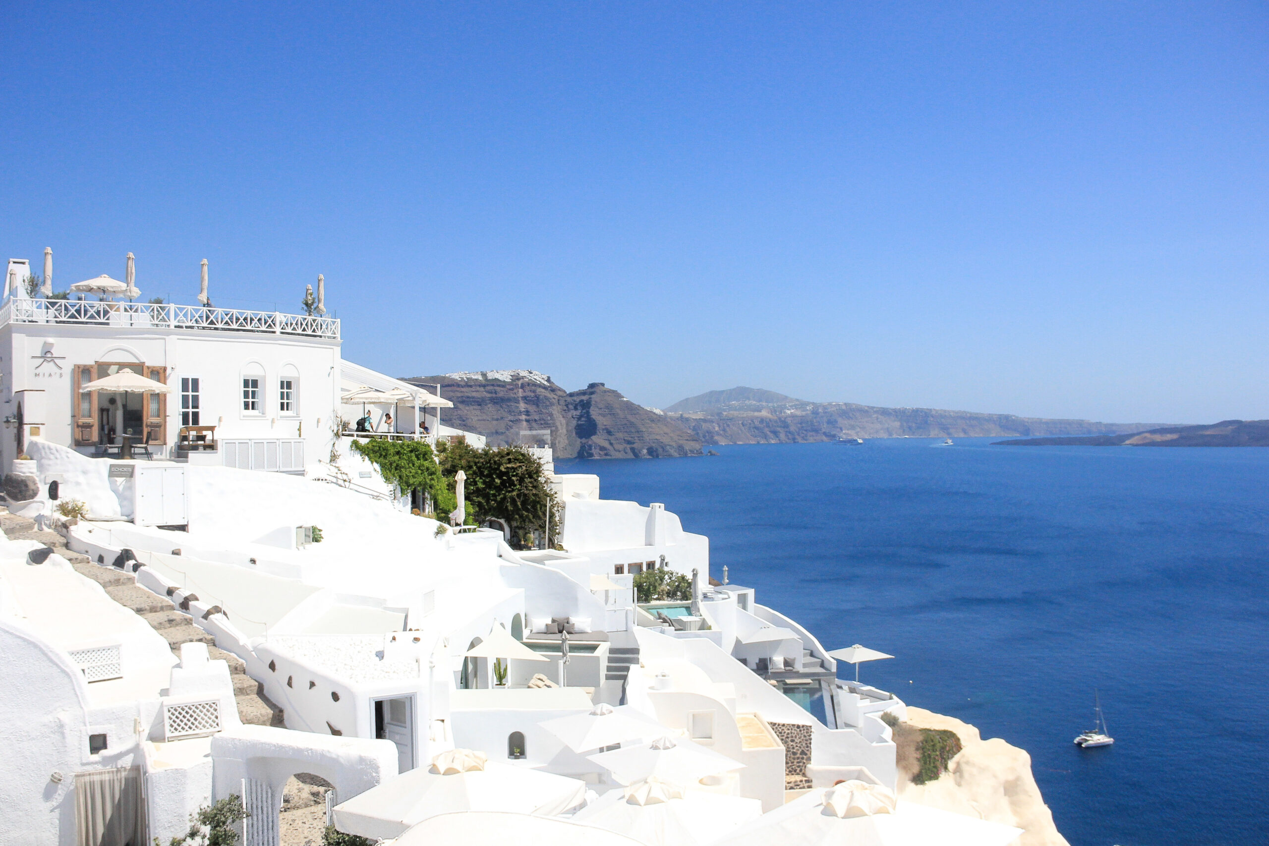 Στον γραφικό οικισμό της Οίας συναντάμε το εστιατόριο Mia’s. Με πανοραμική θέα στην ολόλευκη Οία και την επιβλητική Καλντέρα, το Mia’s προσφέρει αξέχαστες στιγμές χαλάρωσης. Το εστιατόριο φέρει το όνομα της γιαγιάς Μαρίας, «Μία» όπως την έλεγε, όταν ήταν μικρή, η Sellia Georges, η ιδιοκτήτρια του Mia’s. «Το εστιατόριο μας δεν προσφέρει μόνο φαγητό, προσφέρει εμπειρίες και αναμνήσεις», τονίζει η Sellia. Έτσι το Mia’s δίνει στους επισκέπτες του τη δυνατότητα να αγοράσουν πολλά από τα διακοσμητικά, αλλά και από τα προϊόντα του εστιατορίου. Σκοπεύει, επίσης, να εκδώσει ένα έντυπο με προτάσεις σχετικά με το νησί.