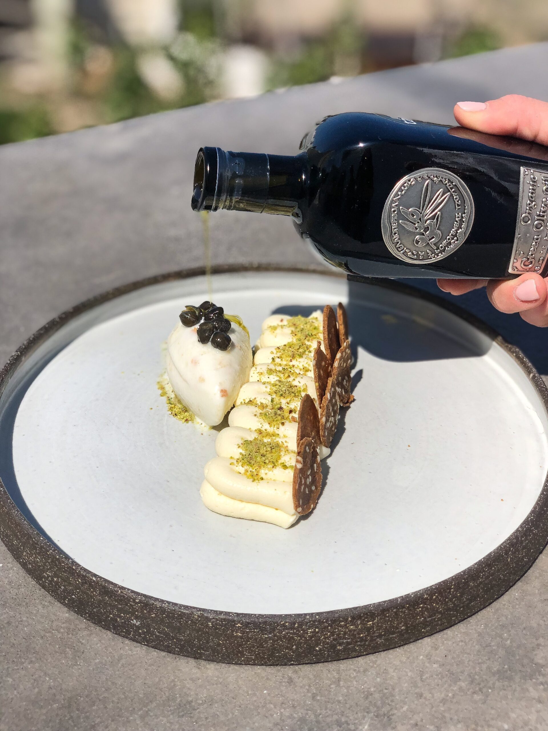 Φέτος, προσφέρουν μία ακόμα εξαιρετική εμπειρία – το olive oil experience, το οποίο δίνει στους επισκέπτες τους τη δυνατότητα να δοκιμάσουν εξαιρετικό παρθένο ελαιόλαδο από όλη την Ελλάδα, μόνο του (olive oil tasting) ή σε συνδυασμό με τα πιάτα που έχουν επιλέξει για το γεύμα τους (olive oil pairing). «Θέλουμε να καταλάβει και ο τουρίστας και ο Έλληνας τι σημαίνει καλό ελαιόλαδο», τονίζει η Φωτεινή Μαρκούτσα, υπεύθυνη του εστιατορίου, «να μάθει για τα ιδιαίτερα χαρακτηριστικά αλλά και την γεύση του κάθε λαδιού και πως αυτό συνδυάζεται με συγκεκριμένες γεύσεις φαγητών», προσθέτει η Θάλεια Παπαδόπουλου, υπεύθυνη της πρωτότυπης αυτής γευσιγνωσίας. Το μενού περιλαμβάνει μεγάλη γκάμα γευστικών πιάτων, με ασυνήθιστα αλλά και παραδοσιακά υλικά, ενώ καθημερινά προστίθενται και πιάτα ημέρας. Ιδιαίτερα ρουστίκ και πληθωρική σε γεύση η ανοιχτή πίτα που ψήνεται στον ξυλόφουρνο με αρνίσια μυαλά, κρίταμο και άγρια χόρτα.