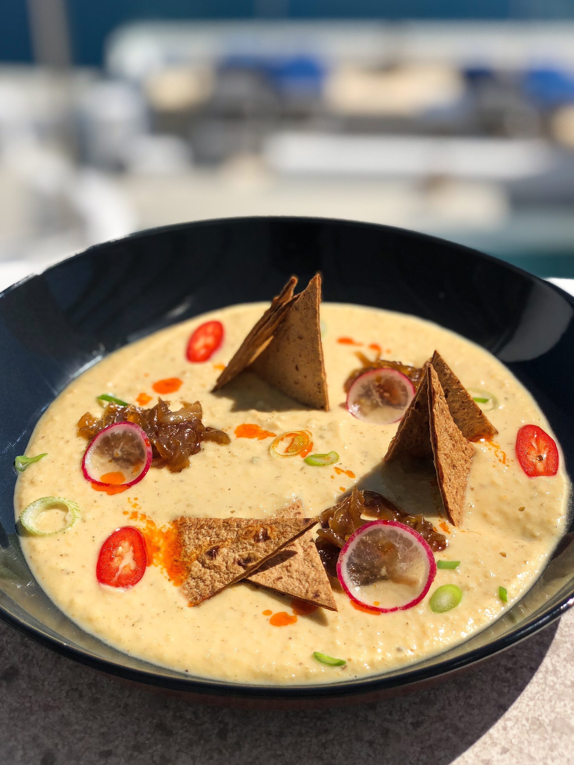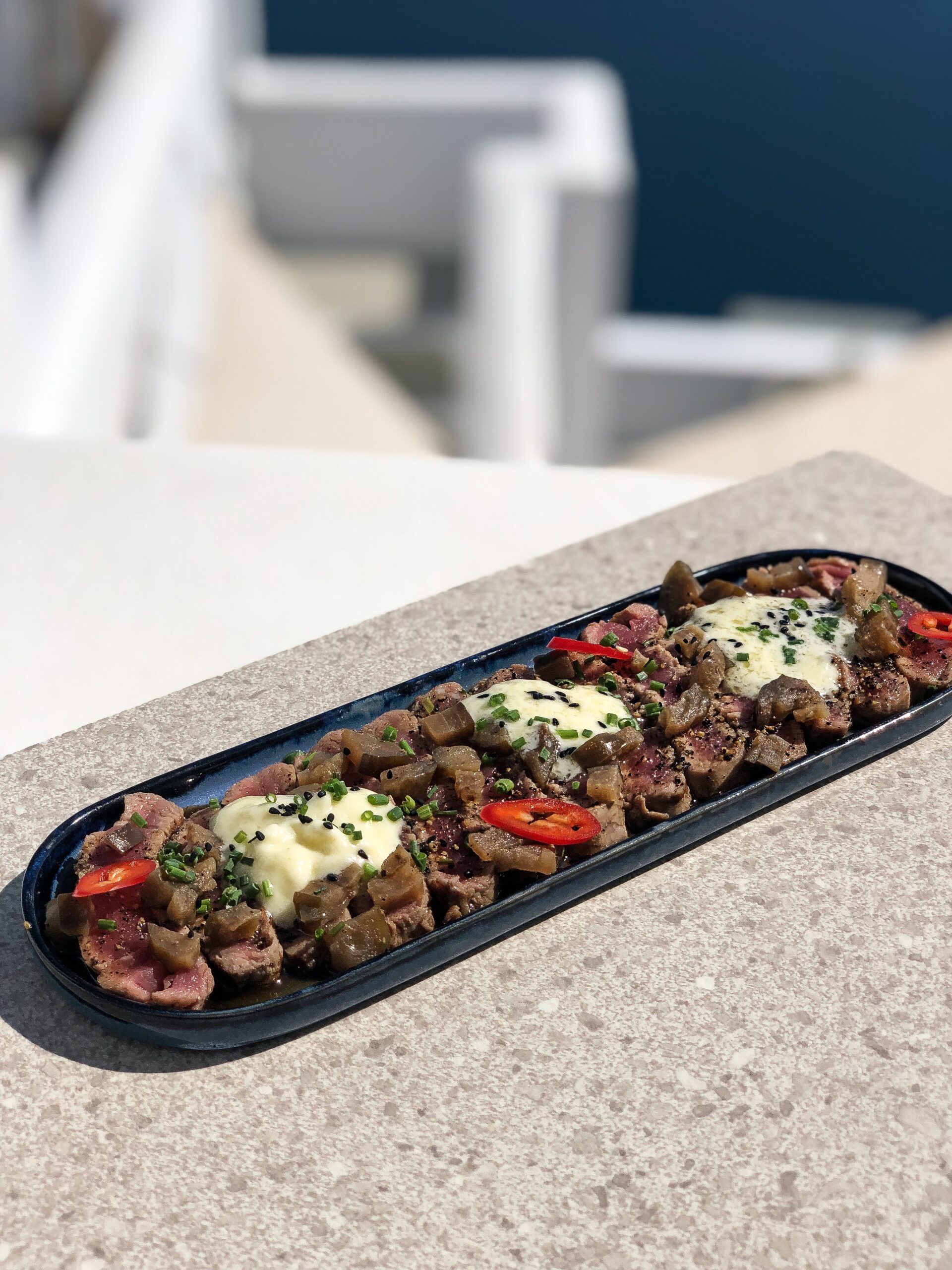 Εδώ, ο executive chef Ματθαίος Σορώτος έχει δημιουργήσει ένα γευστικό comfort μενού «με διεθνείς επιρροές, στο οποίο όμως πρωταγωνιστούν τα ελληνικά και, κυρίως, τα τοπικά προϊόντα», όπως τονίζει ο ίδιος. Ο βασικός κορμός του καταλόγου, που παίζει ανάμεσα στην Ασία και την Λατινική Αμερική, ενισχύεται συχνά με πιάτα ημέρας τα οποία έχουν πιο έντονο άρωμα Ελλάδας. Γευστικό και αέρινο το χούμους Σαντορινιάς φάβας που συνοδεύεται από τραγανά tortilla chips, με τα γλυκά στοιχεία του καραμελωμένου κρεμμυδιού να μπλέκονται όμορφα με τα καπνιστά από το λάδι πάπρικας. Πολύχρωμο και δροσερό το ceviche λαβράκι με τις όξινες νότες από τα εσπεριδοειδή να μπαλανσάρουν έντεχνα με τις καυτερές από την πιπεριά chili. Πληθωρικά και αφράτα τα bao buns καραβίδας με φρεσκοκομμένη ντομάτα και σάλτσα ταρτάρ από μαγιονέζα, πίκλες, κάπαρη και μυρωδικά. Ιδιαιτέρως γευστικό και άρτια εκτελεσμένο το beef tataki με μελιτζάνα κονφί και αφρό από γραβιέρα Νάξου.