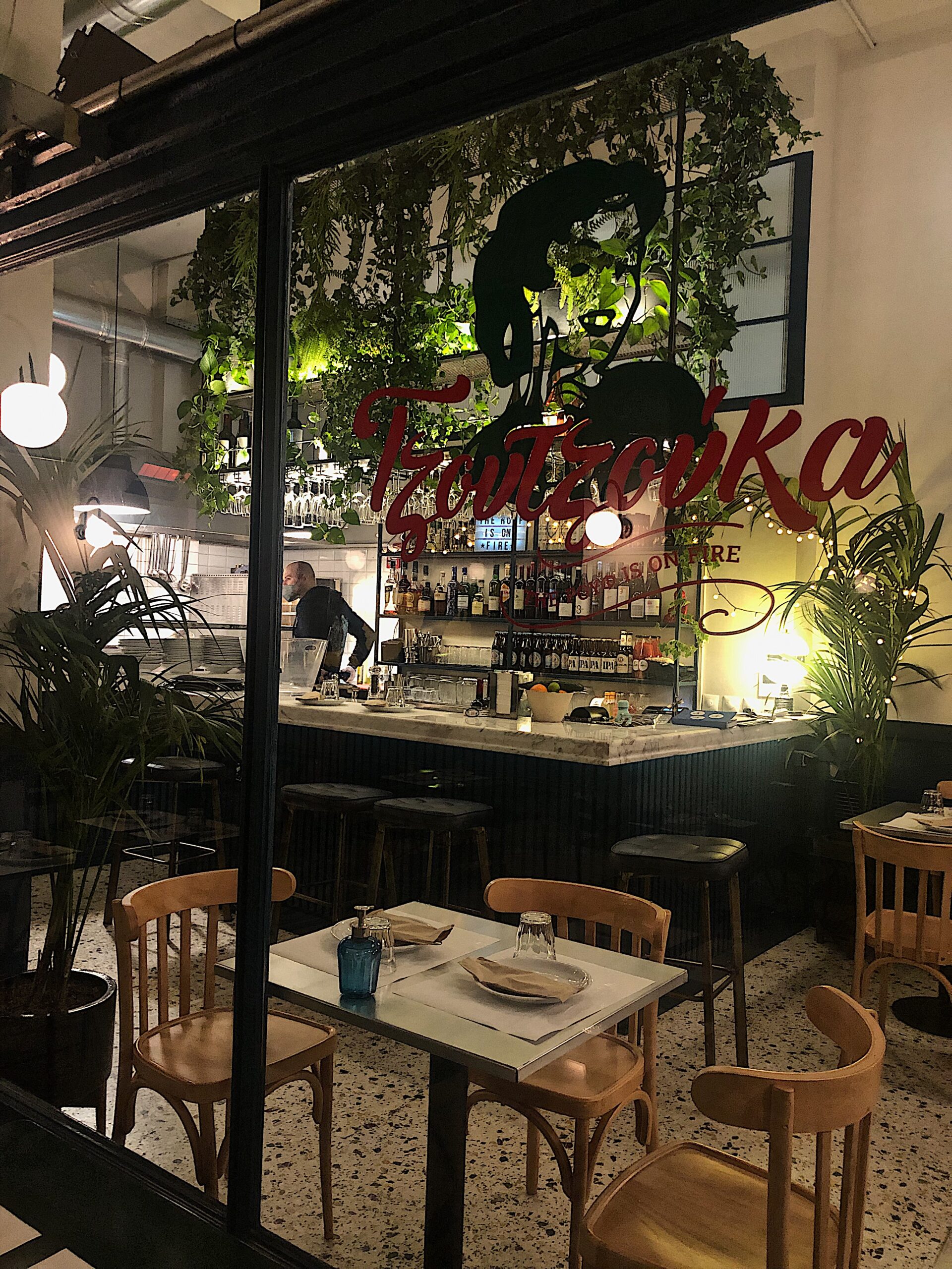 Στην ανερχόμενη για καλό φαγητό συνοικία του Ρουφ, έκανε την εμφάνισή της στα μέσα του περασμένου χρόνου η Τζουτζούκα του Αντώνη Λιώλη. Ένα παλιό καφενείο και ένα ψιλικατζίδικο ενώθηκαν, ανακαινίσθηκαν και πλέον στεγάζουν το μέρος όπου γεννιούνται οι γευστικές απολαύσεις της Τζουτζούκας. Έχει εσκεμμένα κρατήσει την όψη παλιού καφενείου, με τις μεγάλες τζαμαρίες να αγκαλιάζουν τον χώρο και το μωσαϊκό στο εσωτερικό να μας ταξιδεύει σε άλλες εποχές. Η ανοιχτή κουζίνα που σκορπά ελκυστικές μυρωδιές, το μπαρ με την μεγάλη μαρμάρινη μπάρα, τα σιδερένια τραπέζια με τις ξύλινες καρέκλες και τα όμορφα φυτά, ενώνονται αρμονικά και προσφέρουν ένα ευχάριστο σκηνικό που κερδίζει τον επισκέπτη με την πρώτη ματιά.