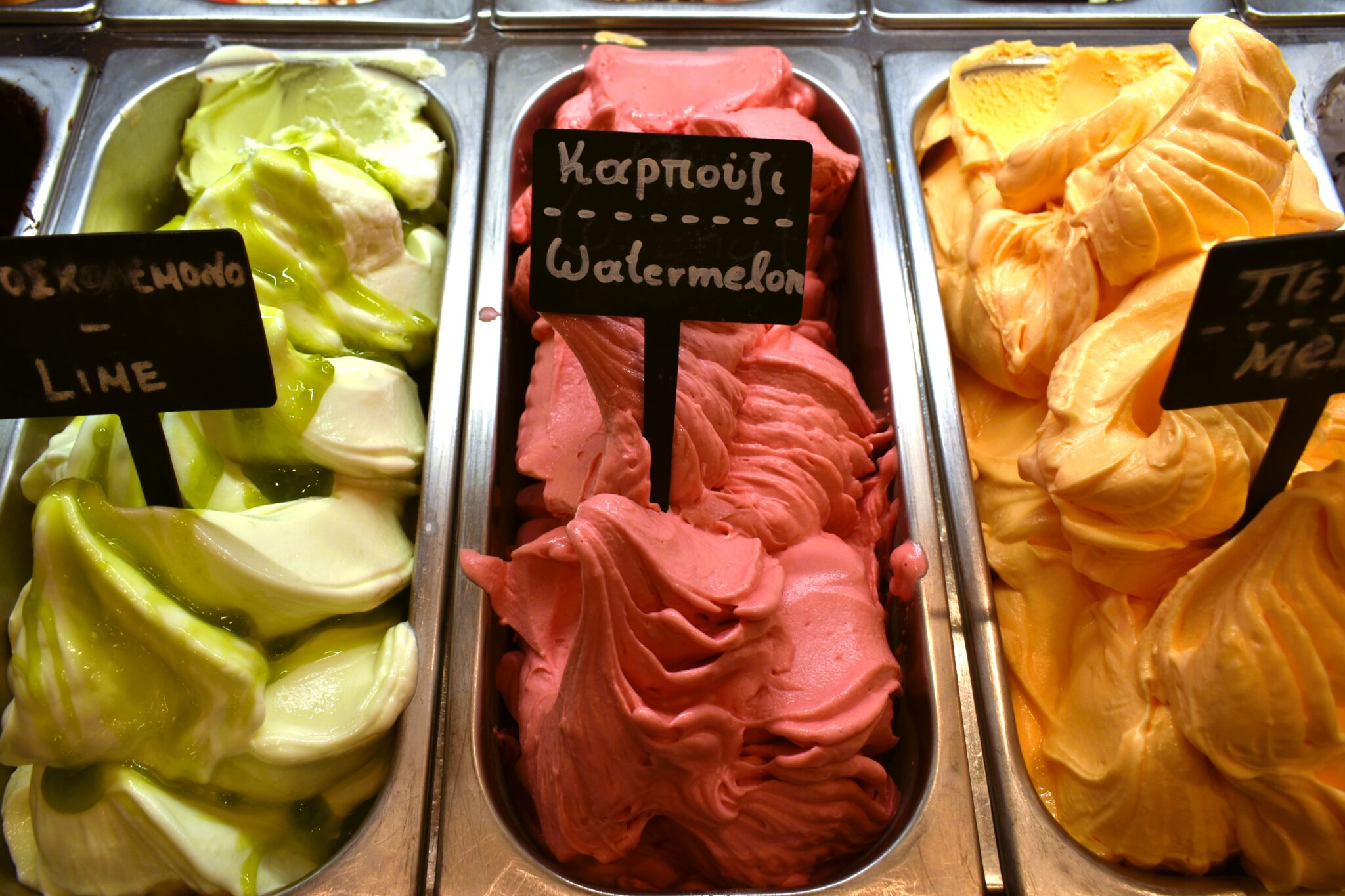 Οι στάνταρ γεύσεις για την τελειοποίηση των οποίων η ιδιοκτήτρια παρακολούθησε σεμινάρια στην Ιταλία, περιλαμβάνουν εξαιρετικό espresso, φιστίκι, φουντούκι, έντονο σορμπέ σοκολάτας, τιραμισού, μαστίχα, τριαντάφυλλο. Σορμπέ ή κρεμώδη, τα φρούτα – blueberry, πορτοκάλι, φράουλα, ροδάκινο, καρπούζι, ανανάς και μάνγκο – έχουν πλούσια, μεστή γεύση, όπως και η σκούρα σοκολάτα με στέβια που δεν θα πιστεύετε ότι δεν περιέχει καθόλου ζάχαρη. Στους εμπνευσμένους συνδυασμούς όπως το μασκαρπόνε με μάνγκο και τζίντζερ, φέτος προστέθηκαν τρεις ακόμη: εξωτικός ανανάς με καρύδα και λεμόνι, αρωματική βανίλια με bourbon, καραμελωμένα αμύγδαλα, καραμέλα γάλακτος και κομμάτια βάφλας αλλά και σκούρα σοκολάτα με ρόδι, δίνοντάς μας ακόμη περισσότερους λόγους να επισκεπτόμαστε το Yo n Ice καθημερινά.