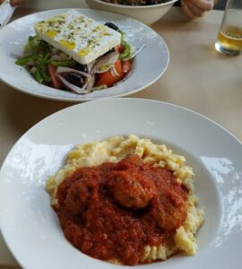 Η πράσινη σαλάτα, περιέχει αποξηραμένο σύκο, ανθότυρο, και λόλες που καλλιεργούνται στην Σπερχογεία. Εδώ θα βρούμε σούπα βελουτέ ημέρας, πίτες με χειροποίητο φύλλο, προζυμένιο ψωμί, ενώ αυτή την εποχή υπάρχουν και σπαράγγια.