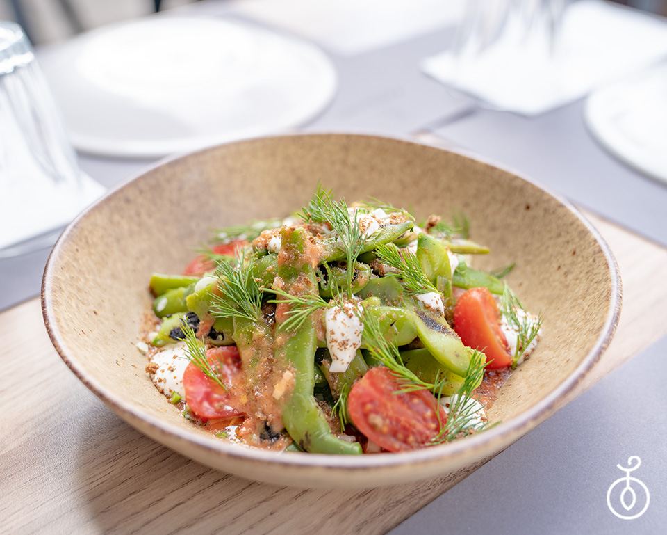 Η πράσινη σαλάτα, περιέχει αποξηραμένο σύκο, ανθότυρο, και λόλες που καλλιεργούνται στην Σπερχογεία. Εδώ θα βρούμε σούπα βελουτέ ημέρας, πίτες με χειροποίητο φύλλο, προζυμένιο ψωμί, ενώ αυτή την εποχή υπάρχουν και σπαράγγια.