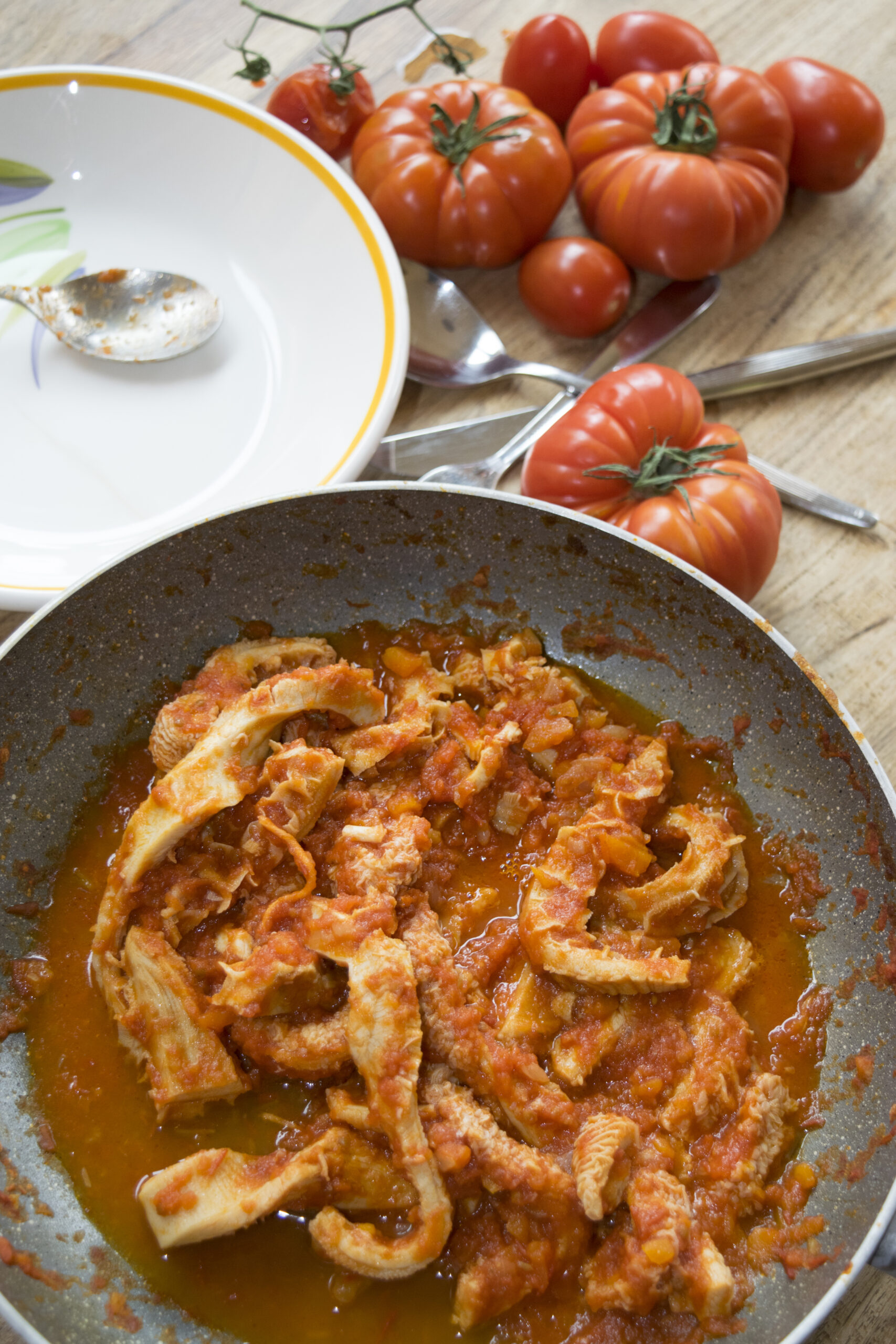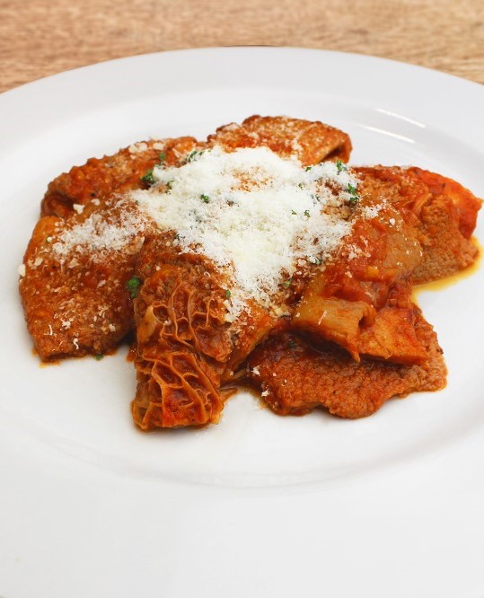 Στην Ελλάδα αποκαλείται πατσάς, στην Ιταλία trippa κι αποτελεί μία ακόμη συνταγή της κουζίνας της «Roma testacciana», όπως συχνά αποκαλείται η περιοχή γύρω από το λόφο Testaccio με τον τόσο ιδιαίτερο χαρακτήρα της. Αυτό ήταν και το δημοφιλέστερο λαϊκό πιάτο, ένα ακόμη δημιούργημα βάση των quinto quarto υπολειμμάτων των σφαγίων, που συνήθως αποτελούσε και το γεύμα του Σαββάτου για τα φτωχότερα πληθυσμιακά στρώματα. Και αυτή η συνταγή περιλαμβάνει λευκό κρασί κατά το βράσιμο των στομαχιών, ενώ ντομάτες, κρεμμύδια και καρότα δίνουν μια γλυκιά σάλτσα που νοστιμεύει με το αγαπημένο τυρί της Ρώμης, το pecorino romano, και κάποιες φορές με φρέσκα φύλλα μέντας.