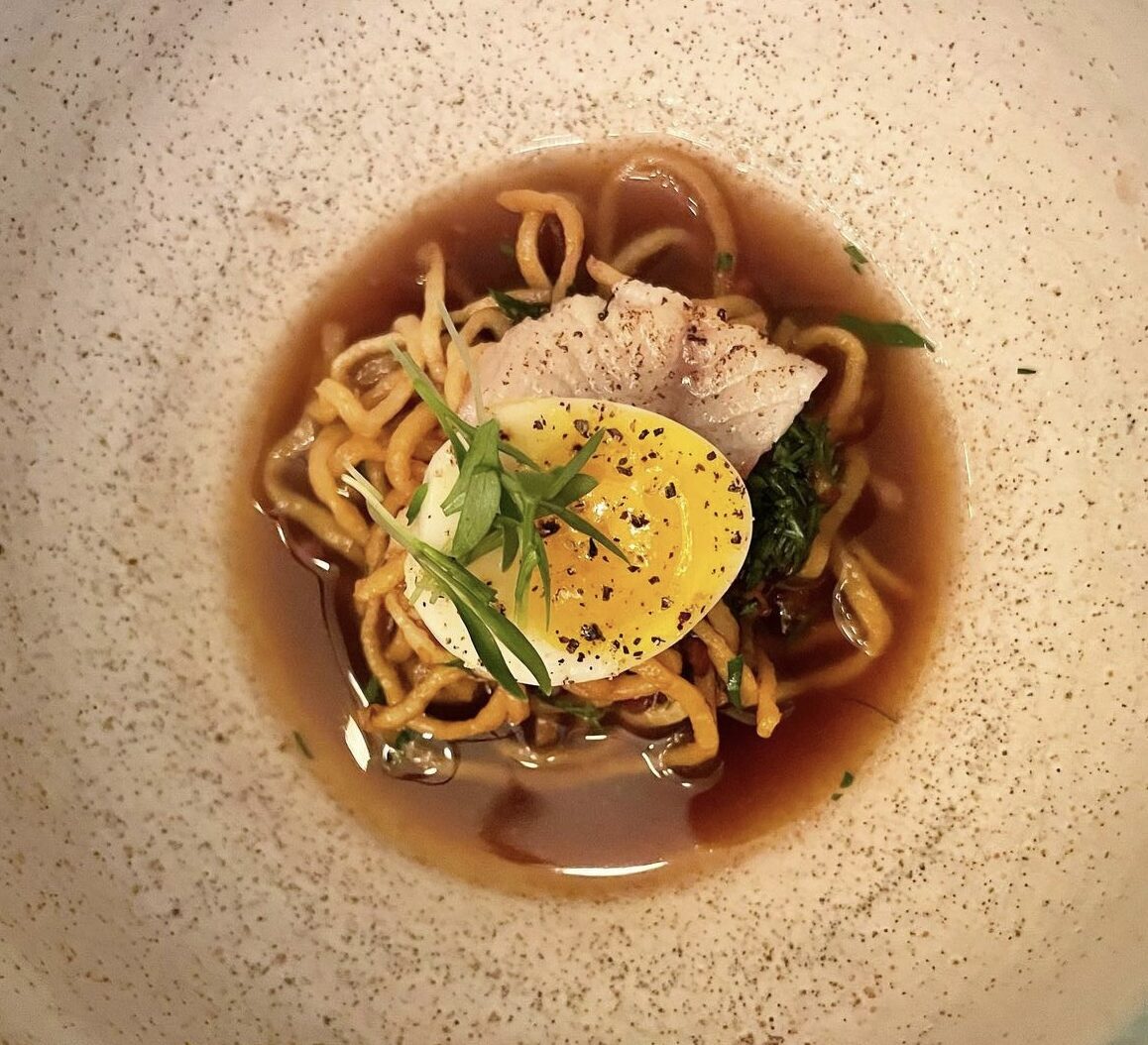 Για τους λάτρεις του Ramen, το bistronomy εστιατόριο του Νίκου Θωμά στο Κολωνάκι προτείνει μια πιο premium εκδοχή. Τι είναι όμως το Ramen; Μια ιαπωνική σούπα με διάφορα είδη ζωμών (βοδινό, χοιρινό, κοτόπουλο, θαλασσινά), γαρνιτούρες και στυλ noodle. Και ενώ τα βασικά συστατικά παραμένουν τα ίδια, οι παραλλαγές της σούπας είναι πάμπολες – μέσα και έξω από την Ιαπωνία. Στο Simul, ετοιμάζουν ένα ζωμό από το κεφάλι γουρουνιού, πολύ ενισχυμένο στη γεύση, και φτιάχνουν χειροποίητα λεπτά noodles, τα οποία, όπως λένε και στην περιγραφή του πιάτου, θυμίζουν περισσότερο φιδέ. Το βαθύ μπολ μέσα στο οποίο έρχεται το ramen εμπλουτίζεται με ένα άψογα βρασμένο αυγό ορτυκιού και φιλέτο από καπνιστό χέλι που ταιριάζει εξαίσια με το στιβαρό της γεύσης του χοιρινού ζωμού.