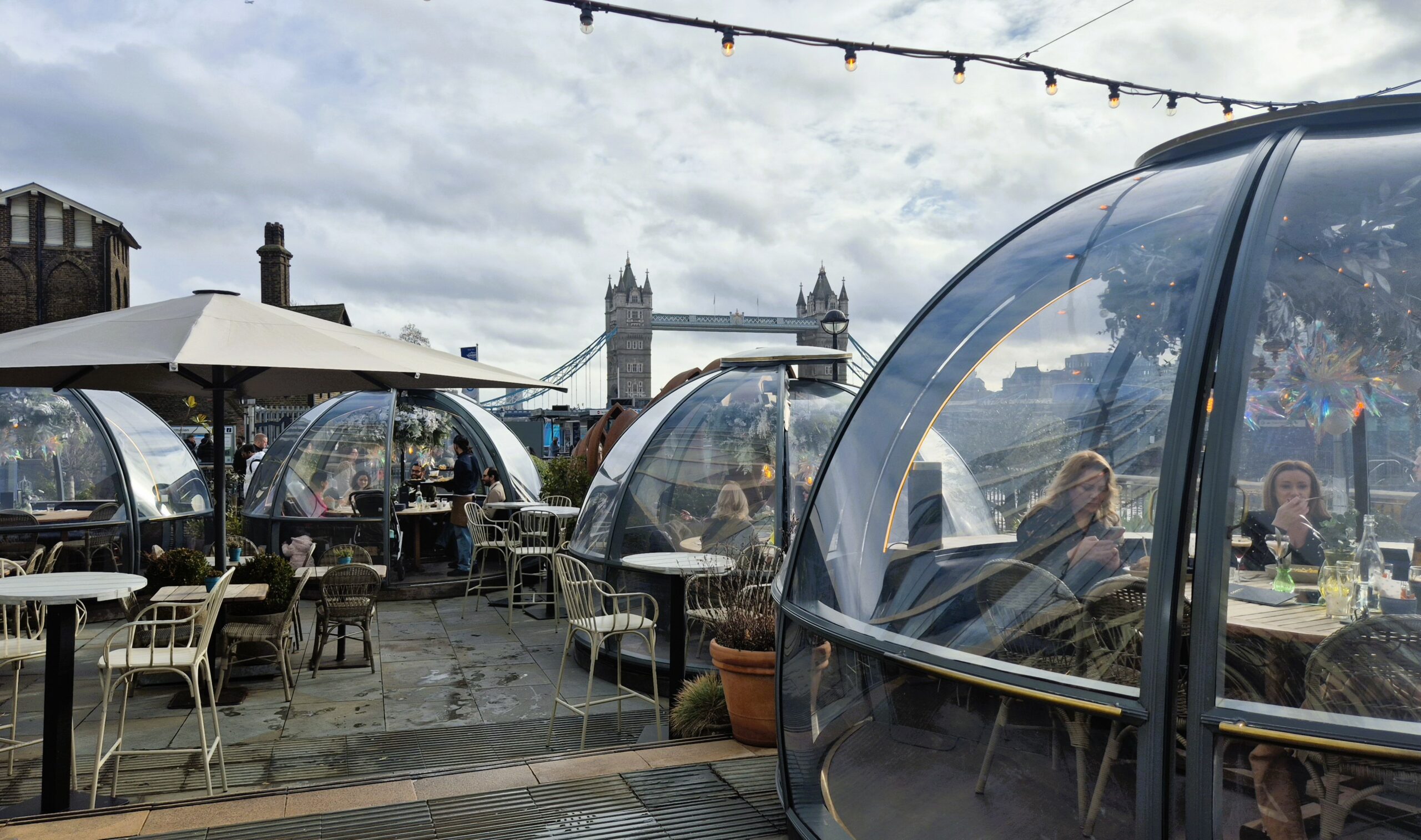 Προκαλώντας μεγάλο ντόρο και πολύωρη αναμονή όταν πρωτοεμφανίστηκαν τα Χριστούγεννα του 2016 ως προσωρινή γιορτινή εγκατάσταση, απέδειξαν ότι ήρθαν για να μείνουν, αποτελώντας πλέον ένα από τα θεαματικότερα σημεία για να απολαύσετε το πρώτο γεύμα μιας ημέρας στα αξιοθέατα του Τάμεση: o Πύργος του Λονδίνου απέχει λίγα μέτρα, η Tower Bridge είναι ορατή από κάθε igloo, ακριβώς απέναντι η αστραφτερή σιλουέτα του Shard ρίχνει τη σκιά της στο ιστορικό καταδρομικό HMS Belfast και οι ανακαινισμένες αποβάθρες του Hay’s Galleria περιμένουν να τις εξερευνήσετε.
