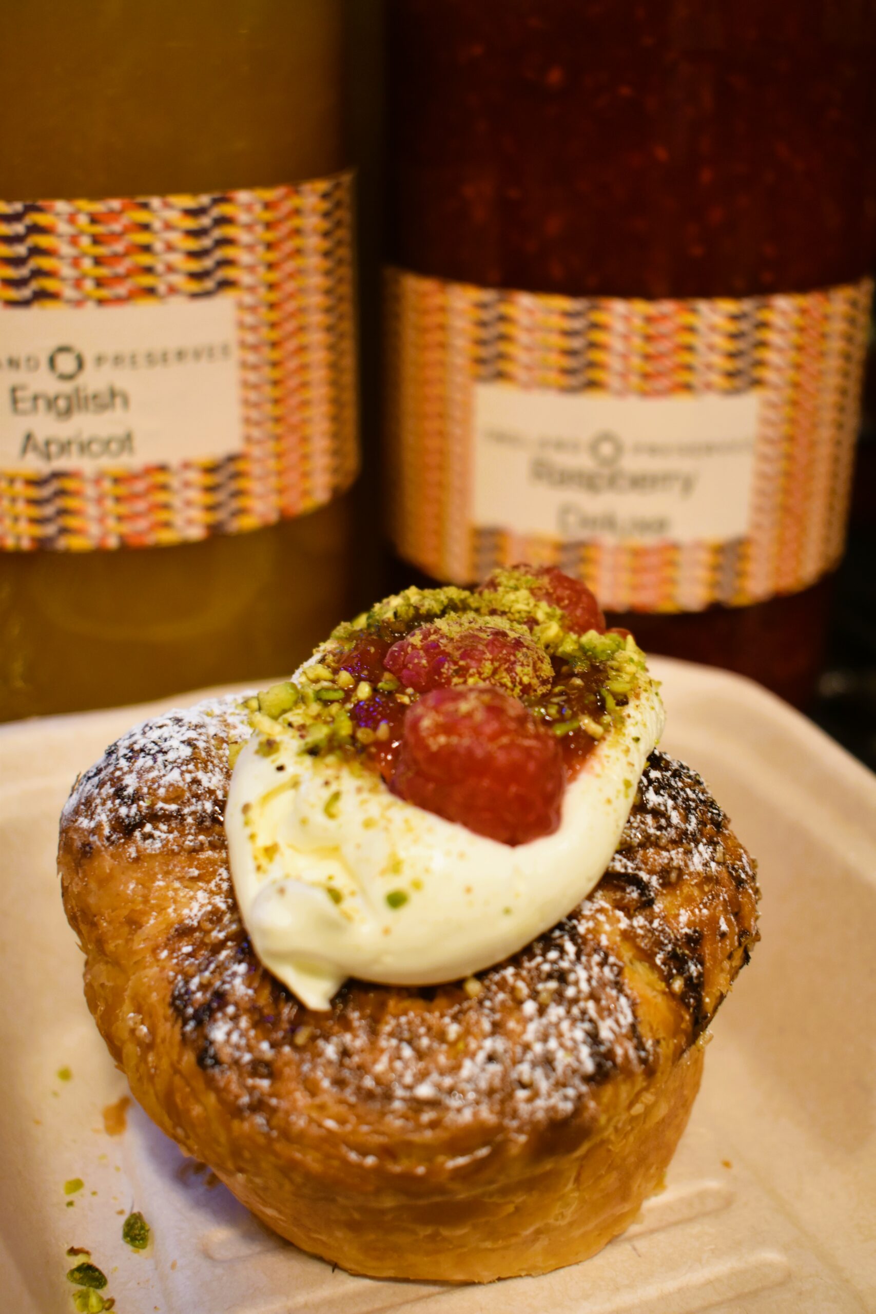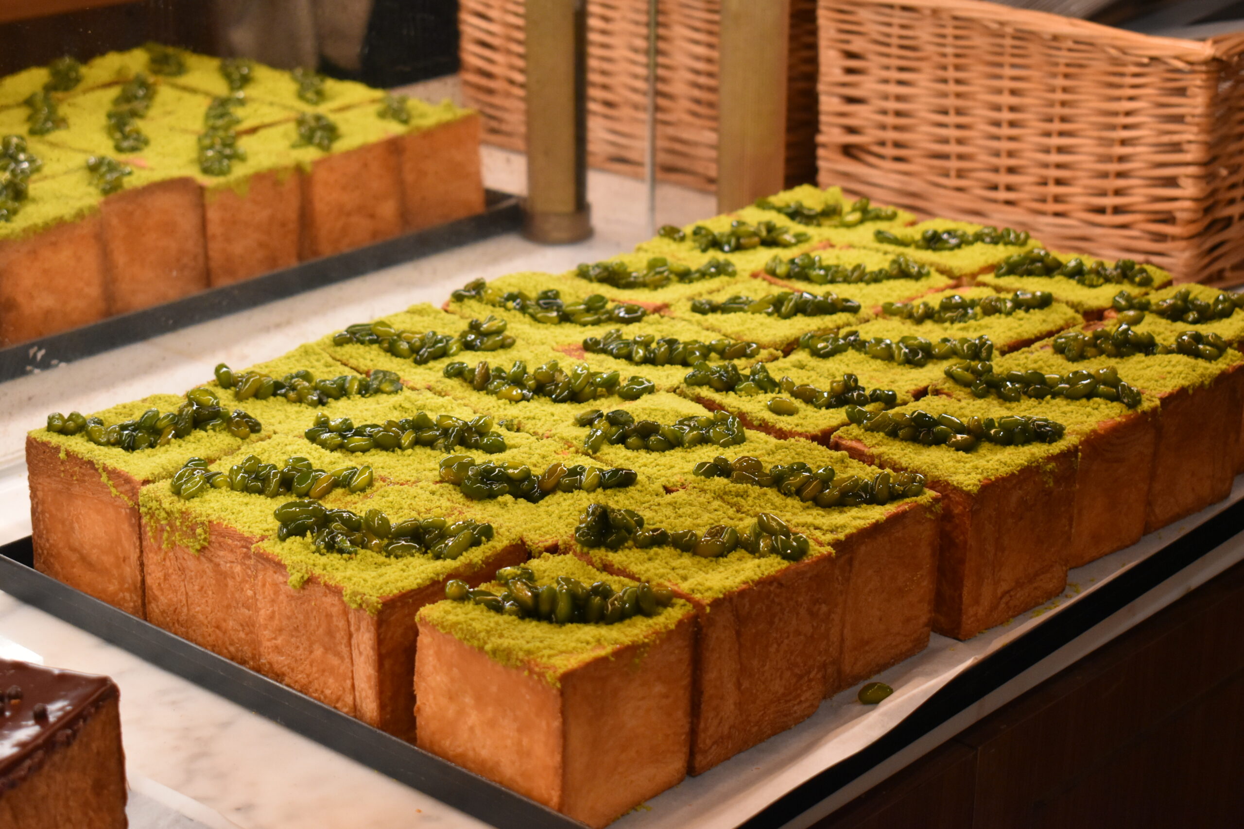 Χρειάστηκαν πολύμηνοι πειραματισμοί ώστε η λαχταριστή γέμιση ούτε να νοτίζει ούτε να υπερκαλύπτει την αφράτη ζύμη, ώστε σήμερα οι άψογοι κύβοι, που η πρώτη τους παρτίδα ξεφουρνίζεται στις 10 το πρωί στο σοφιστικέ café της Piccadilly St., να φέρνουν όλους αντιμέτωπους με τη δύσκολη απόφαση: γέμιση αρωματικής κρέμας βανίλιας, επικάλυψη μιας μεταξένιας, γυαλιστερής γκανάζ σοκολάτας και αέρινη μους σοκολάτας στο εσωτερικό, ή απίθανη κρέμα φιστικιού με μια ζωηρόχρωμη στρώση από πάστα φιστικιού; Για να μην αναφερθούμε στις αλμυρές εκδοχές.