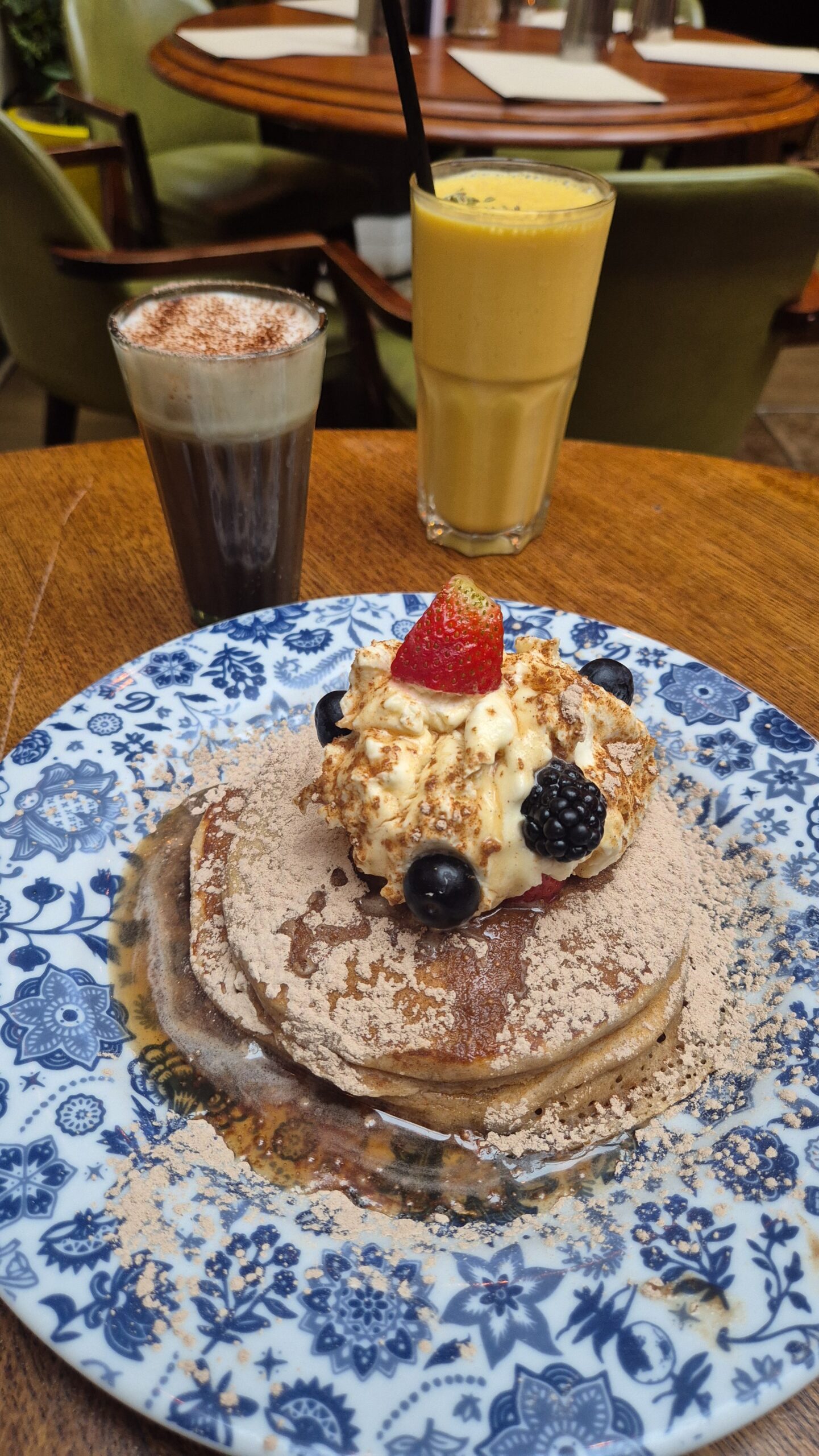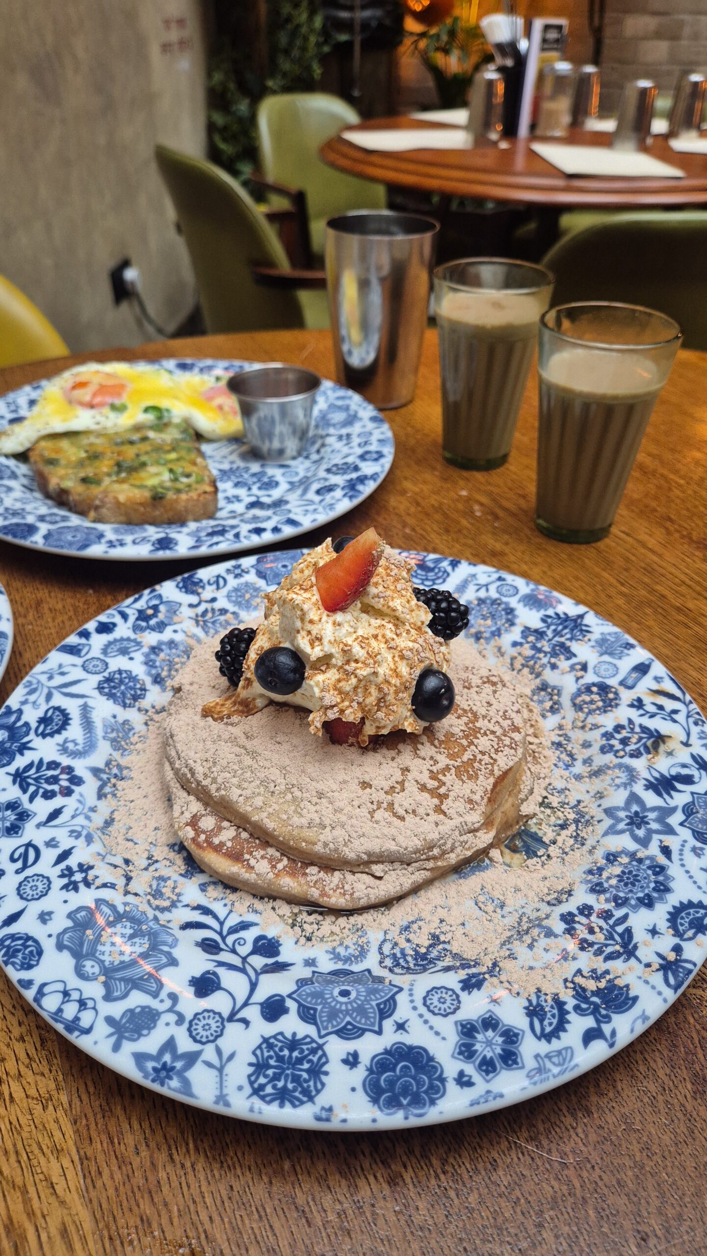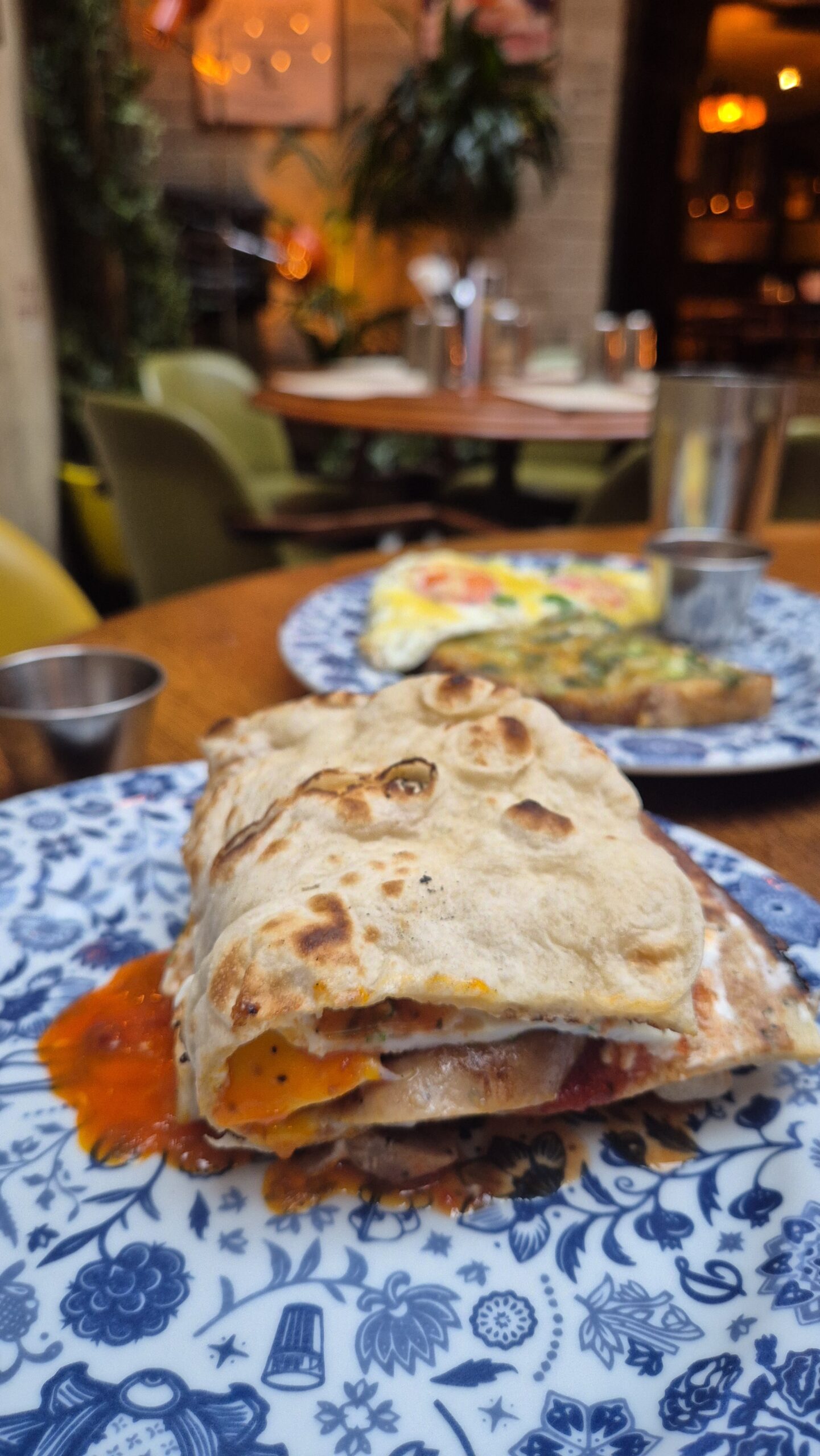 Εδώ οι ανάλαφρες, επίπεδες πίτες – στην ανοιχτή κουζίνα θα δείτε ότι ψήνονται σε αυθεντικό φούρνο tandoor- διπλώνουν απαλά για να τυλίξουν αυγά μάτια με ώριμο καπνιστό μπέικον, λουκάνικα χειροποίητα από το Shropshire, ή vegan, και δεν λείπουν από σχεδόν κανένα τραπέζι, πλάι σε περσικές ομελέτες, παραδοσιακά ινδικά πιάτα πρωινού, μπαχαρένια pancakes, γιαούρτι βανίλιας και bottomless πόριτζ. Απεριόριστα είναι και τα γεμίσματα του ποτηριού παραγγέλνοντας το απόλυτο comfort ρόφημα, το φτιαγμένο με γάλα, ινδικό chai, που σου ζεσταίνει την ψυχή με τη γλύκα των εξωτικών μπαχαρικών του. Προνοείστε για ηλεκτρονική κράτηση και αφήστε χώρο στις αποσκευές σας για το βραβευμένο βιβλίο «From Bombay with Love», με 100 αυθεντικές συνταγές του Dishoom.