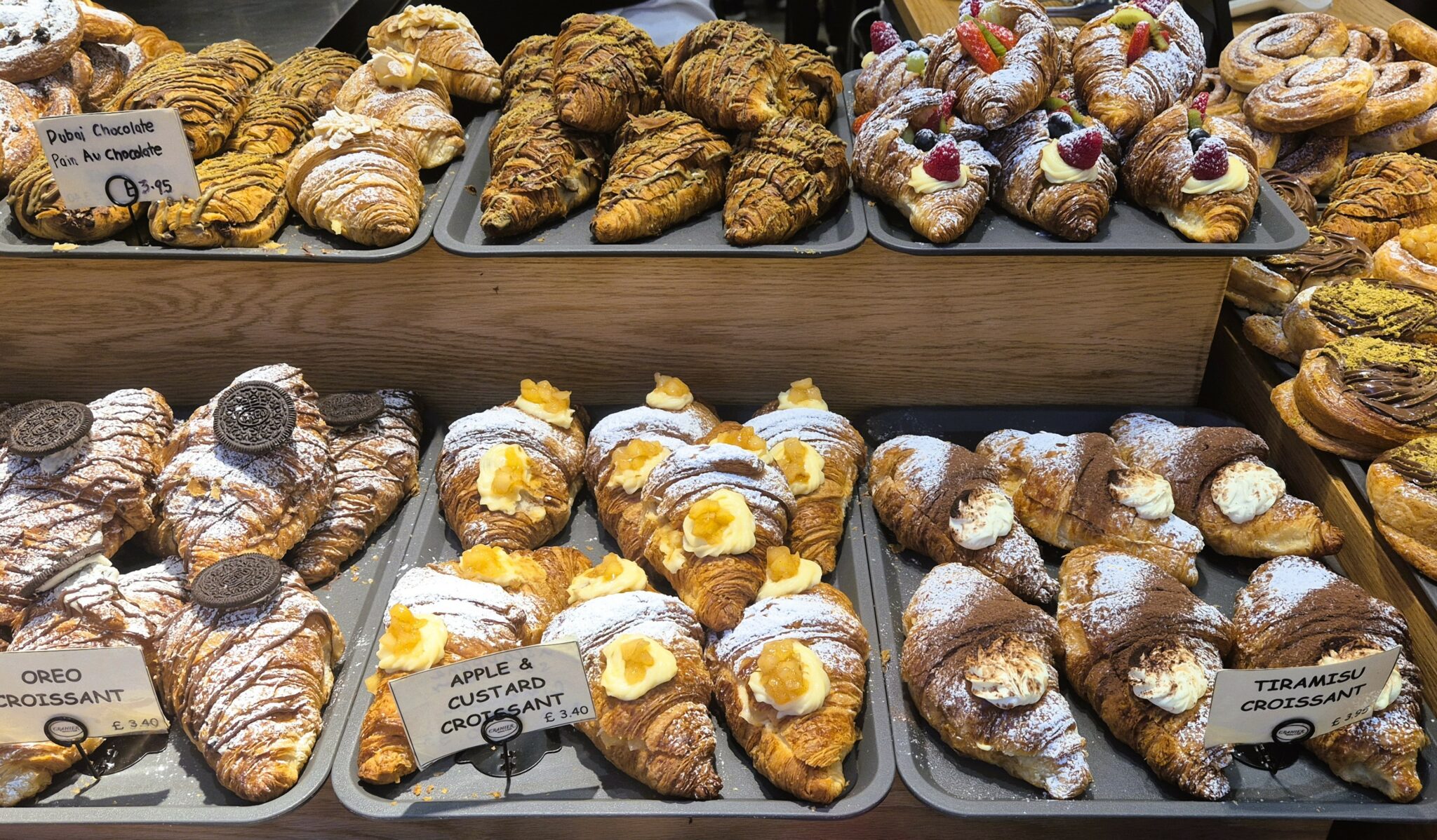 Στο μεταξύ, στο έτερο βρετανικό βασίλειο των κρουασάν, ονόματι Chestnut Bakery, οι θαμώνες βρίσκονται μπροστά στο εξίσου νόστιμο δίλημμα: να δοκιμάσουν το περιορισμένης κυκλοφορίας κρουασάν του μήνα -εμπνευσμένο από εποχικά υλικά- ή να ενδώσουν στις σταθερές γεύσεις που έχουν καθιερώσει το πολυβραβευμένο αρτοποιείο-café; Στην πρώτη περίπτωση, τον Φεβρουάριο θα απολαύσουν το διπλοψημένο κρουασάν Cookies & Cream, με σοκολατένια σφολιάτα, κρέμα λευκής σοκολάτας, επικάλυψη ροζ σοκολάτας και βρώσιμα ροδοπέταλα, ενώ στη δεύτερη, συνιστούμε να μη χάσουν τους συνδυασμούς καραμελωμένα καρύδια-κρέμα αλμυρής καραμέλας, κρέμα dulce de leche-καραμελωμένες μπανάνες, φυστίκι-σμέουρα. Φιλική προειδοποίηση: είναι άκρως εθιστικά.