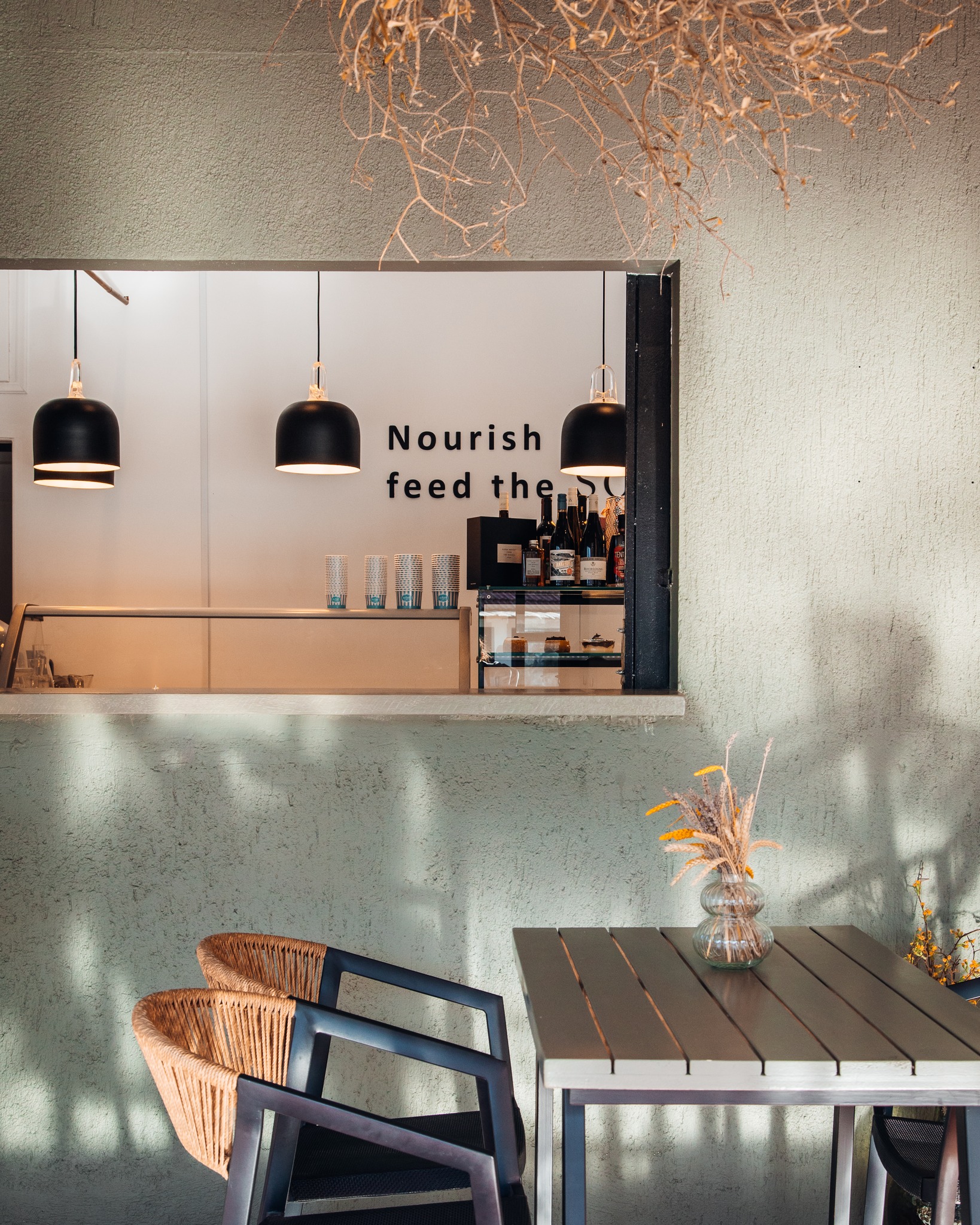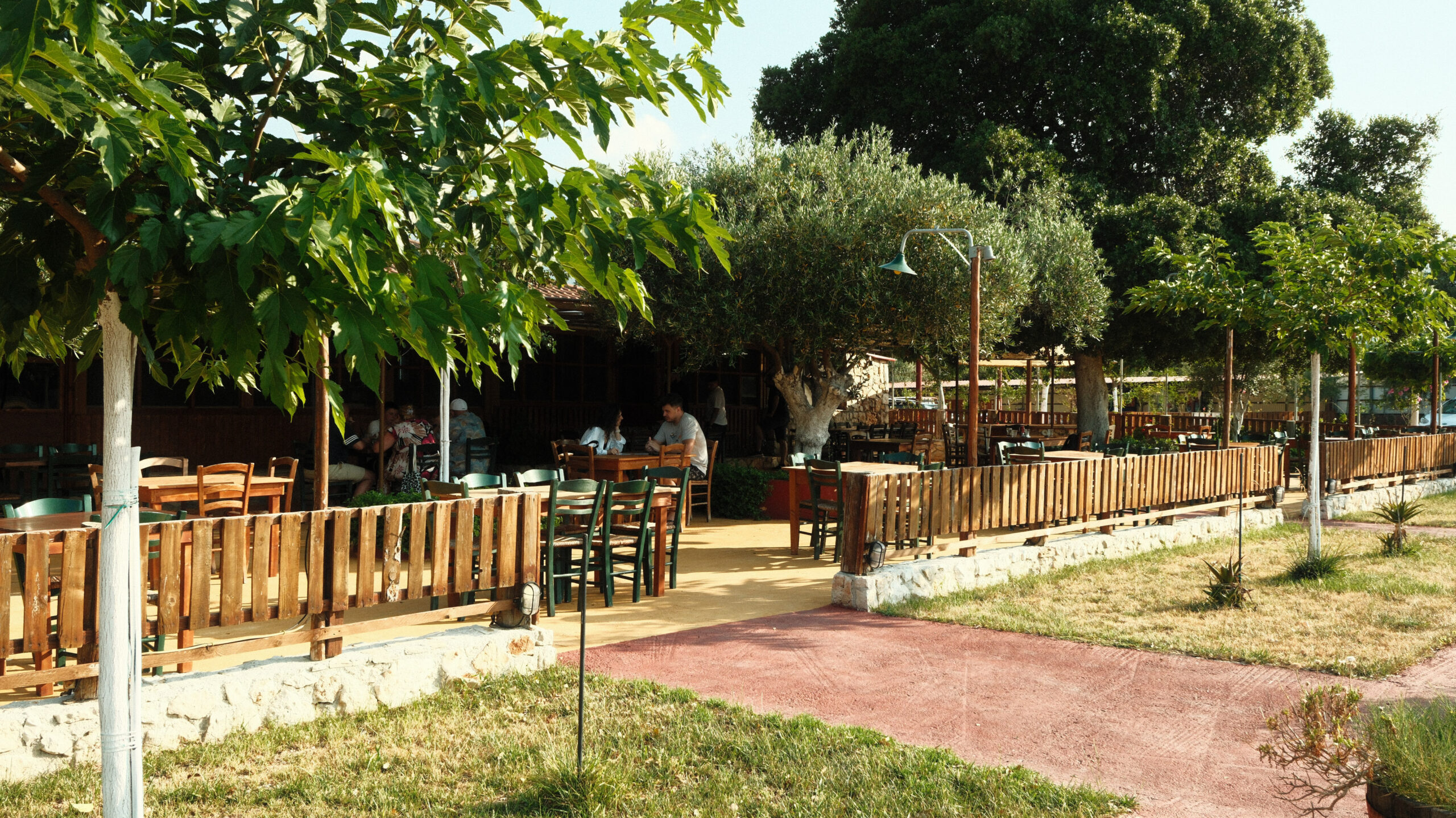 Στο δρόμο για τον Μύρτο, στα Διβαράτα, είναι μια στάση που αξίζει να κάνετε. Ο χώρος σχεδιάστηκε με αναφορές στο καλοκαίρι του Ιονίου: το δάπεδο με ρίγες σε λευκό και πορτοκαλί θυμίζει πετσέτες θαλάσσης και ήλιους που δύουν. Ταβάνι από κλαδιά ελιάς που προσελκύουν τα πουλιά, τραπέζια σαν βότσαλα, αποχρώσεις από κυπαρίσσια και πεύκα, ναυτικά σχοινιά και θεματικά κάδρα έχουν έναν διάλογο με τη φύση και την εποχικότητα. Οι πράσινοι τόνοι και τα χειροποίητα κεραμικά με φύλλο χρυσού έρχονται να γεφυρώσουν την αισθητική με την εμπειρία.