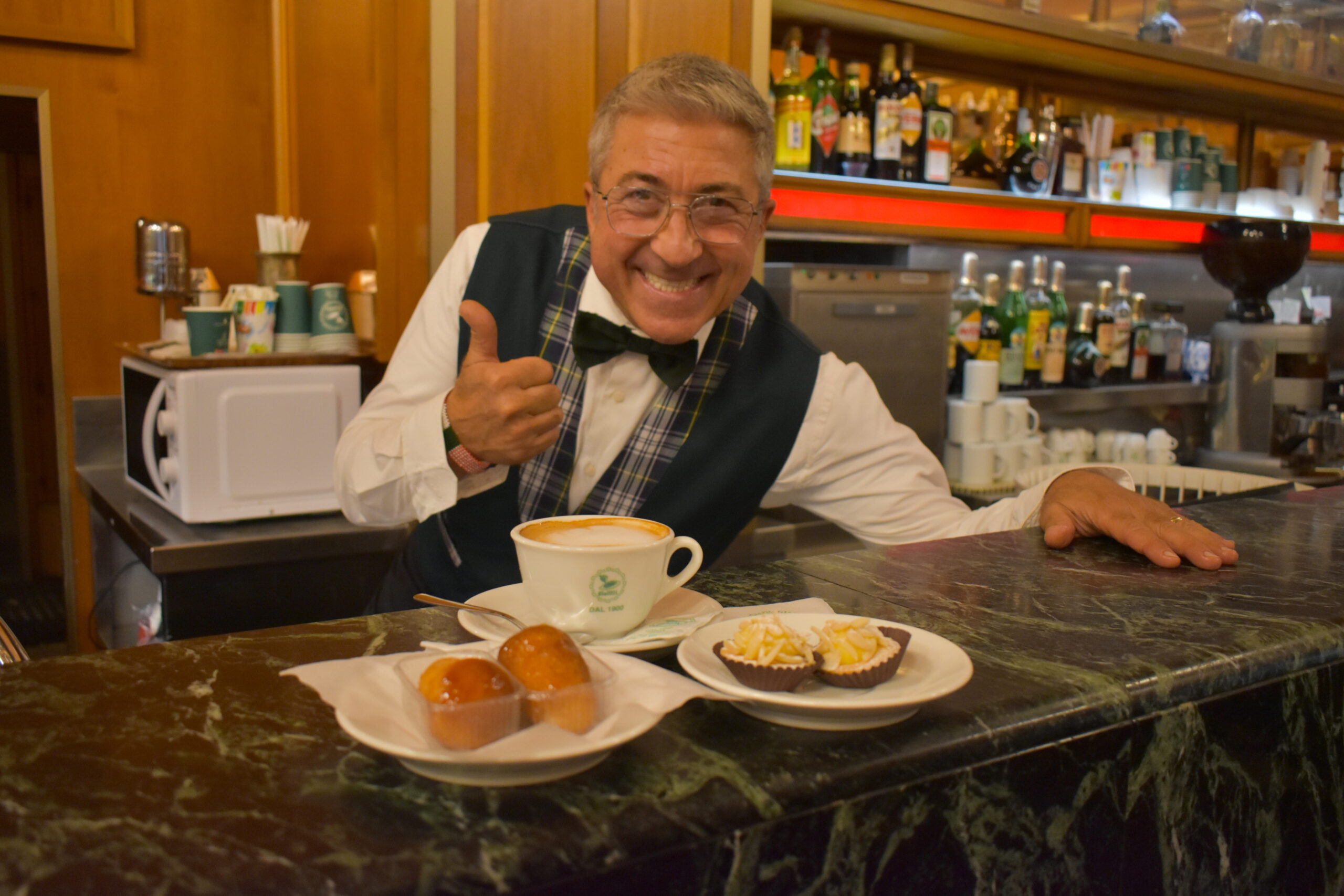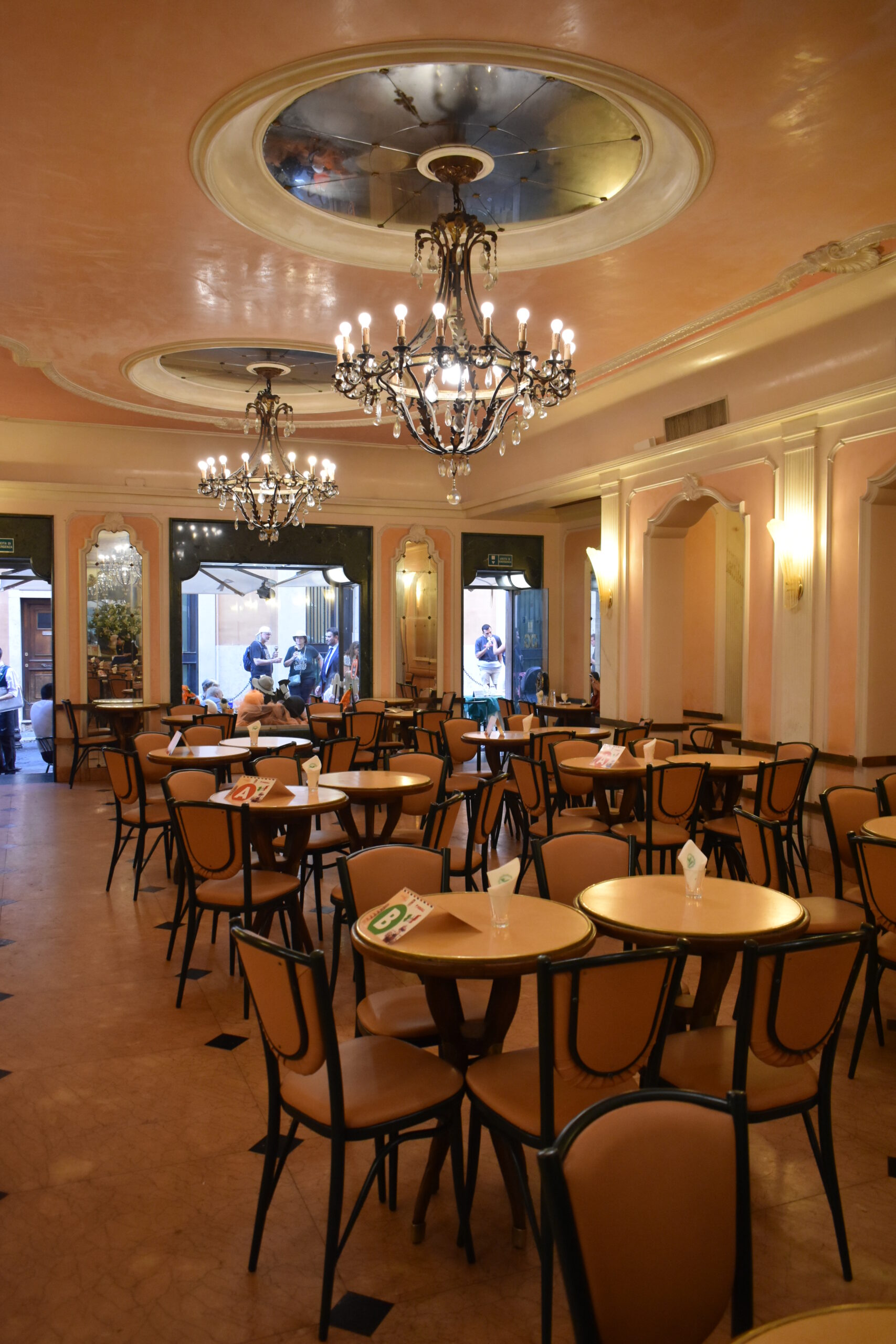 To παλαιότερο καφέ της Ρώμης και ένα από τα παλαιότερα της Ιταλίας και διασημότερα στον κόσμο, λειτουργεί ακόμη από το 1760 και αποτελεί ένα ζωντανό μνημείο για την Αιώνια Πόλη, γεμάτο έργα τέχνης και αναμνήσεις από την εποχή που αποτελούσε αγαπημένο στέκι εστεμμένων, διανοούμενων, καλλιτεχνών και συγγραφέων της εποχής, όπως των Goethe, Byron, Dickens, Andersen, Stendhal και Nietzsche μεταξύ πολλών άλλων. Η δημοφιλία του παραμένει αμείωτη και παρότι πολιορκείται από τουρίστες που φωτογραφίζουν ασταμάτητα κάθε σπιθαμή του, οι Ρωμαίοι καταστηματάρχες της περιοχής εξακολουθούν να το προτιμούν για τον πρώτο espresso της ημέρας. Φυσικά, επειδή δεν είναι διατεθειμένοι να πληρώσουν διψήφιο αριθμό για έναν καφέ, επιλέγουν τον εξίσου κομψό πάγκο του μπαρ στην αίθουσα υποδοχής. Κάντε το ίδιο αφού εκεί η ατμόσφαιρα είναι αυθεντική και θα μπορείτε να επιλέξετε με την ησυχία σας από την μικρή μεν, δελεαστική δε ποικιλία γλυκών.