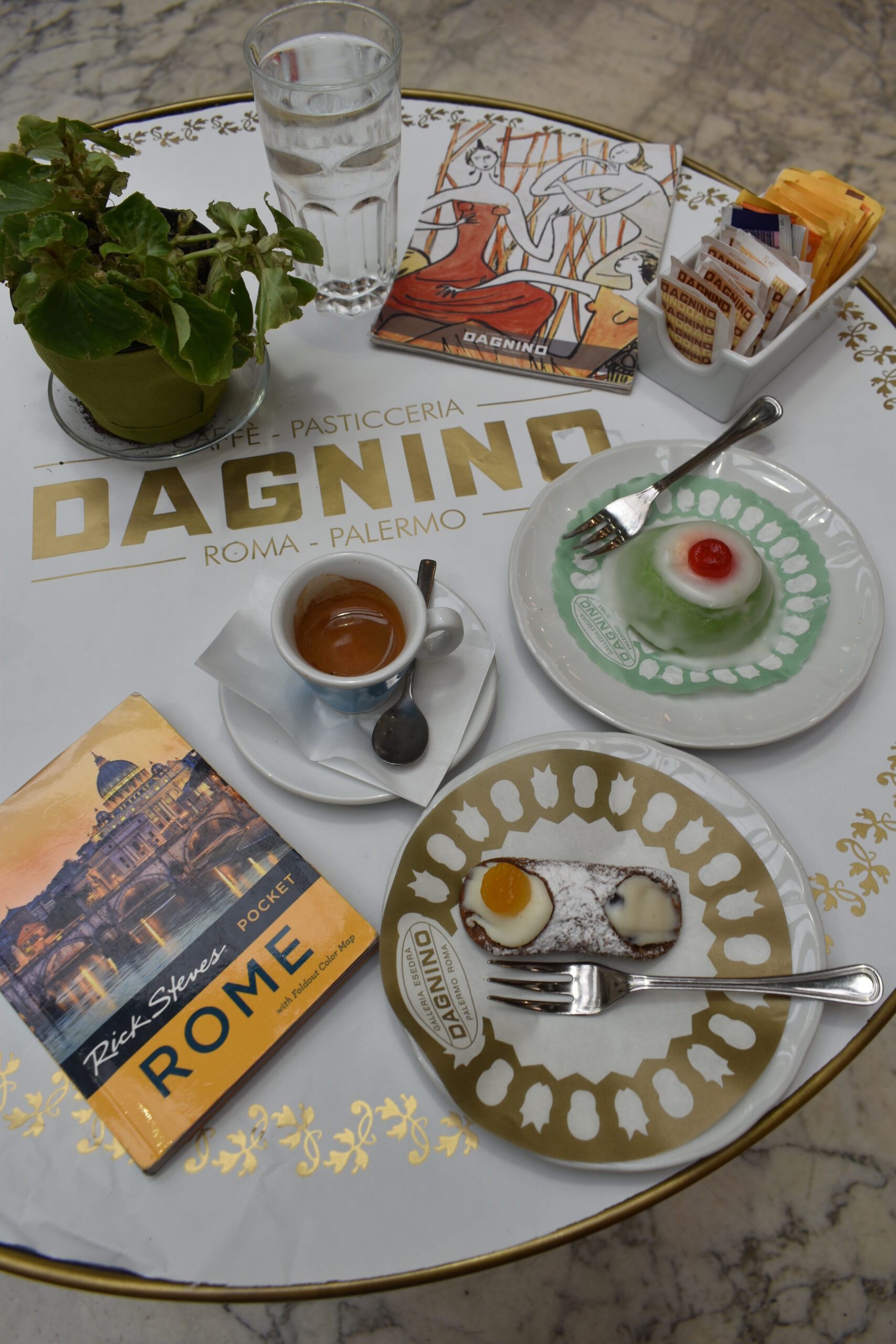Οι Ρωμαίοι αγαπούν τα σικελιάνικα γλυκά, οι Σικελιανοί αγαπούν τη ρικότα ακόμη και στα γλυκά και κάπως έτσι εσείς θα αγαπήσετε την εξίσου νόστιμη και ευπαρουσίαστη cassata siciliana ή μάλλον την cassatina, όπως ονομάζεται η ατομική εκδοχή του κλασσικού αυτού γλυκού. Αυτή τη φορά προορισμός σας είναι καφέ Dagnino με τη ρετρό ατμόσφαιρα, στη βόρεια πλευρά της πόλης, που αξίζει να επιλέξετε σαν στάση για καφέ κατά τη διάρκεια των επισκέψεών σας στα διάσημα αξιοθέατα που περιβάλλουν την Piazza della Republica. Απέχει μόλις λίγα βήματα από τη θεαματική εκκλησία Santa Maria degli Angeli και τις Θέρμες του Διοκλητιανού και παρότι βρίσκεται εντός της όχι ιδιαίτερα καλαίσθητης στοάς Galleria Esedra, θα αποζημιωθείτε από μία υπέροχη ποικιλία γλυκών που βασίζονται σε αυθεντικές συνταγές του ιταλικού νότου, τιμώντας τις ρίζες του Dagnino που ξεκίνησε από το Παλέρμο.