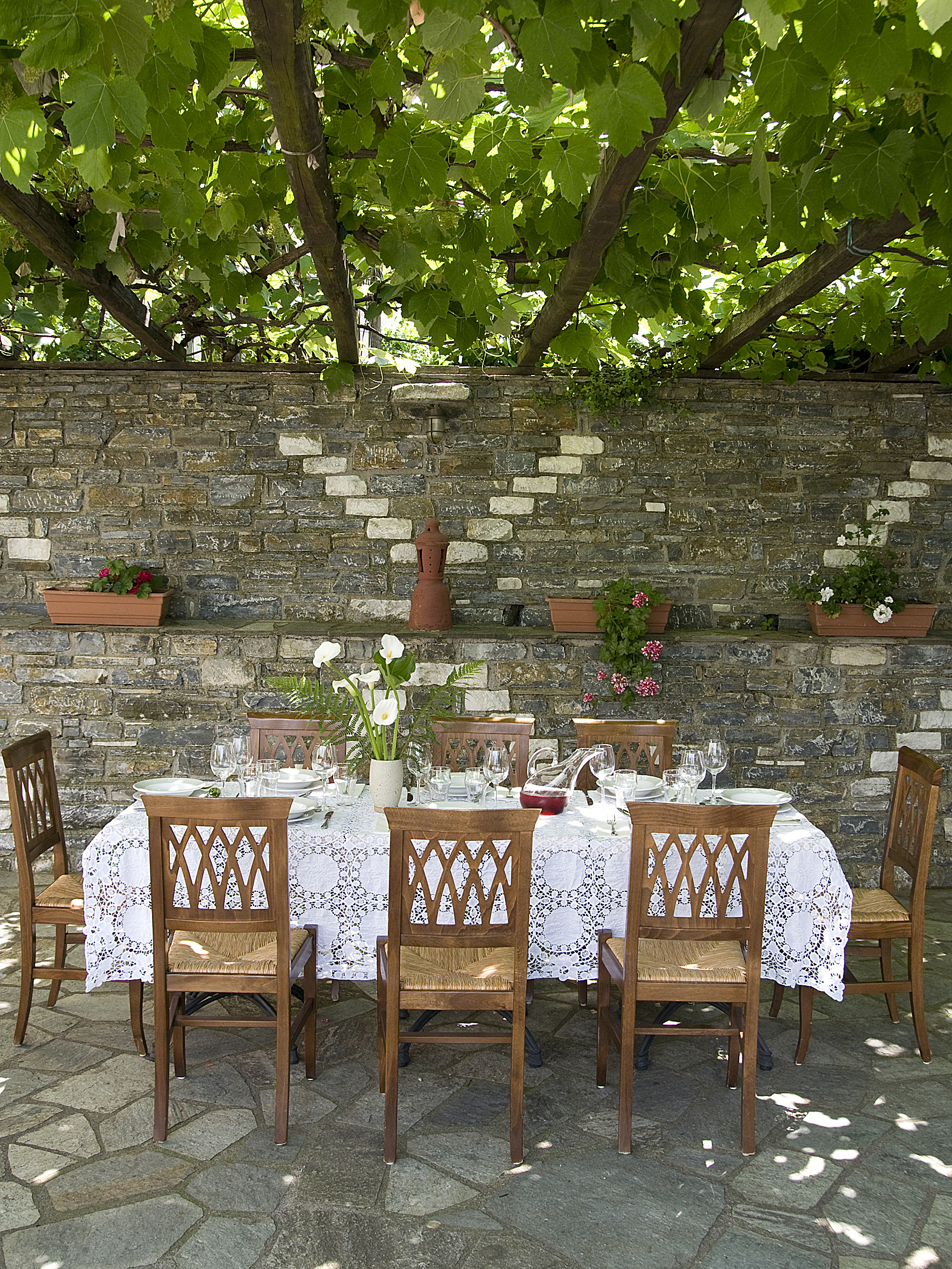 Ο καιροί όμως άλλαξαν και οι απαιτήσεις των επισκεπτών δεν θα μπορούσαν να περιοριστούν μόνο σε αυτά. Έτσι, η Λένα και ο Θοδωρής αποφάσισαν να χαράξουν τον δικό τους δρόμο και να αφήσουν το διαφορετικό αποτύπωμα τους στην πηλιωρίτκη φιλοξενία. Και μπορεί η κουζίνα διαρκώς να εξελίσσεται και να εμπλουτίζεται, κάποια πράγματα όμως, ευτυχώς παρέμειναν ίδια, όχι μόνο το όνομα της γιαγιάς Αλέκας στην ταμπέλα, αλλά και το μεράκι κι η αγάπη για τη μαγειρική, που φαίνονται σε κάθε πιάτο που ετοιμάζεται με τέτοιο ενθουσιασμό σαν να είναι η πρώτη φορά. Η ίδια φροντίδα διακρίνει και τις δύο σάλες του προσεγμένου εσωτερικού με το παλιό πέτρινο δάπεδο και το ξύλο να ντύνει ζεστά το χώρο, προσεκτικά διακοσμημένο με έργα τέχνης, από πίνακες και ψηφιδωτά έως φωτογραφίες και κεραμικά Ελλήνων καλλιτεχνών αλλά και το μουσικό χαλί κλασικής μουσικής που δημιουργεί μια ατμόσφαιρα γαλήνης και ηρεμίας. Η προσοχή στη λεπτομέρεια φαίνεται παντού, ακόμη και τα κεριά στα τραπέζια, φτιάχνονται από την ίδια την οικογένεια όπως και οι κεντητές στο χέρι πετσέτες- τέτοιο είναι το δημιουργικό τους μεράκι – και εν τέλει η ζεστασιά του χώρου αποζημιώνει στους μήνες που το κρύο δεν επιτρέπει να καθίσετε στη λουλουδιασμένη αυλή για να γευθείτε το ανοιξιάτικο ή το καλοκαιρινό μενού.