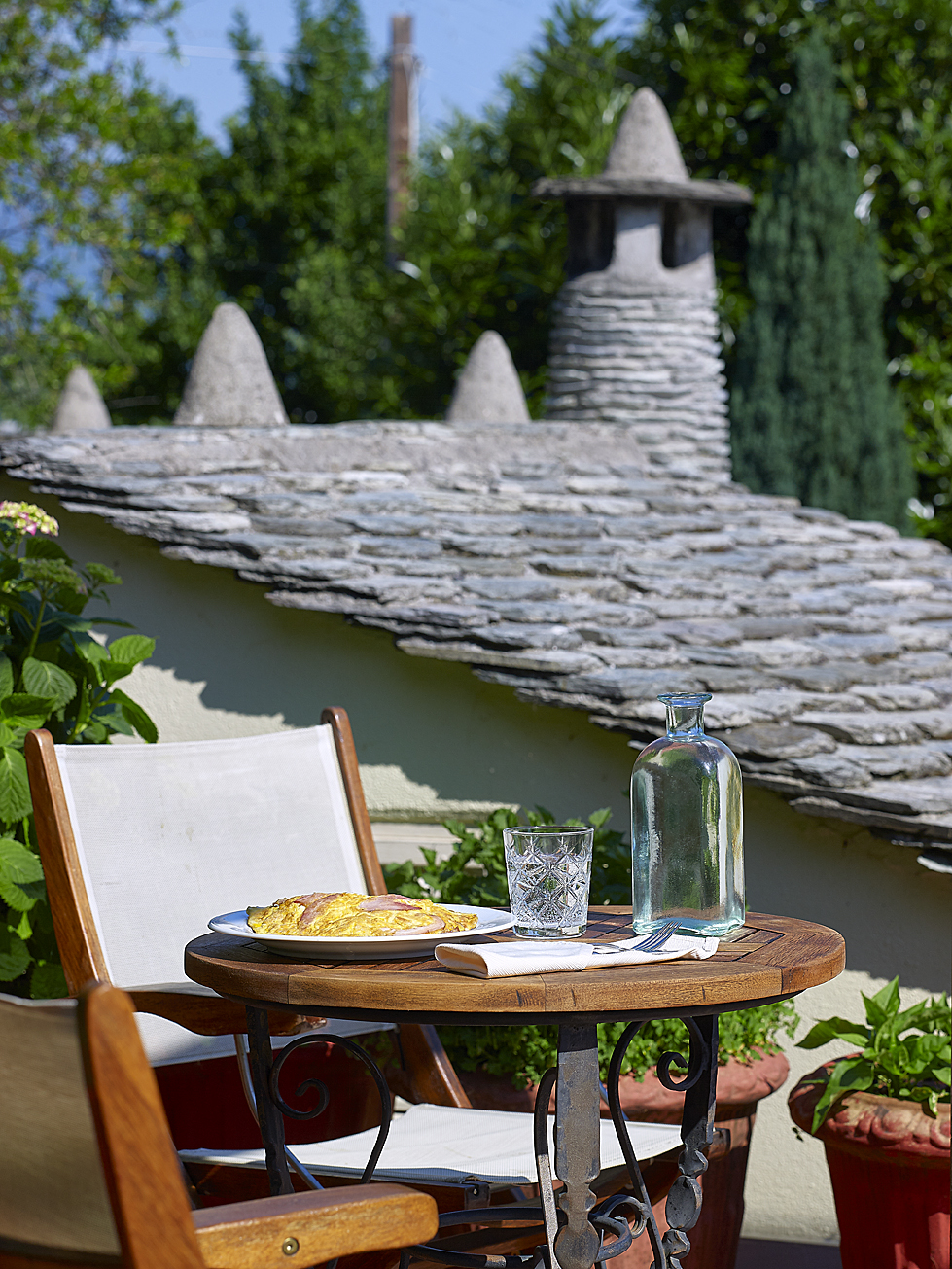 Σε κόκκινο κρασί βράζουν και τα αποξηραμένα σύκα από το κτήμα τους, που με δικά τους καρύδια κι άλλους ξηρούς καρπούς εμπλουτίζουν τη σαλάτα εποχής με τα πράσινα φυλλώδη λαχανικά. Σταθερή αξία αποτελεί και η μαρμελάδα από δύο ποικιλίες σύκων – άσπρα αποστολιάτικα και μαύρα βασιλικά – με τα πλούσια αρώματα μπαχαρικών, ένα πρωτότυπο συνοδευτικό για το ψητό ταλαγάνι.