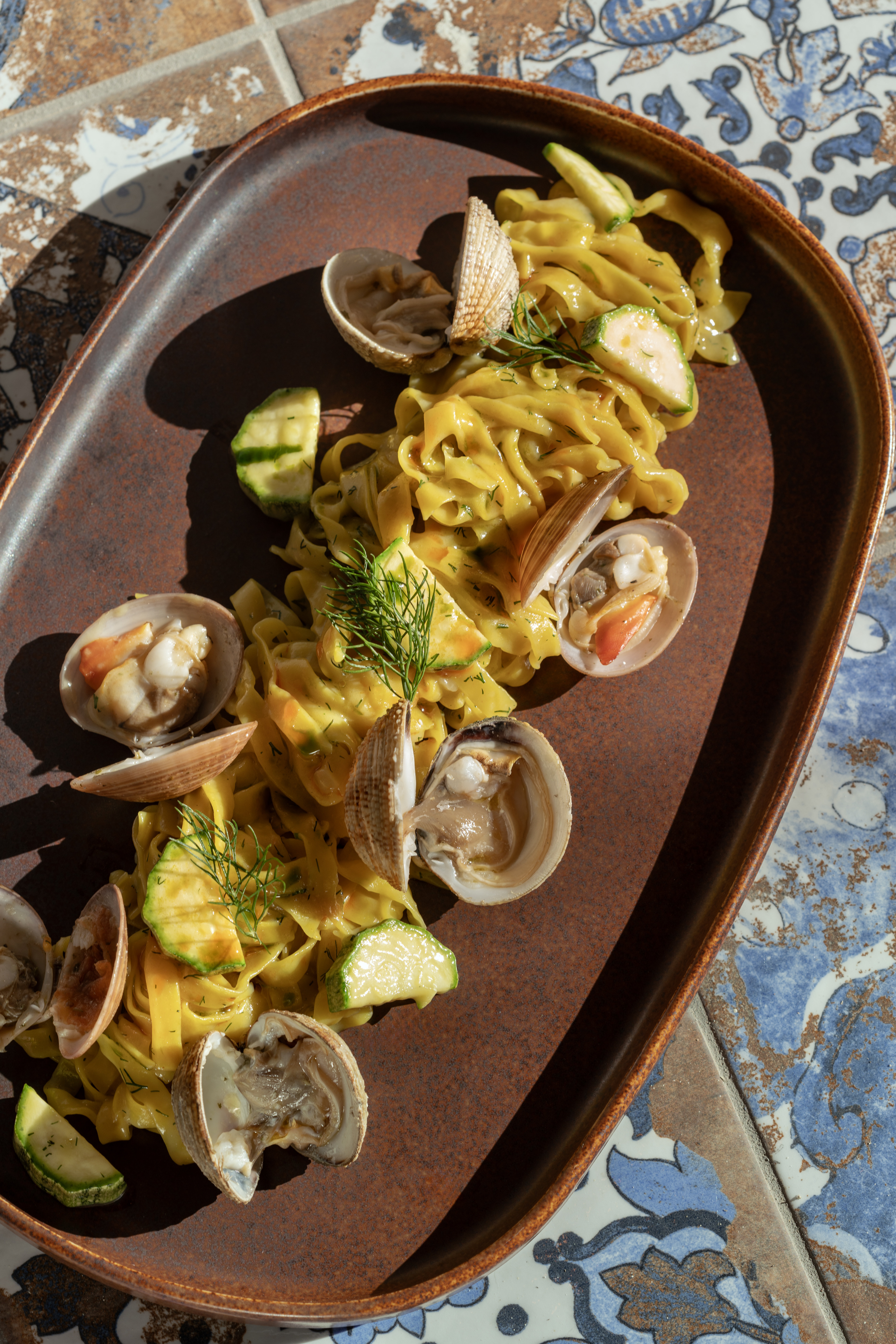 Το εστιατόριο προσφέρει μία εμπειρία γευσιγνωσίας, συνδυάζοντας την υψηλή γαστρονομία με εξαιρετικές πρώτες ύλες, υπό την οδηγία του διακεκριμένου chef Άκη Σουλτάνη, ο οποίος ενσωματώνει στα πιάτα του τα υλικά της Σύρου με ένα ασιατικό twist. Το μενού κυρίως ψαροφαγικό, περιλαμβάνει signature πιάτα όπως η ολόφρεσκη καψαλισμένη συναγρίδα sashimi και τα χειροποίητα spaghetti με ροφό, προσφέροντας μία γευστική συνέχεια ελληνικών και κυκλαδίτικων αρωμάτων με έναν γοητευτικό και αναπάντεχο twist. Η οινική προσέγγιση του εστιατορίου, υπό την καθοδήγηση του Κωσταντίνου Σιγανάκη συμπληρώνεται από avant garde cocktails του mixologist Ζάχου Ελευθερίου, προσφέροντας μία ολοκληρωμένη εμπειρία γαστρονομίας και απόλαυσης.