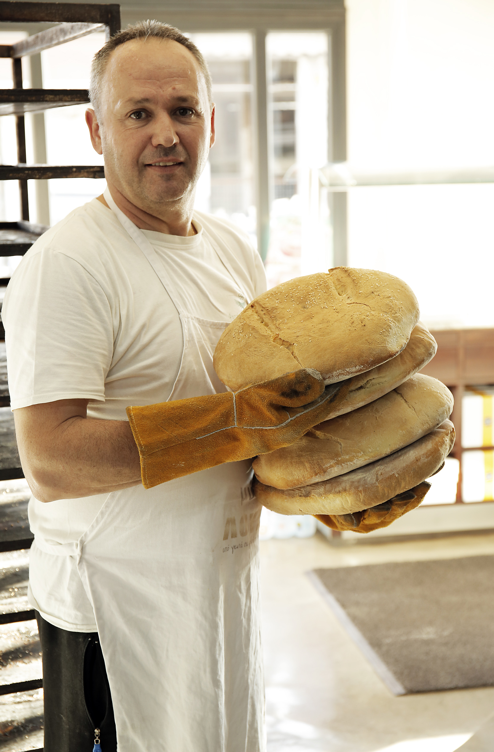 Η μυρωδιά του φρεσκοψημένου ψωμιού φτάνει στο δρόμο από νωρίς το πρωί, όταν ο Σωτήρης Μανάβης, μαζί με τους συνεργάτες του, ξεκινά την παραγωγή. Το χωριάτικο ψωμί με το προζύμι, ψημένο στον ξυλόφουρνο, είναι το best seller κάνοντας, πολλές φορές, την παράκαμψη από την Εθνική Οδό να μοιάζει επιτακτική. Δοκιμάσαμε, μεταξύ άλλων, νόστιμα τραγανά μουστοκούλουρα, κουλούρια, αλλά και ατομικά ψωμάκια για sandwich.