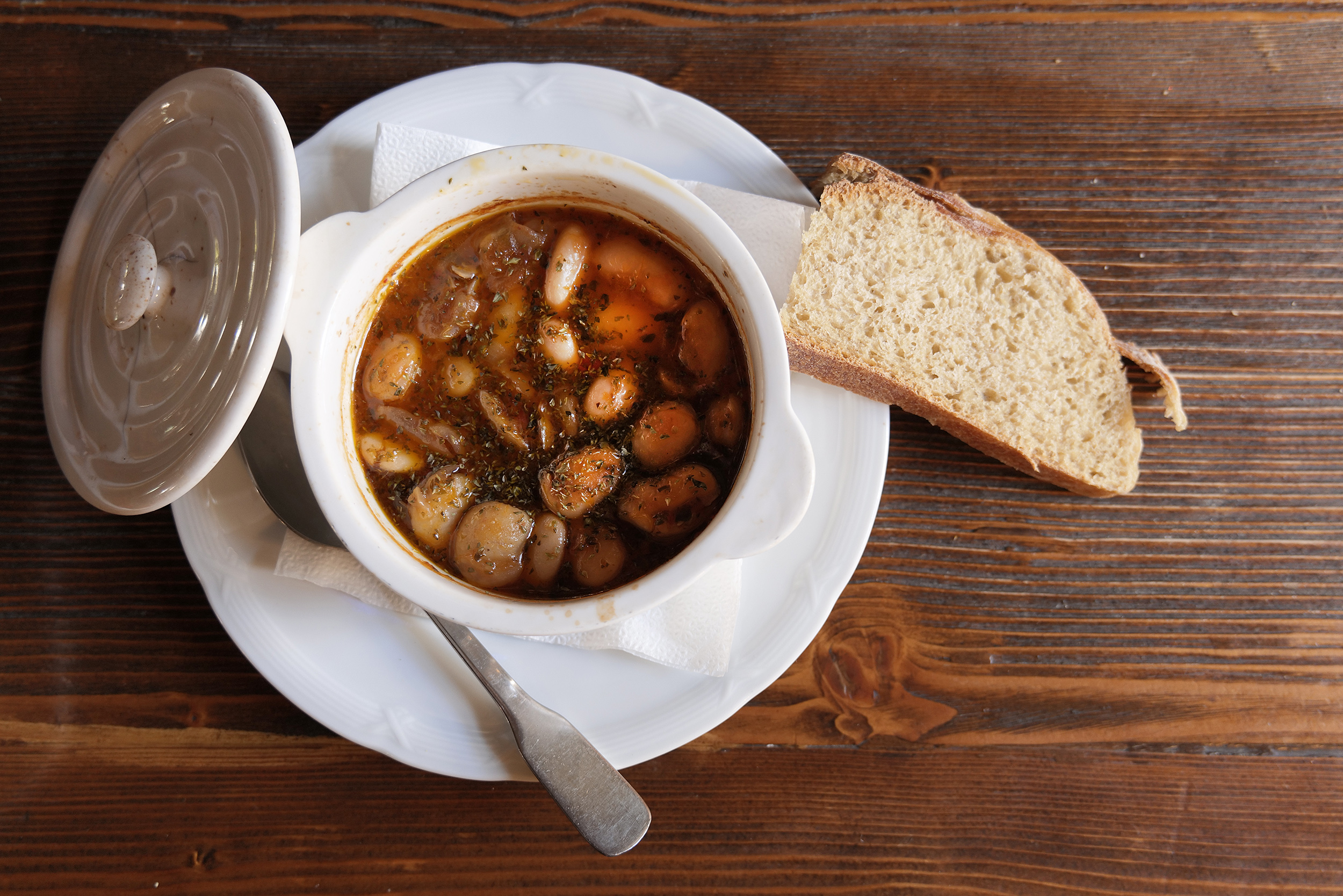 Η είσοδος στην περιπέτεια του Ολύμπου, για πεζοπόρους, ορειβάτες, αλπινιστές, από την ανατολική πλευρά του βουνού, ξεκινά, συνήθως από αυτό το σημείο σε υψόμετρο 1100 μέτρων. Η πανέμορφη βουνίσια ξύλινη κατασκευή, ανάμεσα στις κάθετες, κατάφυτες πλαγιές, τις διαρκείς εναλλαγές του καιρού και την ασταμάτητη ροή επισκεπτών από όλον τον κόσμο, δε θα είχε ιδιαίτερο νόημα, κατά τη γνώμη μου, αν δεν σέρβιρε απίθανο φαγητό για αυτούς που ξεκινούν για την κορυφή, αυτούς που επιστρέφουν από τις πλαγιές αλλά και εκείνους που έρχονται μόνο για αυτό ακριβώς. Το φαγητό.