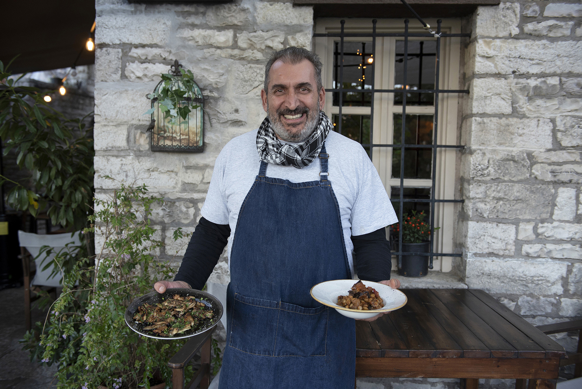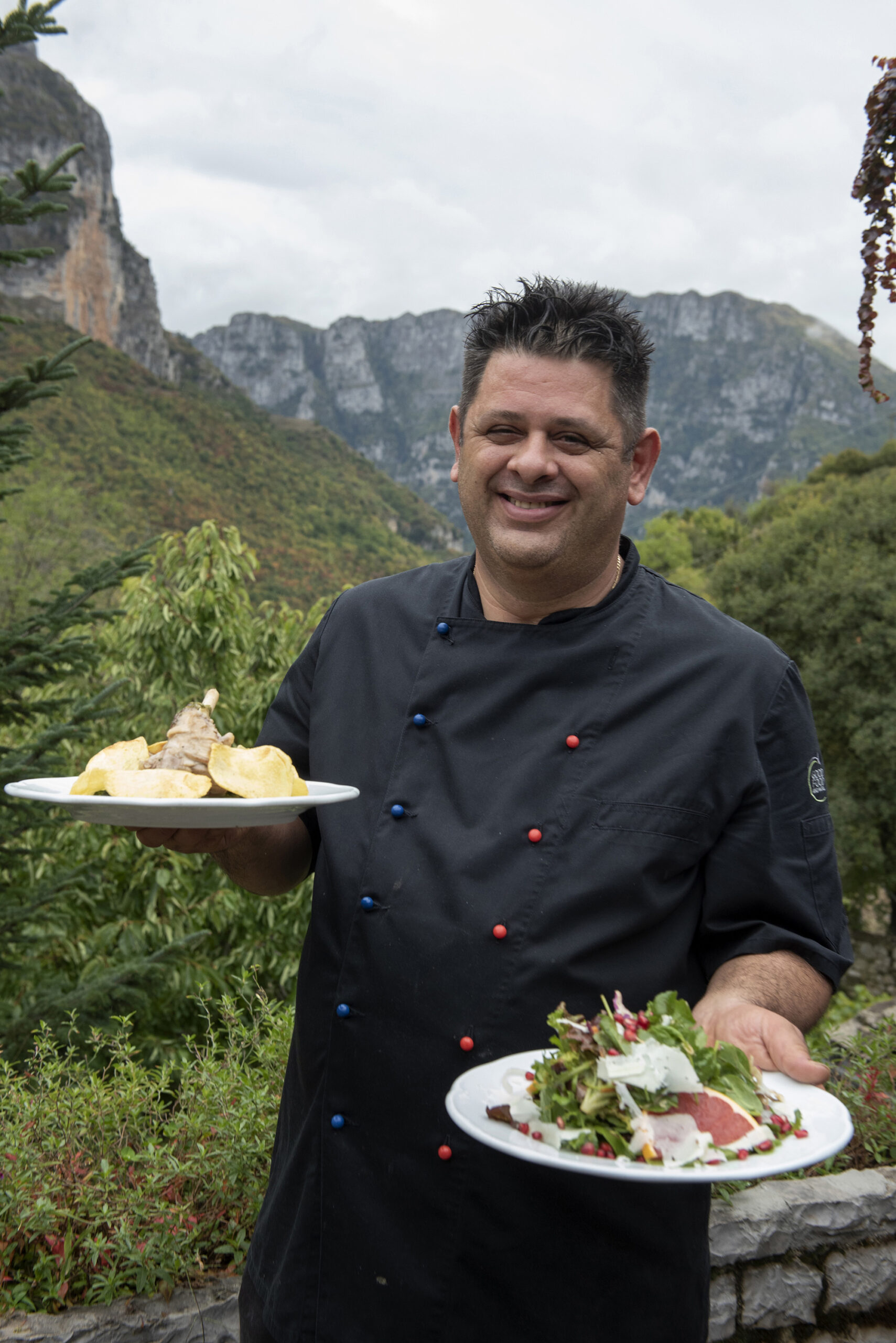 Παράδοση και πειραγμένα πιάτα στήνουν χορό και ξεδιπλώνουν το ταλέντο του. Μπερδεύει τα ρεβίθια με τις μελιτζάνες, φτιάχνοντας μία μοναδική ισορροπημένη γεύση, φτιάχνει κοκκινιστούς κεφτέδες, αφράτους ανάλαφρους μέσα σε μία εξαιρετική σάλτσα ντομάτας. Σερβίρει κατσικάκι στο φούρνο με πατάτες και φυσικά ποικιλία από πίτες με κορυφαία την τυρόπιτα και την παραδοσιακή ηπειρώτικη ζυμαρόπιτα.
