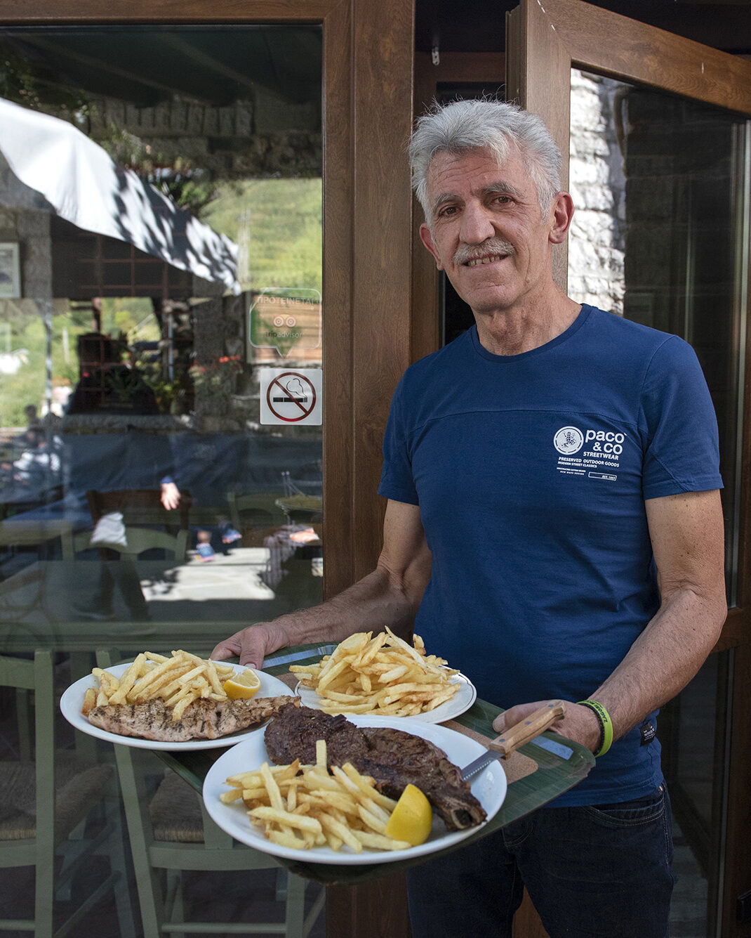 Πέρα από τις πίτες, πεντανόστιμα πιάτα, οι μελιτζάνες φούρνου με κοτόπουλο και γραβιέρα και οι γίγαντες με χόρτα, που φτιάχνονται με οκτώ είδη άγριων χόρτων, δημιουργώντας μία μοναδική γεύση που θα τη θυμάστε για καιρό. Στα ψητά στη σχάρα είναι ο Αλέκος, ο σύζυγος της Βιργινίας, που ξέρει από κρέας και ψήνει νόστιμα ζουμερά παϊδάκια, και αφράτο μπιφτέκι με 100% μοσχαρίσιο κιμά. Λίγα μέτρα πιο κάτω, στην πλατεία του οικισμού, θα συναντήσετε το Μοντάζα, στο οποίο θα βρείτε νόστιμα κρέατα και σαλάτες, και θα μπορέσετε να τα συνοδεύσετε ιδανικά με κρασιά. Δοκιμάστε ένα καλοψημένο rib-eye, ή ακόμη και μια ιδανικά ψημένη και γευστική tomahawk. Ρωτήστε για τα διαθέσιμα κρέατα της ημέρας και βρείτε το χρόνο για ένα ήρεμο και χαλαρό γεύμα.