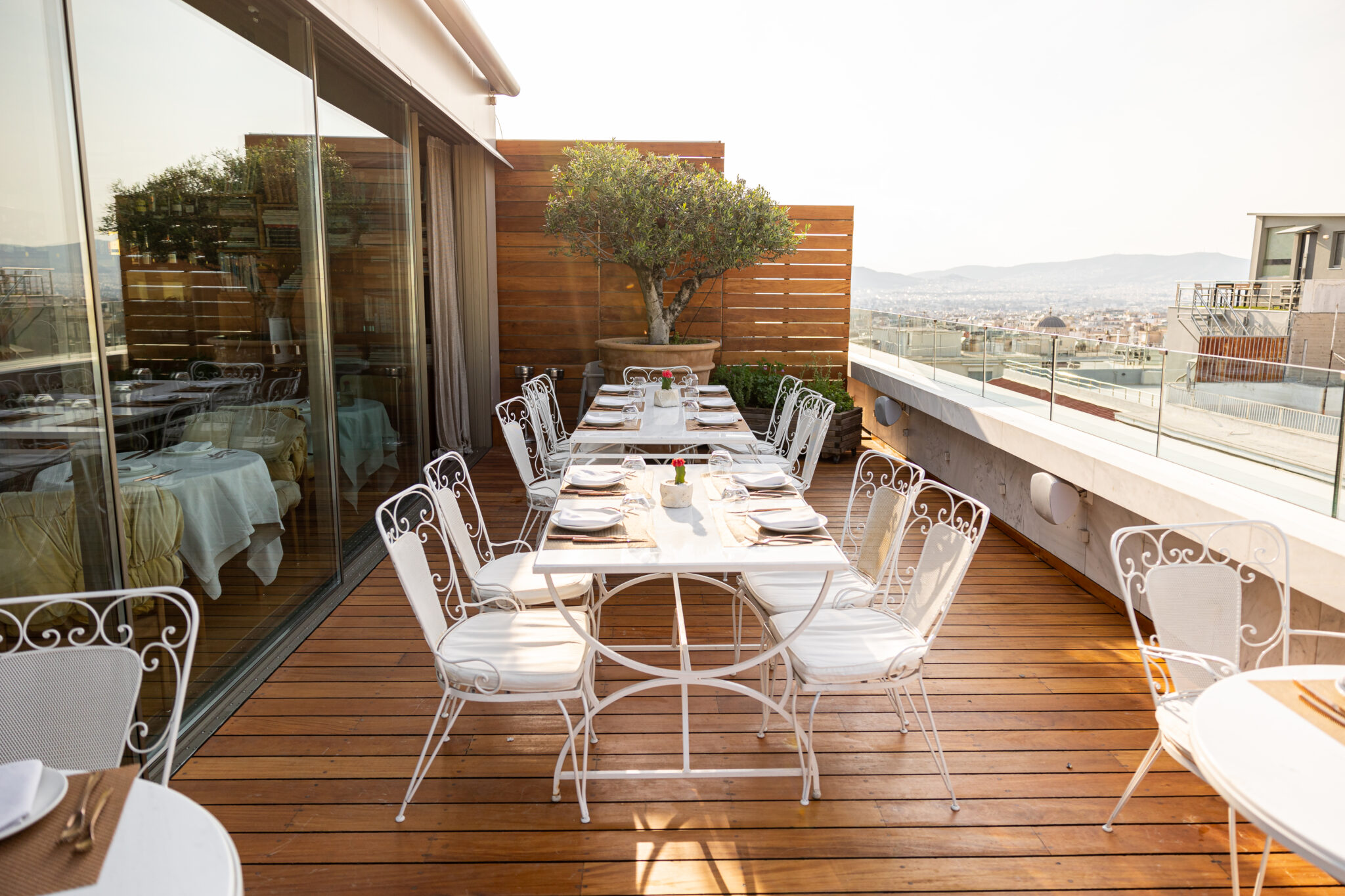 Από τον τρίτο όροφο, όπου βρίσκεται το Rooftop του κομψοτάτου ξενοδοχείου, ακριβώς απέναντι από την πλατεία μπροστά στη Μητρόπολη, η οπτική επαφή με την Ακρόπολη είναι συναρπαστική. Στα όρια της Πλάκας, εντάσσεται και «συνομιλεί» με το ιστορικό αστικό τοπίο. Το ξενοδοχείο εικάζεται πως είναι έργο του διάσημου Γερμανού αρχιτέκτονα Ερνέστου Τσίλλερ και έχει επανασχεδιαστεί υποδειγματικά από το αρχιτεκτονικό γραφείο Struct Architecture (Κώστας Βλαχογιάννης και Θάνος Μπαμπανέλος). Σε γαστρονομικό επίπεδο, o διάσημος executive chef του ξενοδοχείου, Παύλος Κυριάκης (αστέρι Michelin), επιμελείται και το brunch.