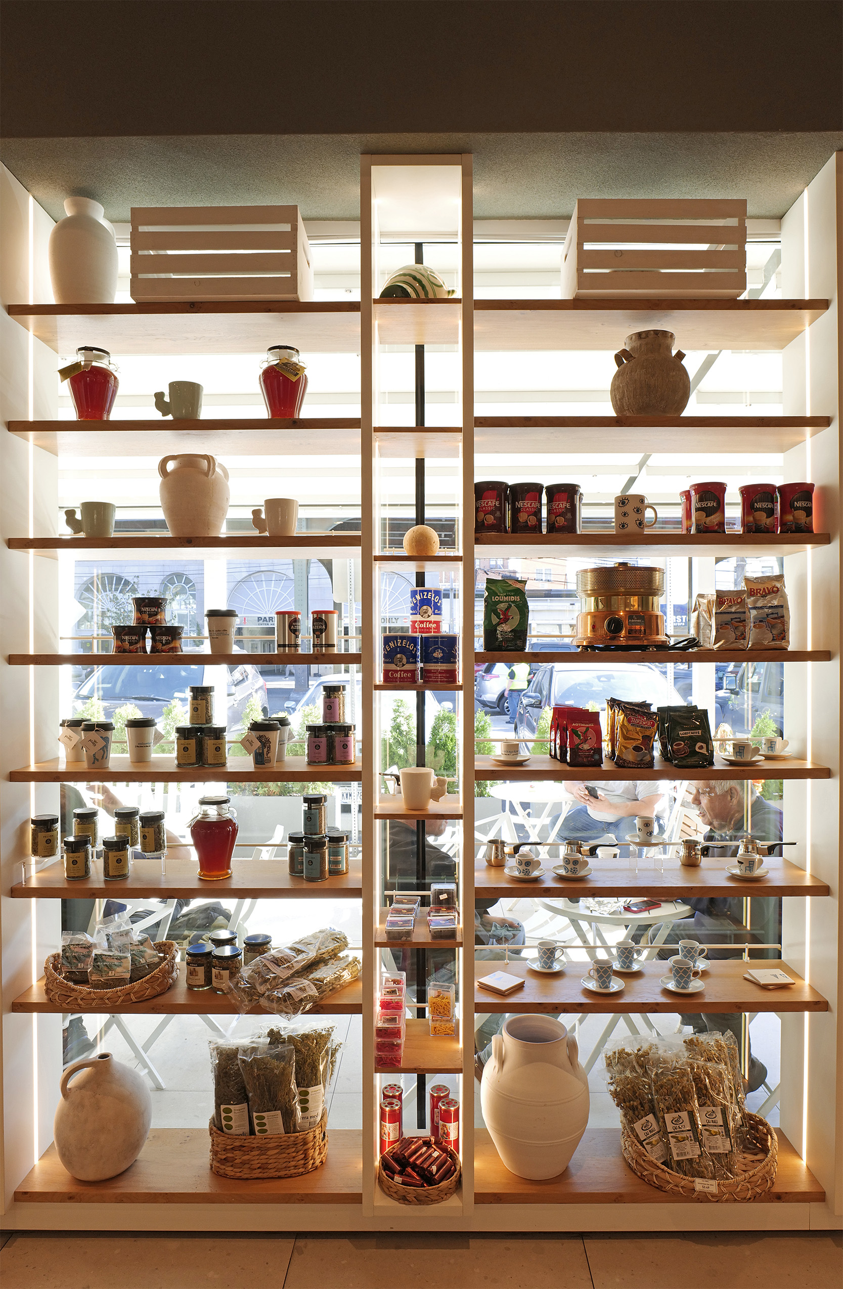 Η Ξανθή με ξεναγεί με χαρά στη μικρή κουζίνα όπου ετοιμάζεται να αβγοκόψει τη σημερινή κοτόσουπα, περιγράφοντάς μου την καθημερινότητά της. Το market, έχοντας πάνω από 1200 κωδικούς σε διαφορετικά προϊόντα, από παξιμάδια, μπαχαρικά, ελαιόλαδα premium, σάλτσες, κατεψυγμένα λαχανικά, 14 είδη τυριού φέτας, 12 διαφορετικά είδη ελιών και άλλων πολλών, δίνει σε κάποια σημεία του την αίσθηση ότι εδώ μπορείς να βρεις κάποια πράγματα πιο εύκολα από την Ελλάδα. Οι τέσσερις συνέταιροι δηλώνουν ανοιχτοί σε νέα προϊόντα και η αναζήτησή τους είναι διαρκής. Αυτήν την περίοδο ετοιμάζεται και μια επέκταση προς το οινικό κομμάτι και η γωνιά του μέσα στο πολύ όμορφο και μοντέρνο κατάστημα είναι ήδη προμελετημένη.