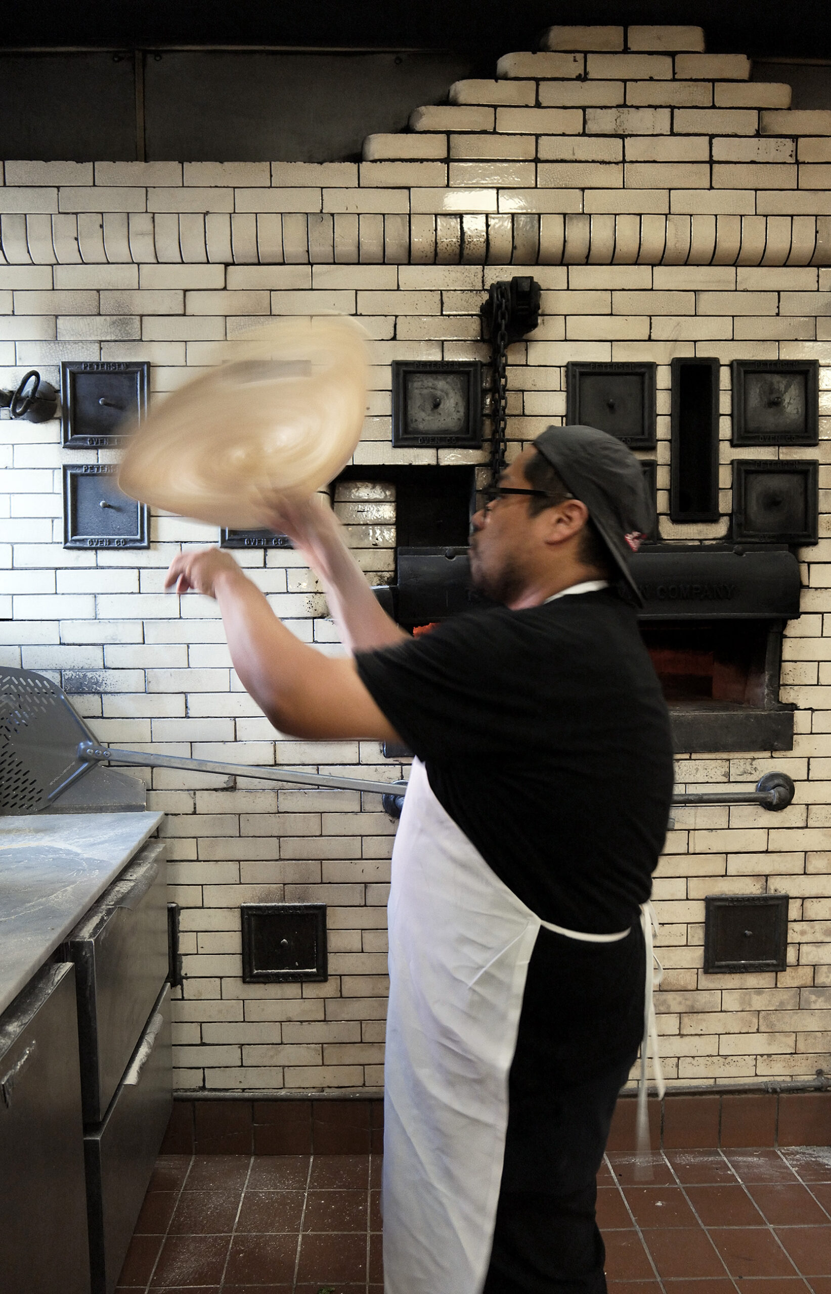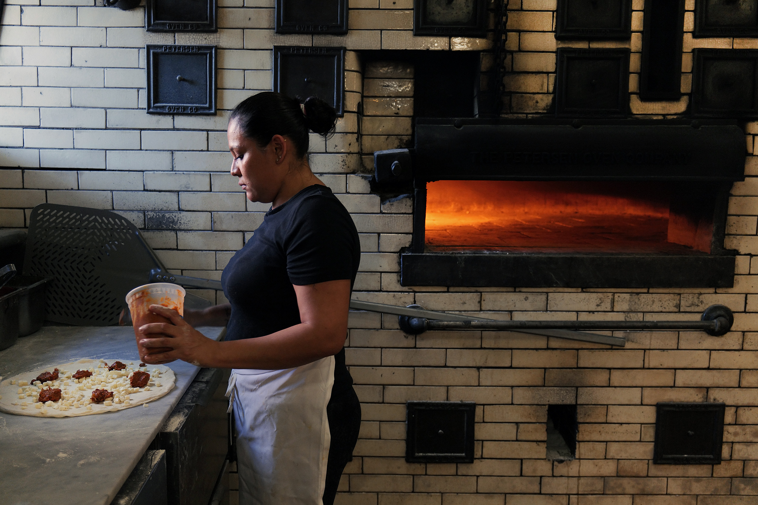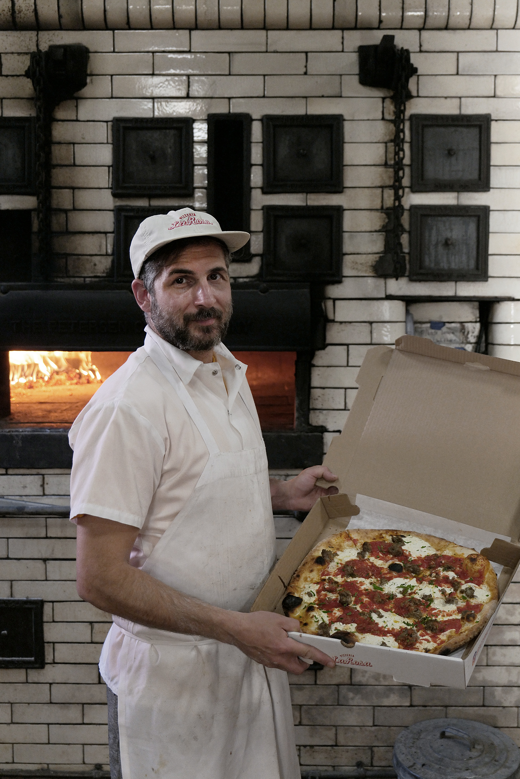 Κάποιες κουβέντες στα ιταλικά ανάμεσα στους εργαζόμενους αλλά και στα ισπανικά από τους, απολύτως απαραίτητους εργαζόμενους στην εστίαση, συμπληρώνουν τη χαλαρή διάθεση στο χώρο. Η κουζίνα στο κέντρο του μαγαζιού φανερώνει και εξομολογείται την ιστορία του. Ο τοίχος με τα μπεζ πλακάκια από το πάτωμα μέχρι το ταβάνι φιλοξενεί τον μεγάλο ξυλόφουρνο, ο οποίος πρωτολειτούργησε το 1926 ως φούρνος ψωμιού. Ο Matt (Matthew) DiGesu, ιδρυτής και ιδιοκτήτης του «La Rosa» εδώ και 7 χρόνια μου εξηγεί πως, όταν μπήκε πρώτη φορά στο χώρο, δύο πράγματα του έκαναν θετική εντύπωση. Η μόνιμη μυρωδιά του ψημένου ψωμιού η οποία είχε ποτίσει τους τοίχους από ψησίματα ενός αιώνα και ο χειροποίητος, τούβλινος φούρνος, φτιαγμένος με τα καλύτερα πυρίμαχα υλικά της εποχής που φτιάχτηκε. Το μέγεθός του ήταν πολύ μεγάλο για τα σχέδια του Matt και αναγκάστηκε να γκρεμίσει περίπου το μισό φούρνο, αφήνοντας την πρόσοψη αναλλοίωτη και συλλέγοντας τα υπόλοιπα πυρίμαχα τούβλα, τα οποία αρκούν για το χτίσιμο ακόμη ενός νέου φούρνου, κάπου αλλού, ίσως, όπως μου εξομολογείται.
