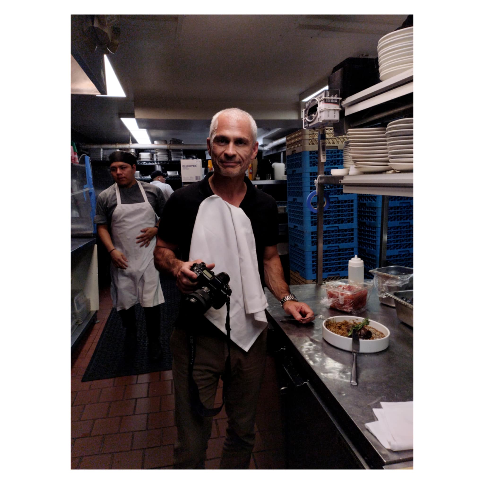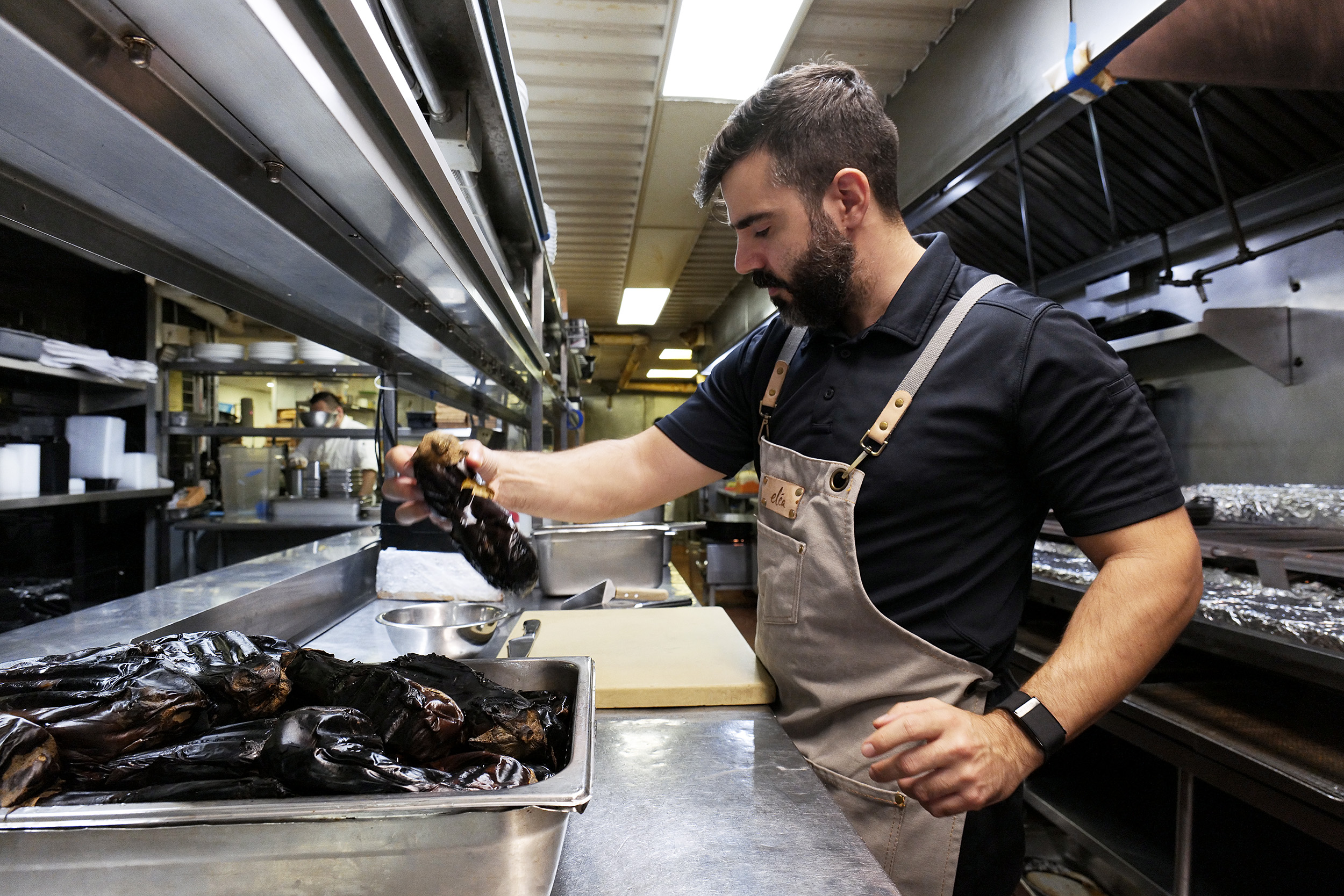 Περίπου 25 άτομα βρίσκονται ήδη στην ευρύχωρη κουζίνα, ο καθένας αυστηρά στο πόστο του, στη συγκεκριμένη εργασία που του έχει ανατεθεί και, εκτός από κάποια σποραδικά πειράγματα, επικρατεί ευλαβική πειθαρχία. Με καταγωγή από κάθε γωνιά του πλανήτη αλλά, κυρίως από χώρες της Λατινικής Αμερικής, αντιλαμβάνεται κανείς αμέσως σε ποιους ανθρώπους βασίζεται η γαστρονομία και η εστίαση γενικότερα στη Νέα Υόρκη. Η σκέψη «χωρίς αυτούς τι θα γινόταν;» δημιουργεί μια αυτόματη ανατριχίλα. Στην κουζίνα έχει επίσης έρθει να βοηθήσει σήμερα ο Διογένης Μαυροφρύδης, pastry chef σε μια άλλη επιχείρηση των ίδιων ιδιοκτητών. Με τον Άκη μιλάμε και φωτογραφίζω όσο ετοιμάζονται οι διάφοροι ζωμοί, οι σάλτσες, όσο οργανώνονται οι μερίδες για το βράδυ αλλά και τα πιάτα που θα φωτογραφίσουμε σήμερα. Περίπου 450 κουβέρ καλύπτει ημερησίως το «Elea», από θαμώνες, κατοίκους της γειτονιάς οι οποίοι δειπνούν μέχρι και 5 φορές την εβδομάδα εδώ, μέχρι επώνυμους της μουσικής βιομηχανίας, ηθοποιούς, φυσικά, οι οποίοι αναζητούν λίγη ανωνυμία σε αυτό το σπιτικό περιβάλλον με το μαμαδίστικο φαγητό, αλλά και γνωστούς παγκοσμίως δημοσιογράφους.
