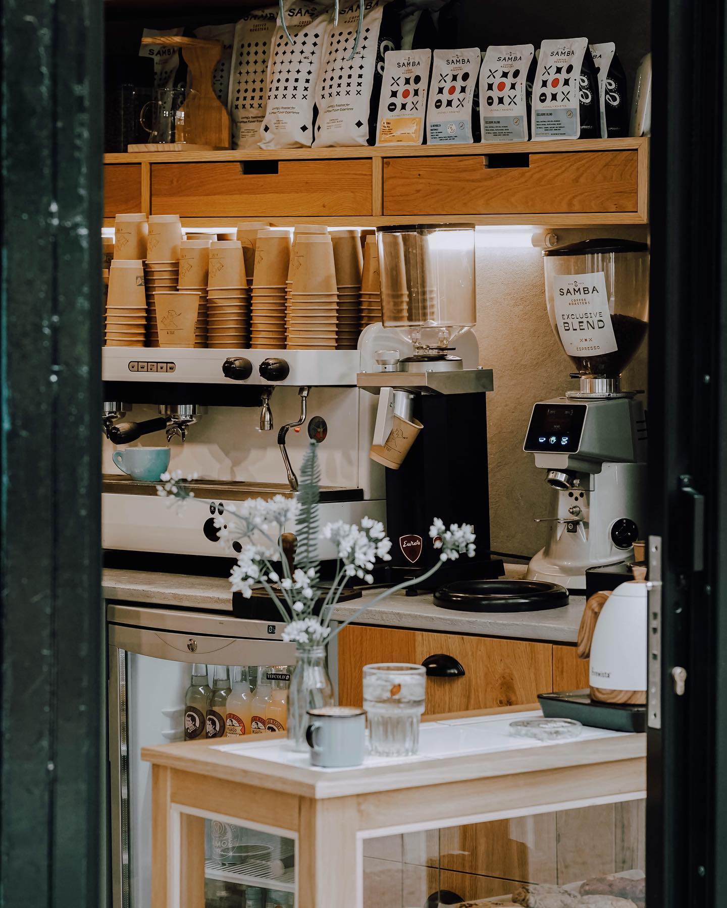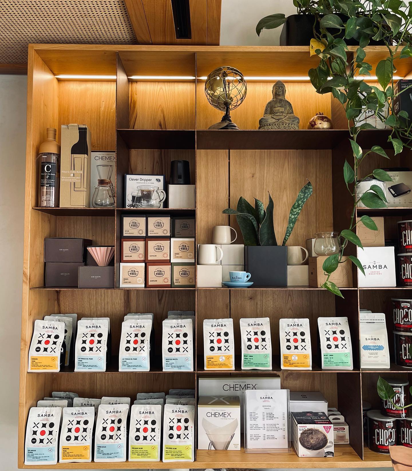 Διακοσμημένο με απλές γραμμές, λευκό φόντο και αρκετές ξύλινες επιφάνειες, βρίσκεται στην γωνία της Σόλωνος με την Λυκαβηττού στο Κολωνάκι και είναι το coffee shop της ελληνικής εταιρίας «Samba Coffee Roasters». Κοινώς, είναι ό,τι πρέπει για να σταματήσετε στα γρήγορα να απολαύσετε ένα φλιτζάνι espresso ή να πάρετε στο χέρι έναν καφέ φίλτρου ή έναν cappuccino. Όπως είναι φυσικό, διαθέτει όλή την γκάμα των καφέδων της εταιρείας. Έτσι, για παράδειγμα, μπορεί να βρείτε μια «ισορροπημένη» Βραζιλία, μιας πιο φρουτώδη Γουατεμάλα, μια κάπως πιο όξινη Αιθιοπία ή ότι άλλο φιλοξενούν εκείνη την στιγμή. Αυτό που σίγουρα θα βρείτε στους μύλους του είναι το blend ροής από καφέδες από την Λατινική Αμερική.