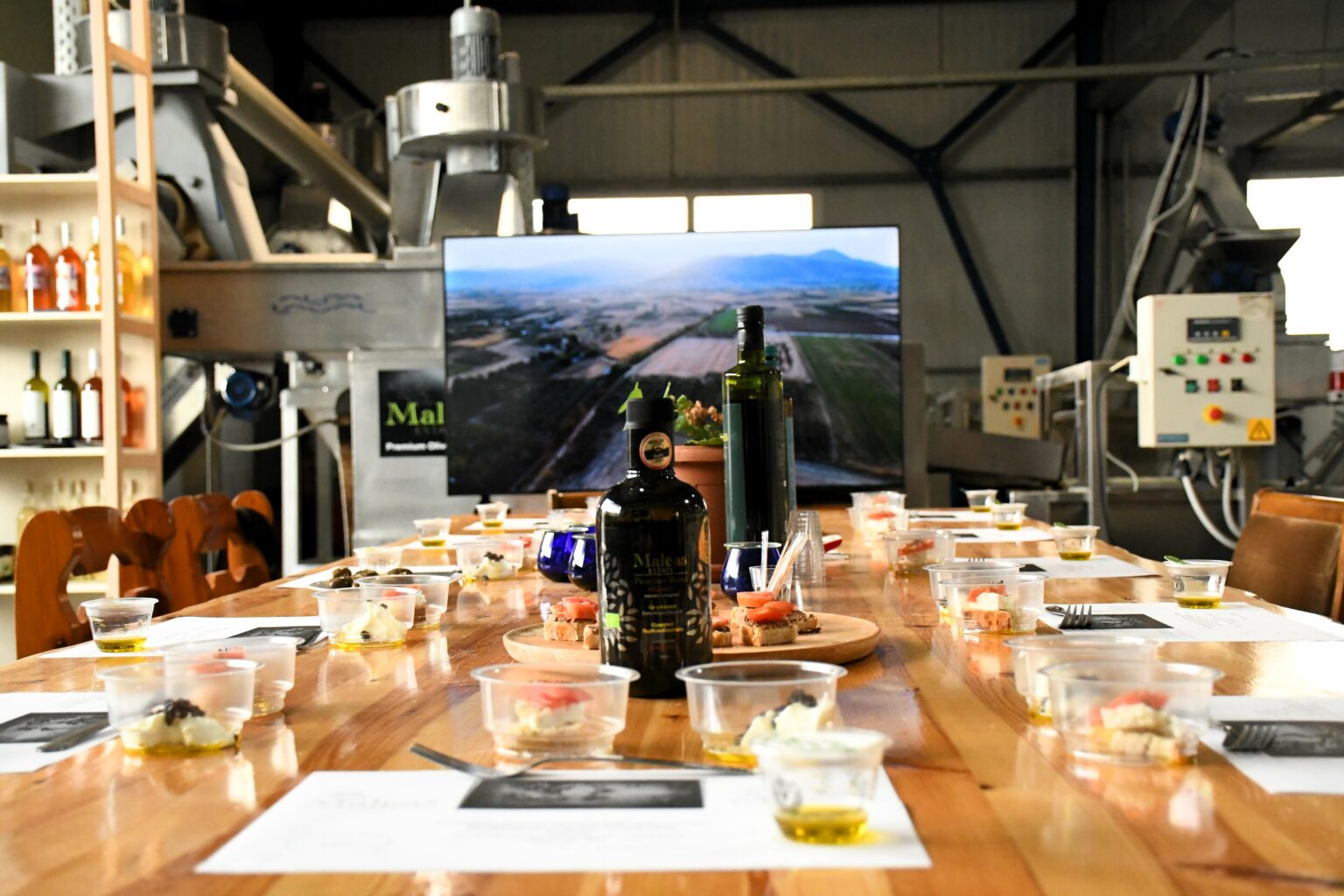 Στη συνέχεια, κινηθήκαμε προς το Δοξάτο, 11,5 χλμ. νοτιοανατολικά της Δράμας, όπου είδαμε ότι η αγάπη για την παραγωγή ελαιόλαδου μπορεί να φέρει εξαιρετικά αποτελέσματα. Ο λόγος για το βιολογικό Ελαιοτριβείο Μαλέας. Μια οικογενειακή επιχείρηση τρίτης γενιάς, που συνδυάζει παράδοση και σύγχρονες τεχνολογίες.