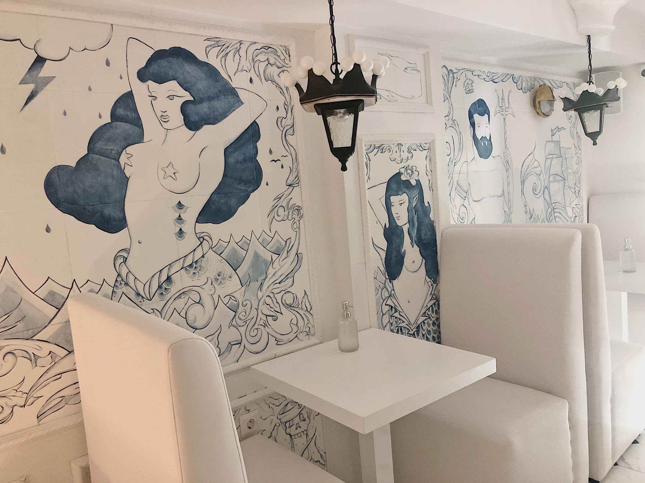 Το μέγεθος του χώρου δεν είναι τυχαίο, ούτε η διακόσμηση και η αισθητική του. Ο μικρός χώρος προωθεί το δέσιμο των ανθρώπων ενώ τα μοτίβα Γερμανικής Αναγέννησης στο ισόγειο και οι τοιχογραφίες με τα τατουάζ των ναυτικών στο πατάρι είναι αποτέλεσμα της εφαρμοσμένης αισθητικής που συναντάμε στα μαγαζιά της Φανής Σπυριδάκη.
