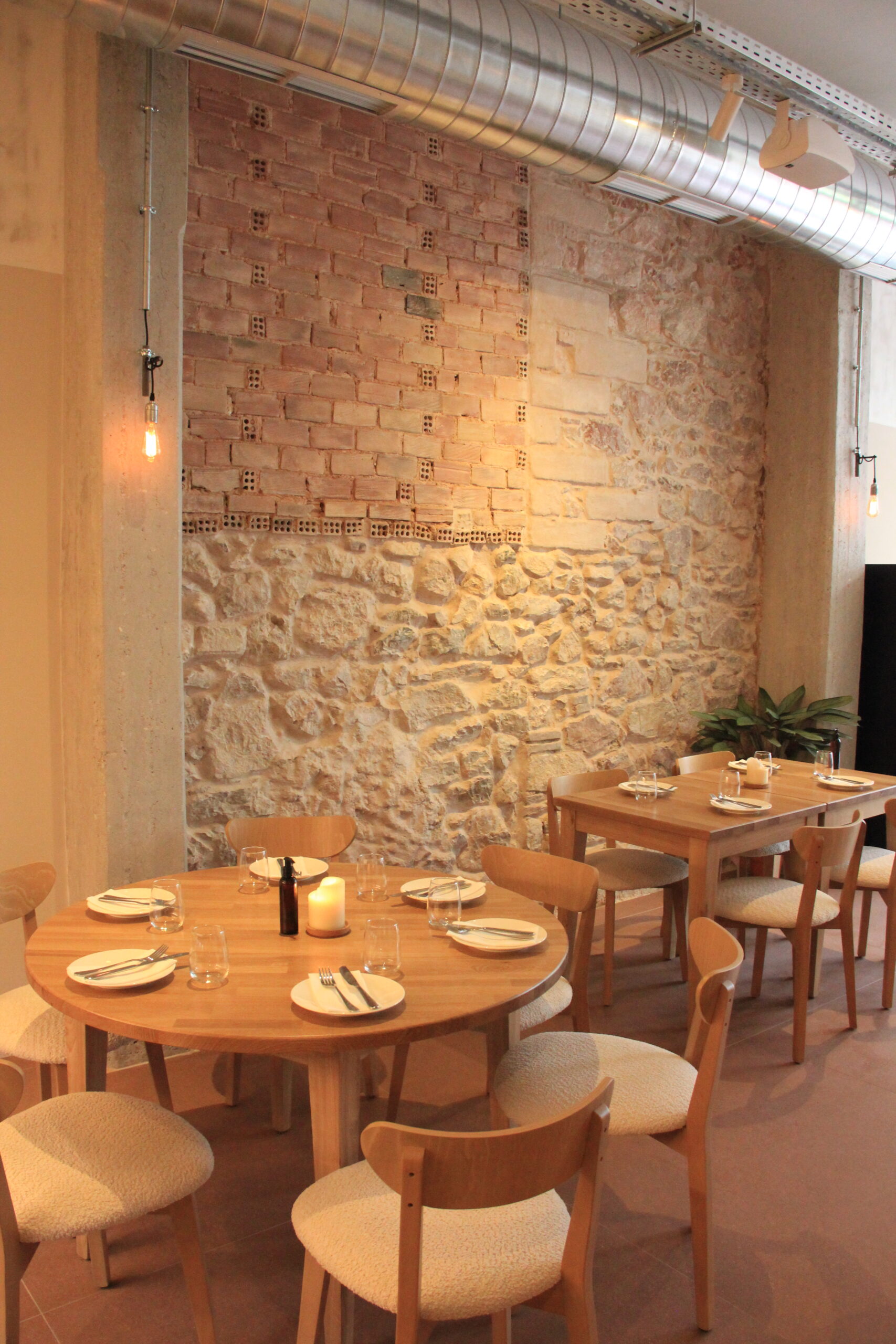 Στον ήσυχο πεζόδρομο της Αγίας Βαρβάρας, οι δύο ηθικοί αυτουργοί, βρήκαν μια παλιά φαρμακαποθήκη και τη μετέτρεψαν σε ένα χώρο μίνιμαλ αισθητικής με industrial και urban στοιχεία. Το μπετόν στις γυμνές κολόνες, τα τούβλα και οι πέτρες σε ορισμένα σημεία του τοίχου, το ατσάλι στους αεραγωγούς και το απαλό ξύλο στα τραπεζοκαθίσματα δένουν με απόλυτη αρμονία και μας καλούν να χαλαρώσουμε.