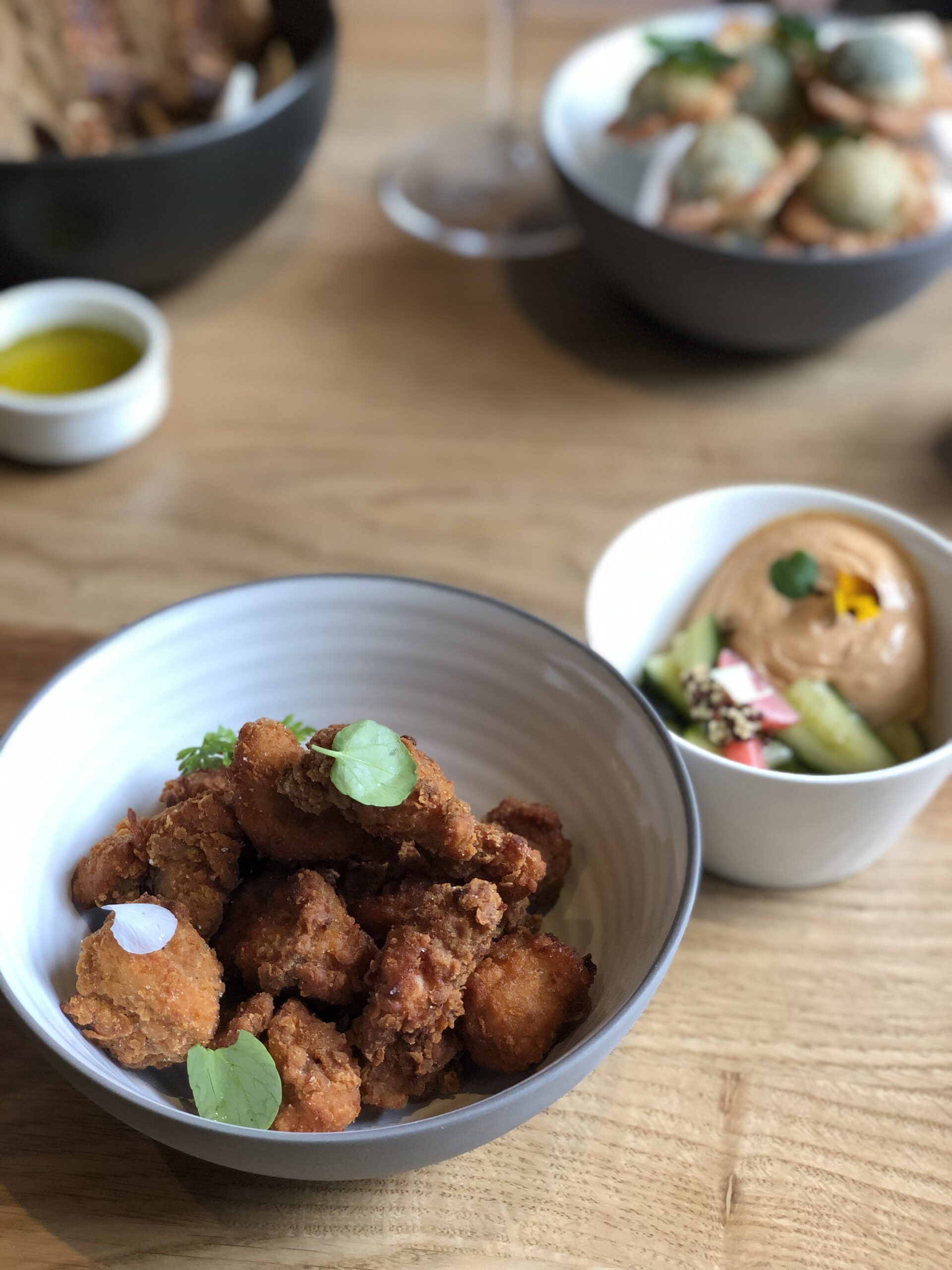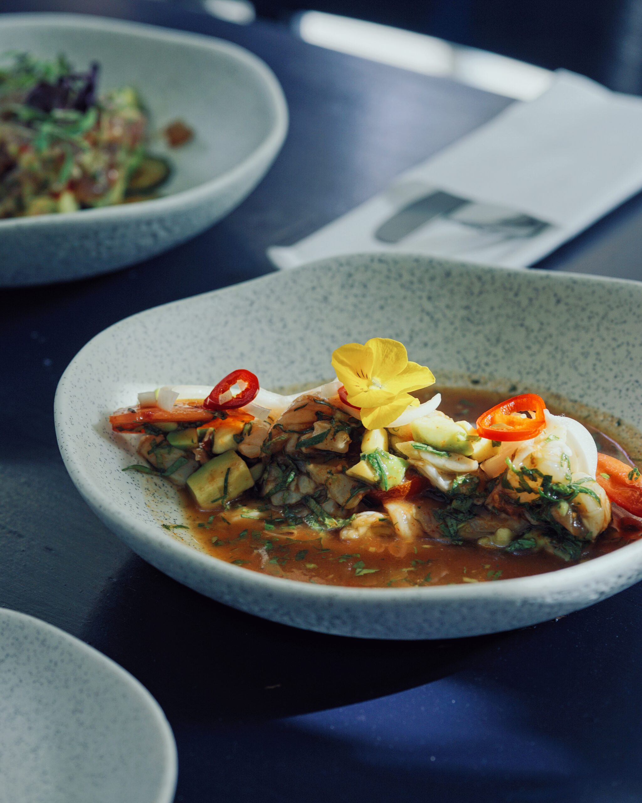 Υπεύθυνοι για την εκτέλεση του μενού είναι ο Γιάννης Αμπελιώτης και ο Αντώνης Λίτινας, οι οποίοι προσθέτουν και τις δικές τους πινελιές στα πιάτα. «Στο μενού έχουμε παντρέψει στοιχεία από την Ελληνική, την Ιαπωνική, την Περουβιανή και την Πορτογαλική κουζίνα. Προσωπικά μου αρέσουν πολύ οι συνδυασμοί διάφορων γεύσεων και θέλω να υπάρχουν αρώματα και εντάσεις στα πιάτα μου» λέει ο Γιάννης ο οποίος είναι και ο δημιουργός του oyster shot –σφηνάκι με τζιν, χυμό από αγγούρι και ξινόμηλο, τσίλι, δυόσμο και λάιμ, με ένα γαλλικό στρείδι να βρίσκεται στην κορυφή του ποτηριού.