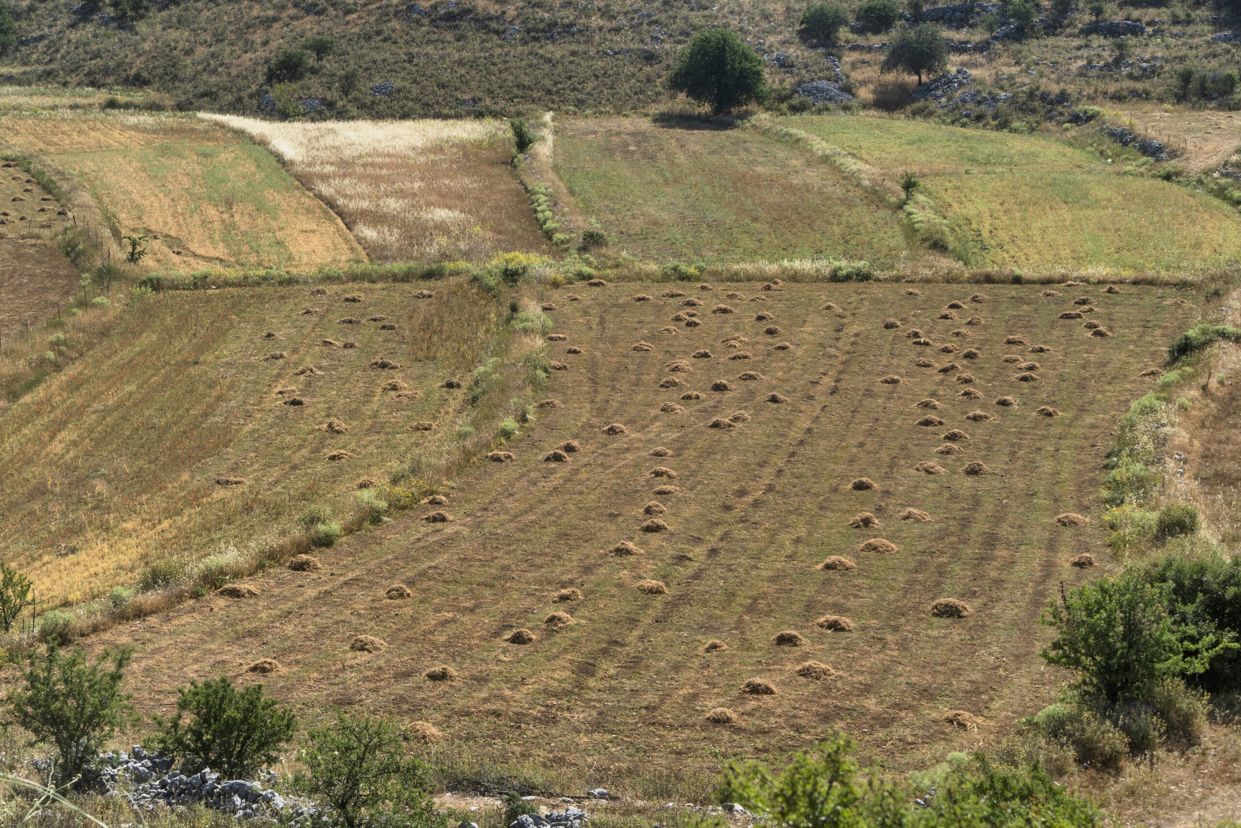 Στο υπέροχο αυτό σκηνικό σιωπηλά μνημεία και ταπεινοί μάρτυρες οι ερειπωμένοι, πέτρινοι και ιστορικοί βόλτοι. Τα πέτρινα θολωτά κτίσματα που απαντώνται μόνο εδώ και χτίστηκαν κυρίως για την αποθήκευση της σοδειάς αλλά και ως καταλύματα ξεκούρασης κατά την διάρκεια του αλωνισμού. Μαζί με τα πηγάδια και τα αλώνια συγκροτούν μια μαγική εικόνα, αφού μας γυρίζουν στο παρελθόν και μας θυμίζουν συνήθειες, πρακτικές και τρόπους συγκομιδής και επεξεργασίας του παλιού κόσμου.