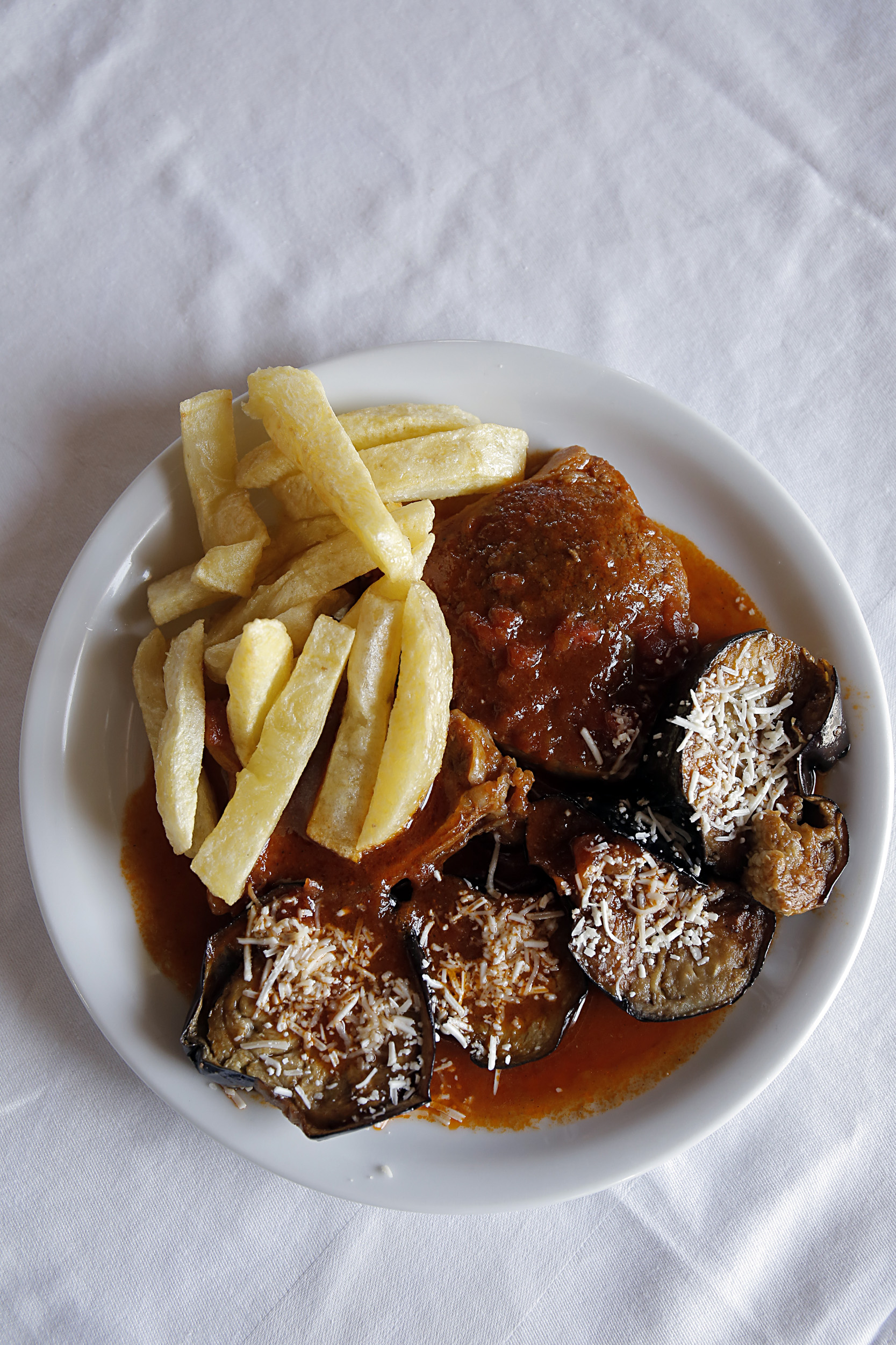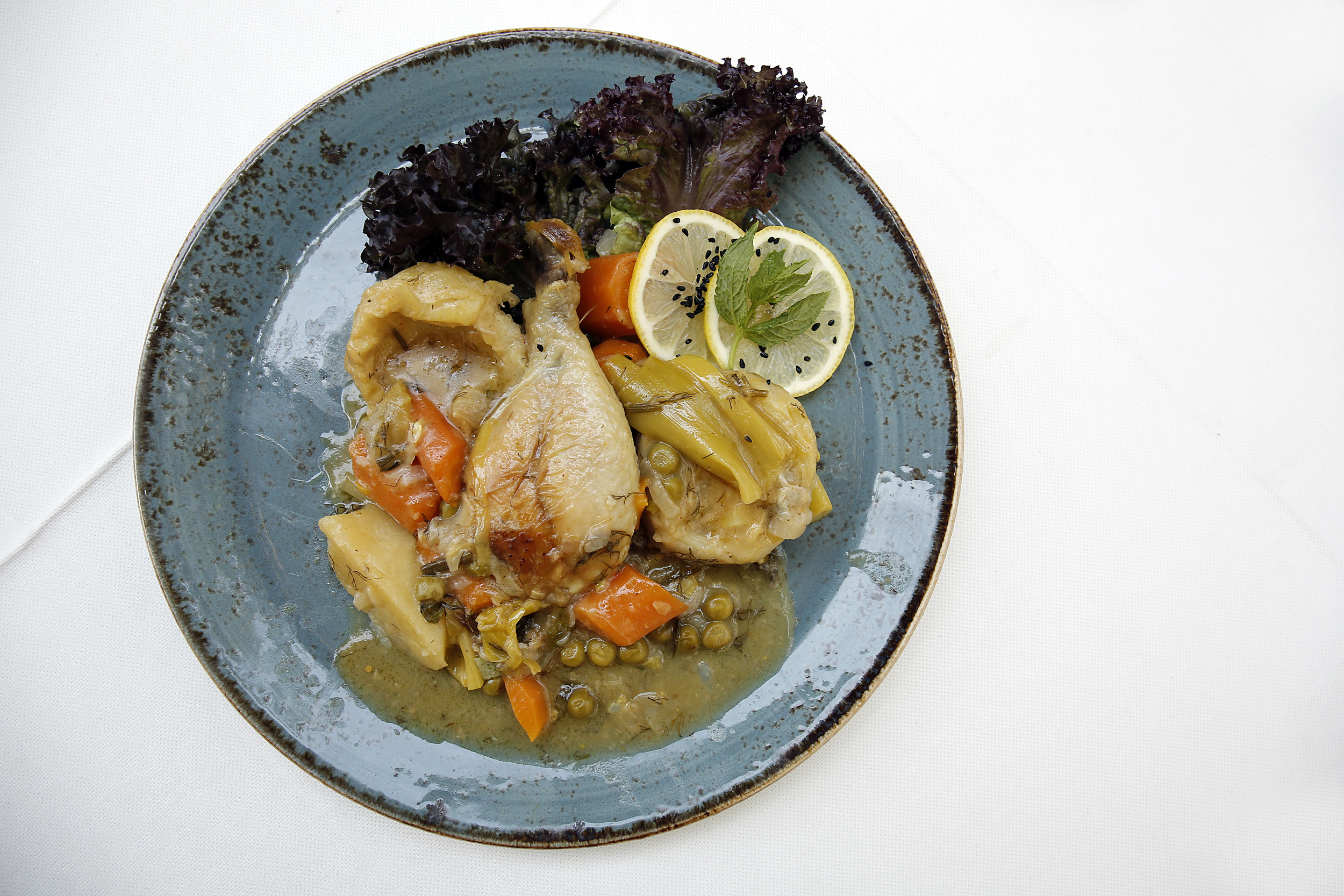 Τα σουγάνια παραπέμπουν σε κουζίνα της Πόλης με το άρωμα του κύμινου, το αρνάκι γάλακτος, μετά από 3-4 ώρες ψησίματος σερβίρεται με ρύζι με σταφίδες, πορτοκάλι και ψιλοκομμένο λευκό συκωτάκι, η Αγειορίτικη μελιτζανοσαλάτα έχει λίγο ταχίνι, η σάλτσα του κρασάτου κόκκορα είναι δεμένη γερά. Κρέατα ωρίμανσης βρίσκονται στα άμεσα σχέδια καθώς και μια μεγάλη λίστα κρασιών. Μη φύγετε χωρίς να δοκιμάσετε την πλατσέντα, το παραδοσιακό γλυκό της Λέσβου με καρύδι φανταστικά νόστιμο και σιρόπι.