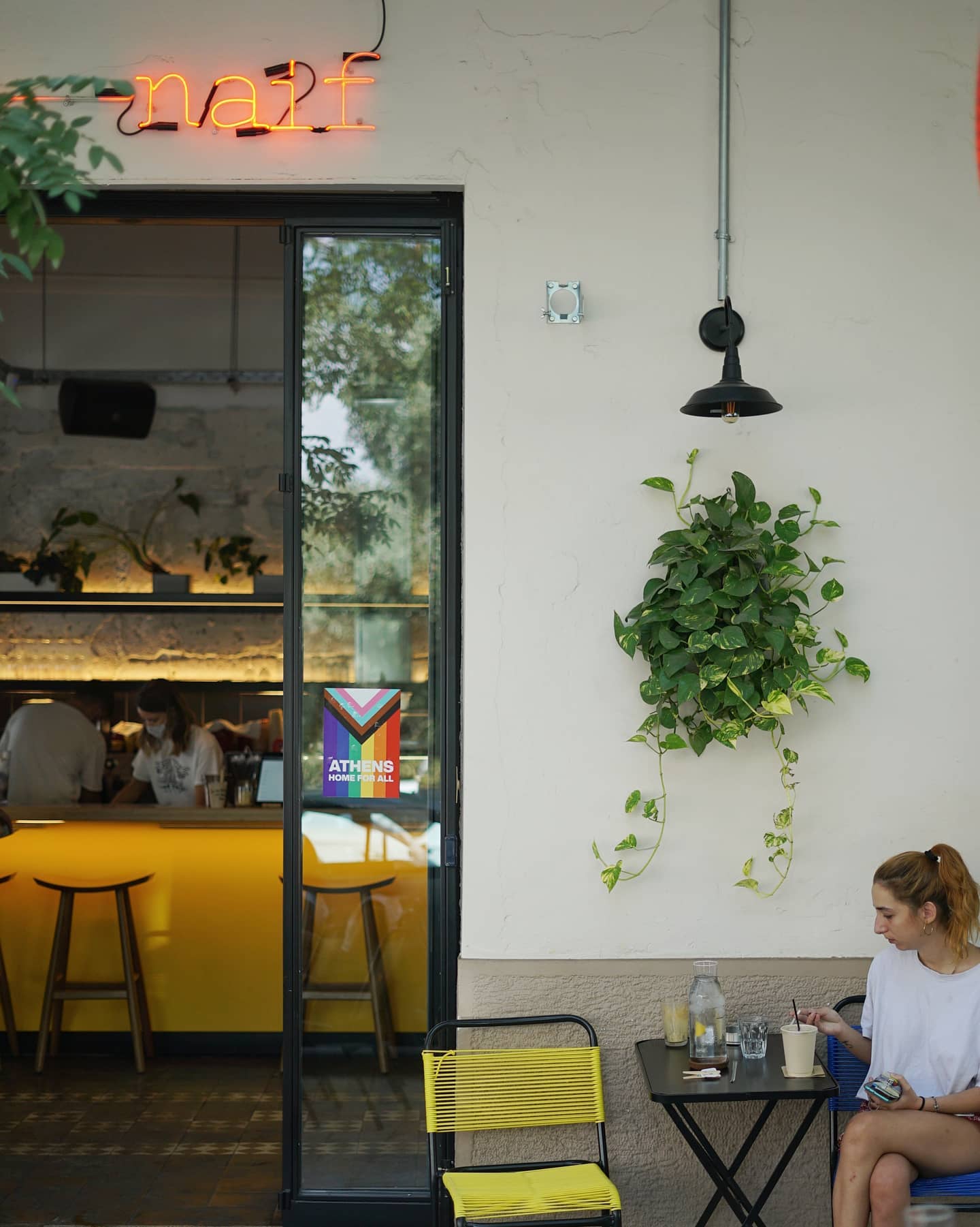 Καφές, φαγητό και ποτό σε μία από τις ομορφότερες γωνιές της πόλης. Πίσω από τη Στέγη του Ιδρύματος Ωνάση βρίσκεται το Naif, μια χρωματιστή πινελιά στα στενά του Νέου Κόσμου. Στο εσωτερικό του έχει μεγάλα τραπέζια που φιλοξενούν καθημερινά πολλούς θαμώνες που δουλεύουν. Άλλοι χαλαρώνουν στα τραπεζάκια του πεζοδρομίου κάτω από τα δέντρα. Όσο για το μενού του Naif, σίγουρα δεν θα σας απογοητεύσει. Λεοντίου 10 & Ευρυδάμαντος, Ν. Κόσμος