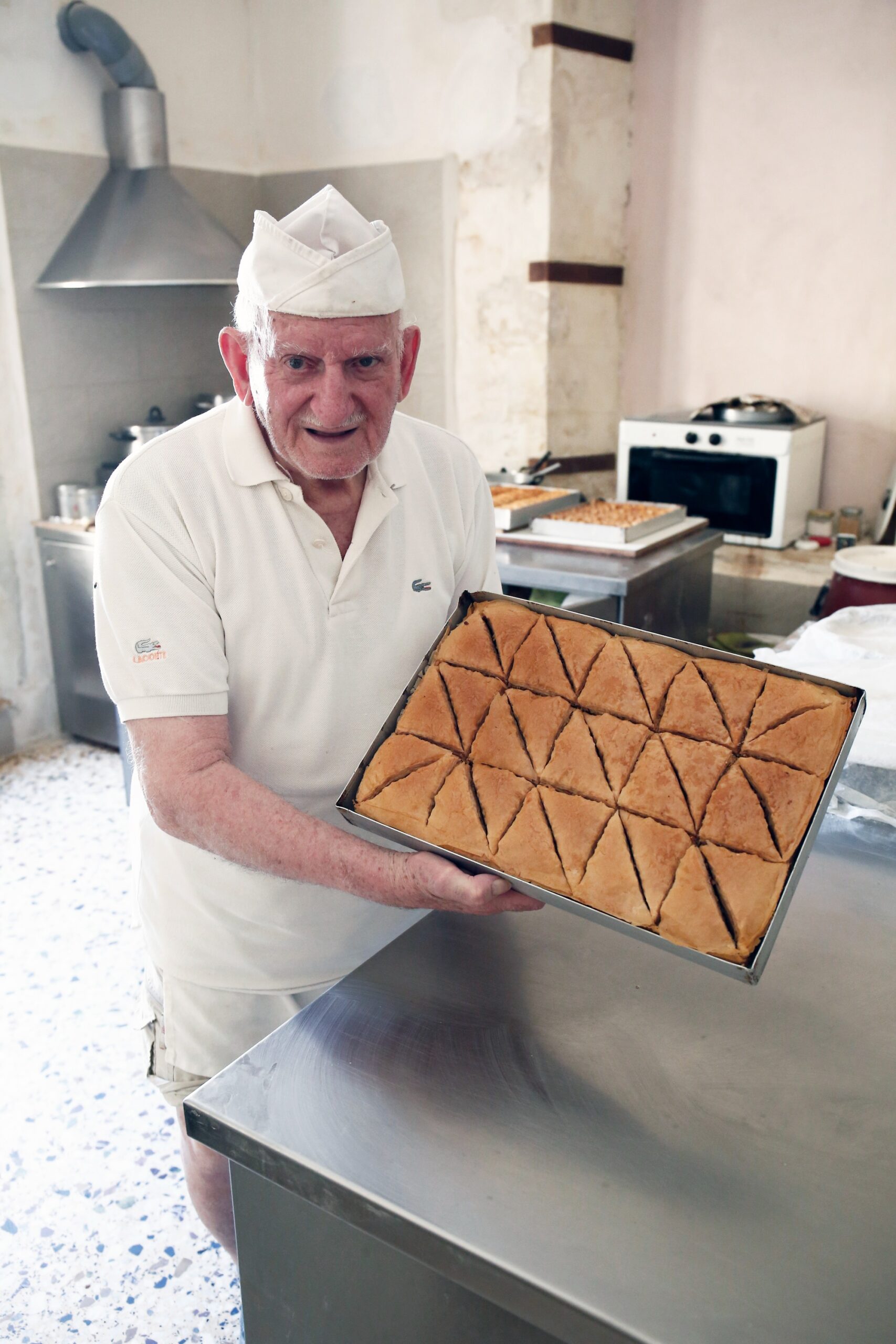 Αρχικά, δημιουργεί το φύλλο με τρία μόλις υλικά (αλεύρι, αλάτι, νερό). Έπειτα, για να ανοιχτεί σωστά πρέπει να τιναχτεί στον αέρα σε κυκλική περιστροφή και με γρήγορες κινήσεις που παραπέμπουν σε χορογραφία, να καταλήξει στο τραπέζι παρασκευής ως ένας μικρός θόλος. Πλέον, το φύλλο είναι έτοιμο να πάρει την τελική του μορφή. Η διαδικασία αυτή δεν είναι μόνο οπτικά εντυπωσιακή αλλά αφήνει ένα έντονο αποτύπωμα στην βαθιά μελωμένη γεύση του κανταΐφιού. Είναι βέβαιο πως θα πάθετε έναν μίνι έρωτα και θα νιώσετε πως δοκιμάζετε για πρώτη φορά το, κατά τα άλλα δημοφιλές, γλυκό. Εκτός, βέβαια, από το φημισμένο κανταΐφι, αξίζουν της προσοχής σας και τα υπόλοιπα σιροπιαστά γλυκίσματα που μπορείτε να δοκιμάσετε εδώ, όπως πχ τα μπακλαβαδάκια που θα βρείτε στην είσοδο ακριβώς μπροστά από το ταμείο.