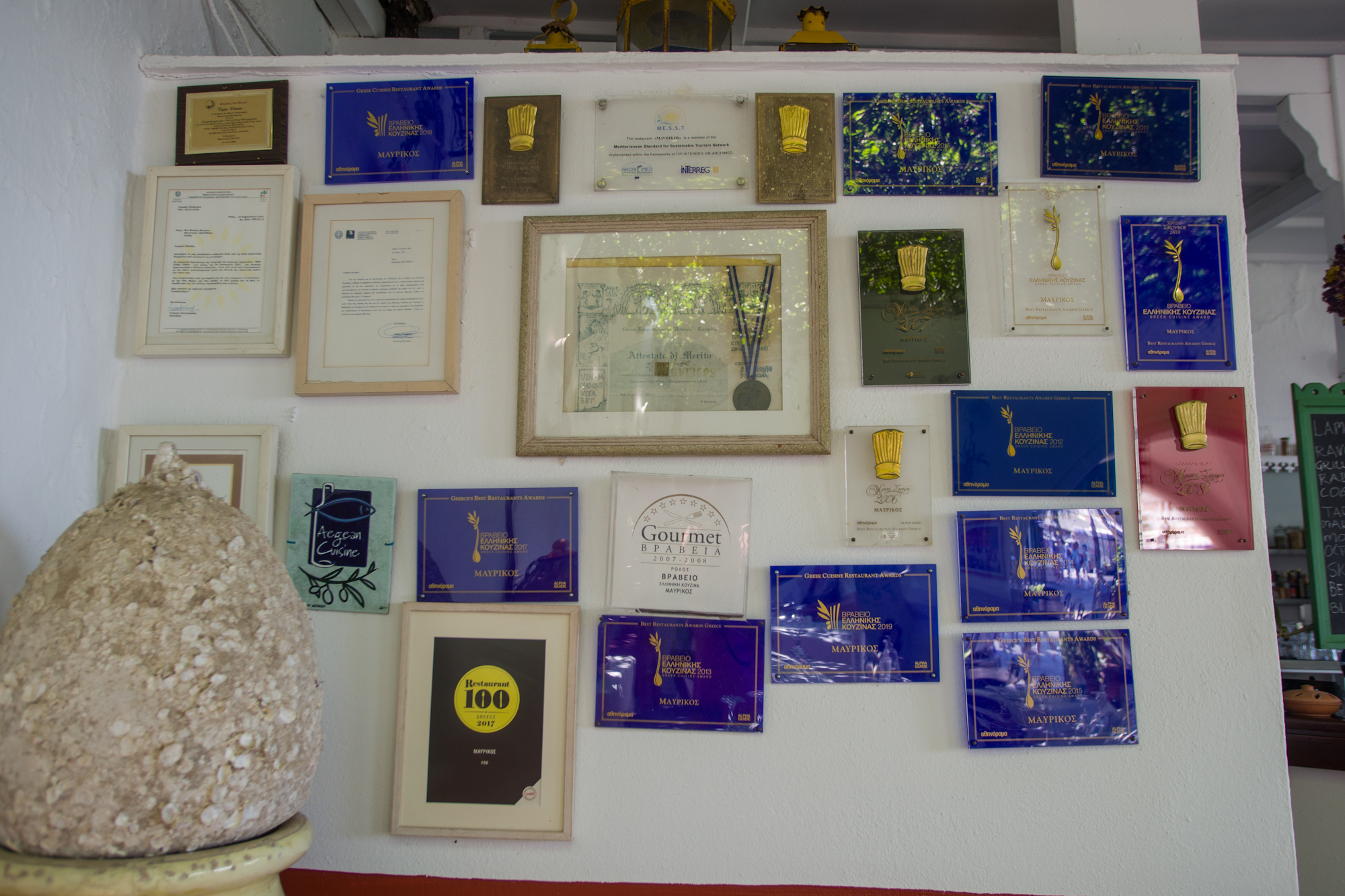 Σε αυτή τη σκιερή αυλή, όπως εξιστορούν οι φωτογραφίες, έχουν απολαύσει το γεύμα τους, ισότιμα, οι χιλιάδες επισκέπτες του νησιού κι ανάμεσα τους αρκετές δεκάδες σημαντικές προσωπικότητες της πολιτικής και των τεχνών. Και όλοι τους έχουν φύγει γοητευμένοι τόσο από την ίδια απαράμιλλα φιλόξενη υποδοχή του Μιχάλη Μαυρίκου –με σπουδές οικονομολόγου- και το γευστικότατο, αληθινό φαγητό του Δημήτρη Μαυρίκου, όσο και από τον άψογο επαγγελματισμό τους και τη συνέπειά τους. Και ως συνέπεια ορίζω την αδιάλειπτη παρουσία και την σταθερά κορυφαία ποιότητα όλων όσων συνθέτουν το σύνολο ενός εστιατορίου· από την επιλογή των πρώτων υλών μέχρι το ίδιο το φαγητό και από την υποδοχή μέχρι το σέρβις και τον αποχαιρετισμό.