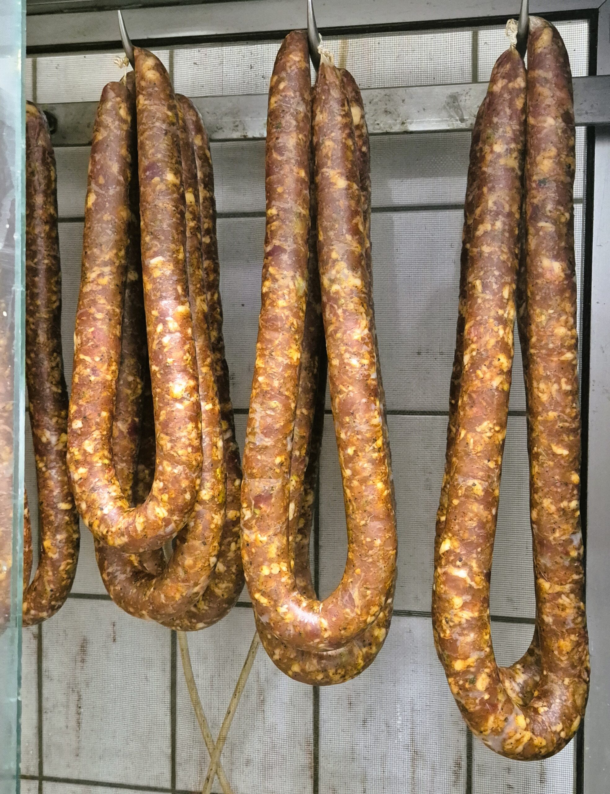 Από το 1996 που ανέλαβε το προϋπάρχουν κρεοπωλείο της Τιθορέας και αξιοποιώντας 19 χρόνια εργασίας στο πιστοποιημένο σφαγείο της Αμφίκλειας, ειδικεύεται στην παρασκευή χωριάτικων λουκάνικων από καθαρό κρέας, το οποίο προμηθεύεται από συγκεκριμένους κτηνοτρόφους της ευρύτερης περιοχής. Μεστά και πλούσια σε γεύση, τόσο αυτά από πρόβειο κρέας με μόνα καρυκεύματα το αλατοπίπερο, τη ρίγανη και το κρεμμύδι, όσο και τα χοιρινά στα οποία προστίθεται μόνο ρίγανη και πράσο, τα βρίσκουμε να πωλούνται με το κιλό ή και συσκευασμένα αεροστεγώς για εύκολη μεταφορά, στο μικρό κρεοπωλείο που μένει ανοιχτό όλο το χρόνο. Όσοι δε τυχεροί βρεθούν στον Παρνασσό την περίοδο των Χριστουγέννων, μπορούν να γευτούν πιάτα με βάση το κρέας χοίρων που ο κος Νίκος εκτρέφει μόνο για τις γιορτές, είτε σε ταβέρνες είτε κάνοντας προμήθειες για την επιστροφή στη βάση τους.