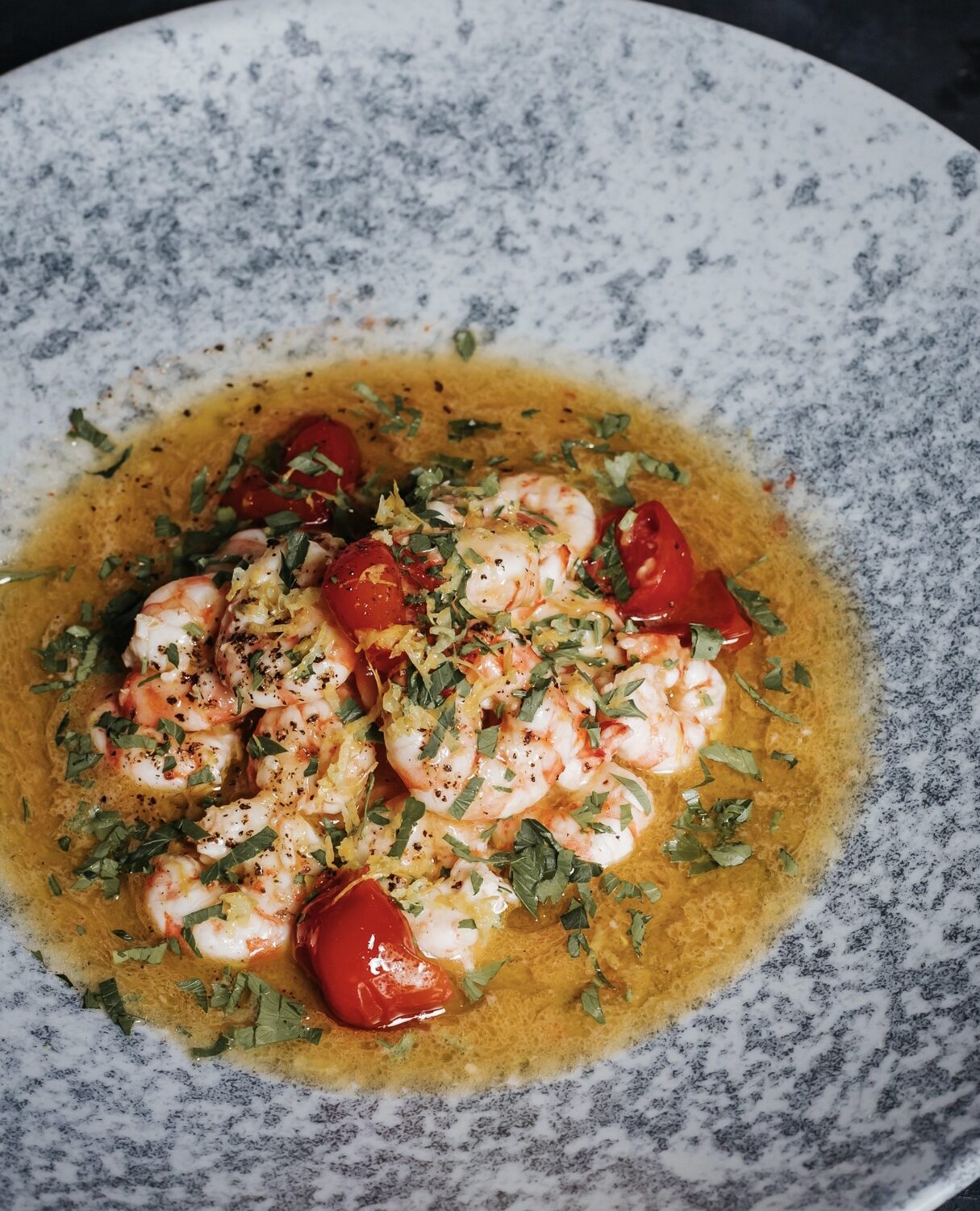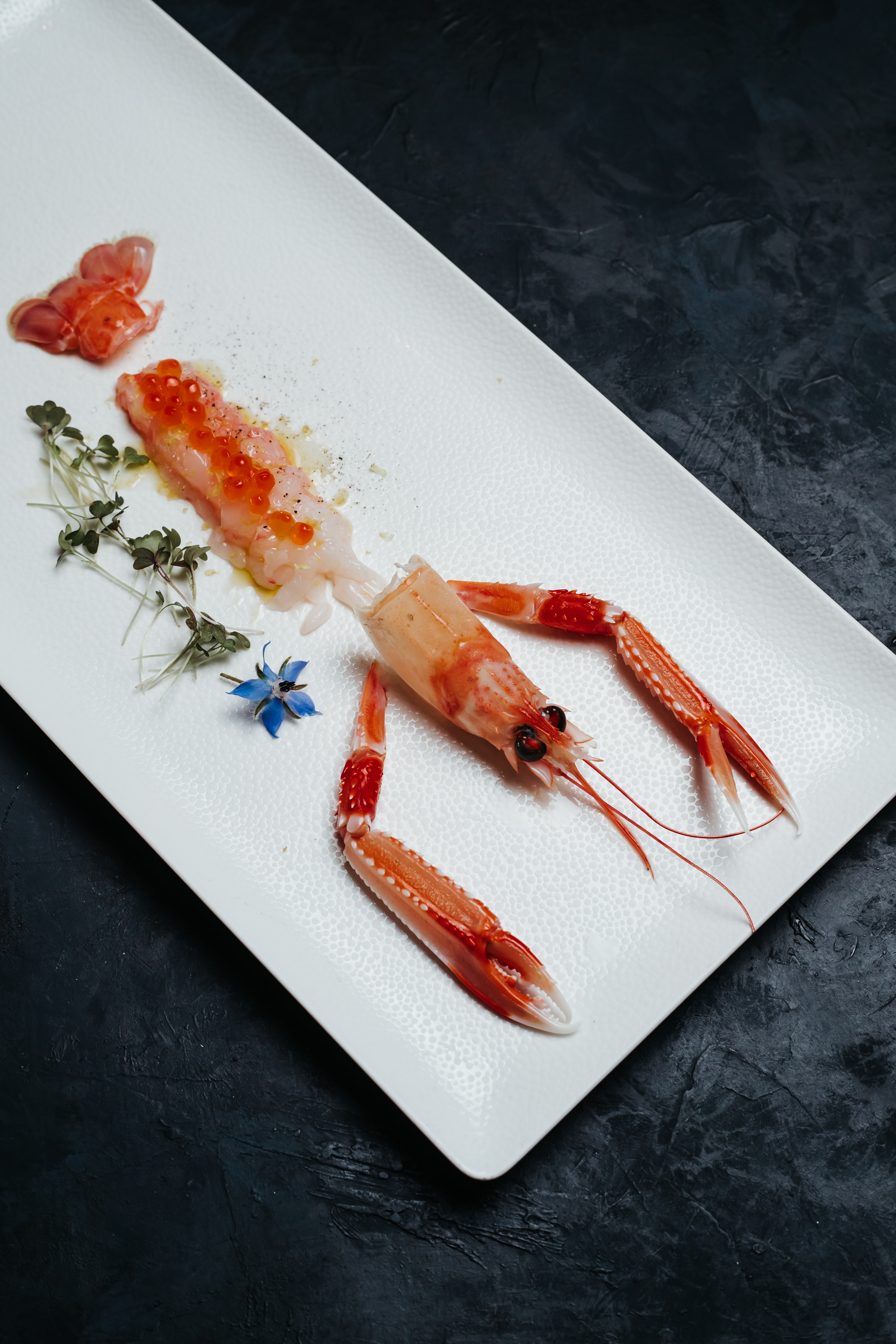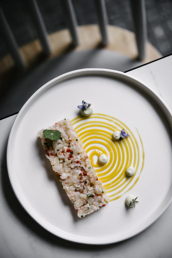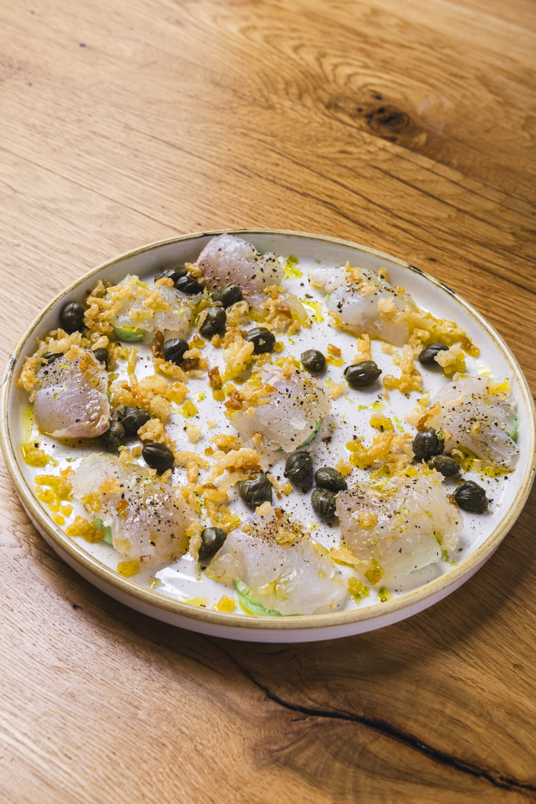 Ξεκινήσαμε με ζουμερά Χτένια ψητά όλο ιώδιο και συνεχίσαμε με ένα ωραιότατο Καρπάτσιο γλώσσας αλά «πουτανέσκα» με αντζούγια, κάπαρη, καρδιά ντομάτας και λάδι τσίλι. Όπως μας λένε, best seller ανάμεσα στις προτιμήσεις των πελατών, το Καρπάτσιο τσιπούρας με κρέμα λεμόνι, σουμάκ, λέμον γκρας και τσίλι. Συμφωνούμε. Πρωτότυπο στη σύλληψη το Τomato tonnato που παραλείπει το μοσχάρι και βάζει στη θέση του ψητή ντομάτα συνδυάζοντάς την με μους τόνου και καπαρόμηλα. Τολμηρή παραλλαγή, δροσερή και επιτυχημένη. Με τον Τραγανό μπακαλιάρο με κρέμα πατάτας και μαύρο σκόρδο, ο σεφ αποδίδει με το προσωπικό τους ύφος το κλασικό ελληνικό πιάτο μπακαλιάρος σκορδαλιά και το όμορφα και νόστιμα διατηρώντας τις αρχικές υφές και τις γεύσεις.