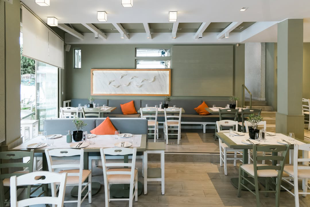 Η κουζίνα ανοίγει στις 10 το πρωί και τα νέα παιδιά που έχουν το μαγαζί (frachise) η Mαρίνα Κοντού και ο Σίμος Καραδουλαμάς, έχουν δημιουργήσει μια πολύ φωτεινή σάλα με φρέσκια αίσθηση, δρύινα έπιπλα από ανοιχτόχρωμο ξύλο, μωσαϊκό στο πάτωμα και μεγάλες τζαμαρίες. Το μικρό μενού αλλάζει καθημερινά και ανάλογα με την ψαριά. Τη ημέρα που πήγαμε, είχε ανάμεσα σε άλλα μια Μπολονέζ με κιμά από μυλοκόπι και κρέμα γραβιέρας, και Λαχανοντολμάδες με γάμπαρη και κρέμα μανιταριών. Τέλεια η λεπτή γεύση της «Μπριζόλας» από σαλάχι σχάρας με σάλτσα πιπεριών και κρέμα κουνουπίδι και τα «Πανσετάκια» τόνου dry aged και η Βελουτέ σούπα κακαβιά με μπακαλιάρο και γαρίδες. Στα οπωσδήποτε, η απίστευτα ορεκτική Κοπανιστή με καπνιστή φέτα από το το καπνιστήριό τους και η χειροποίητη αιχμηρή Μους ταραμά. Ξετρελαθήκαμε με τον Παστουρμά και το Παστράμι από τόνο. Πόσο μα πόσο πολύ θέλεις να καθίσεις εκεί για πάντα αγκαλιά με το τσίπουρό σου δεν λέγεται.