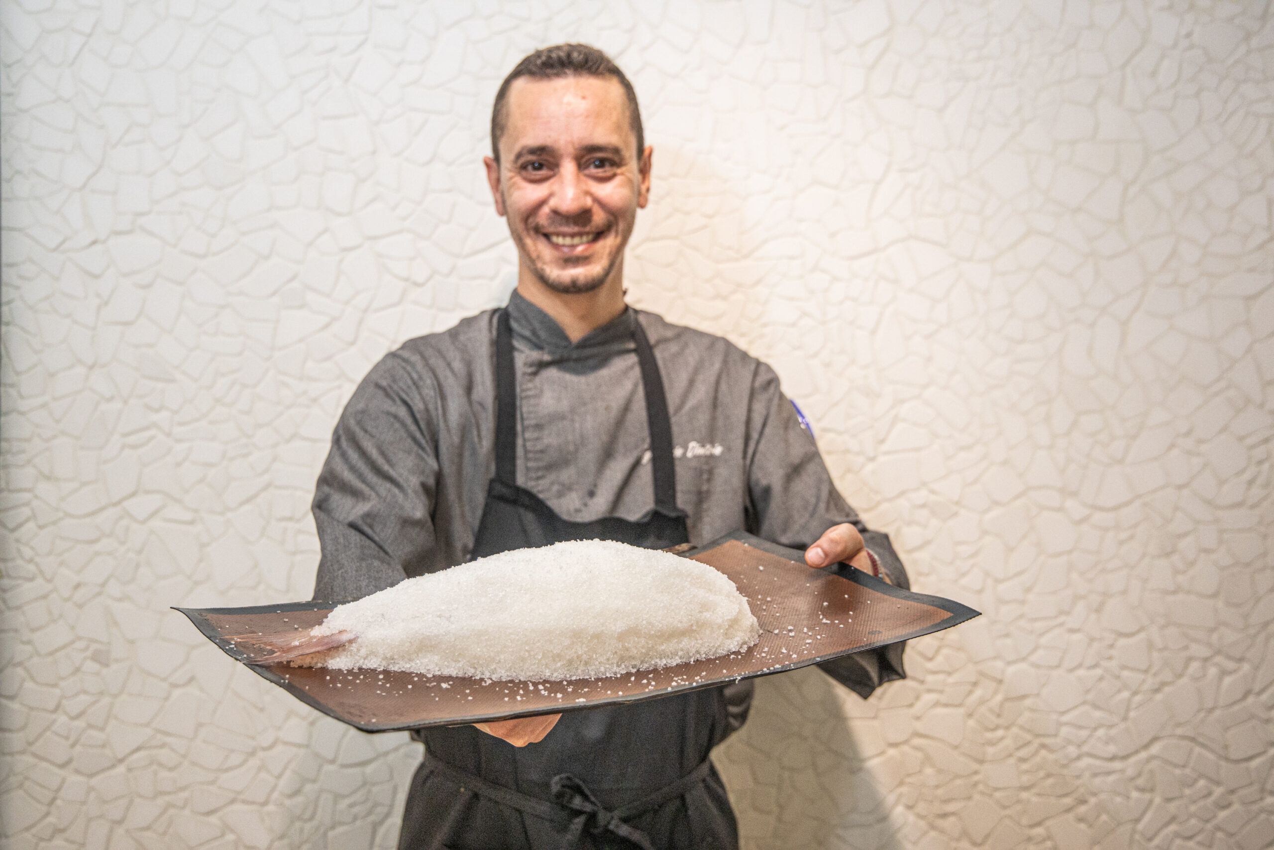 Πιάτο που θα θυμόμαστε από αυτόν το γαστρονομικό γύρο στη Θεσσαλονίκη ήταν ο Μπακαλιάρος ωμός με σκορδαλιά και τραγανό τηγανητό κουρκούτι. Ένα πεντανόστιμο πιάτο που μεταφράζει τον ελληνικό κλασικό τηγανητό μπακαλιάρο σκορδαλιά σε smart food, όλο υφές και ιώδιο. Η Λακέρδα από τη Λέσβο σε ελαφρύ πάστωμα 12-14 ωρών, ήταν μια βουτυρένια λιχουδιά που έλιωνε στο στόμα. Η πολύ χαμηλή (αλλά υπαρκτή) αλατότητα αναδείκνυε το φυσικό άρωμα του ψαριού. Δείγμα των αχνιστών, η Σφυρίδα «γιακάς» αχνιστή με πατατούλες και καροτάκια λαδολέμονο -ένας δυο κόκκοι αλάτι θα τόνιζαν τις γεύσεις αλλά ο Πέτρος μένει πιστός στην πρωτογενή γοητεία των υλικών του. Αντί επιδορπίου, πήραμε Παστράμι από τόνο και Παστράμι από ξιφία και παλαιωμένο Αυγοτάραχο 2 ετών. Και τσίπουρο.